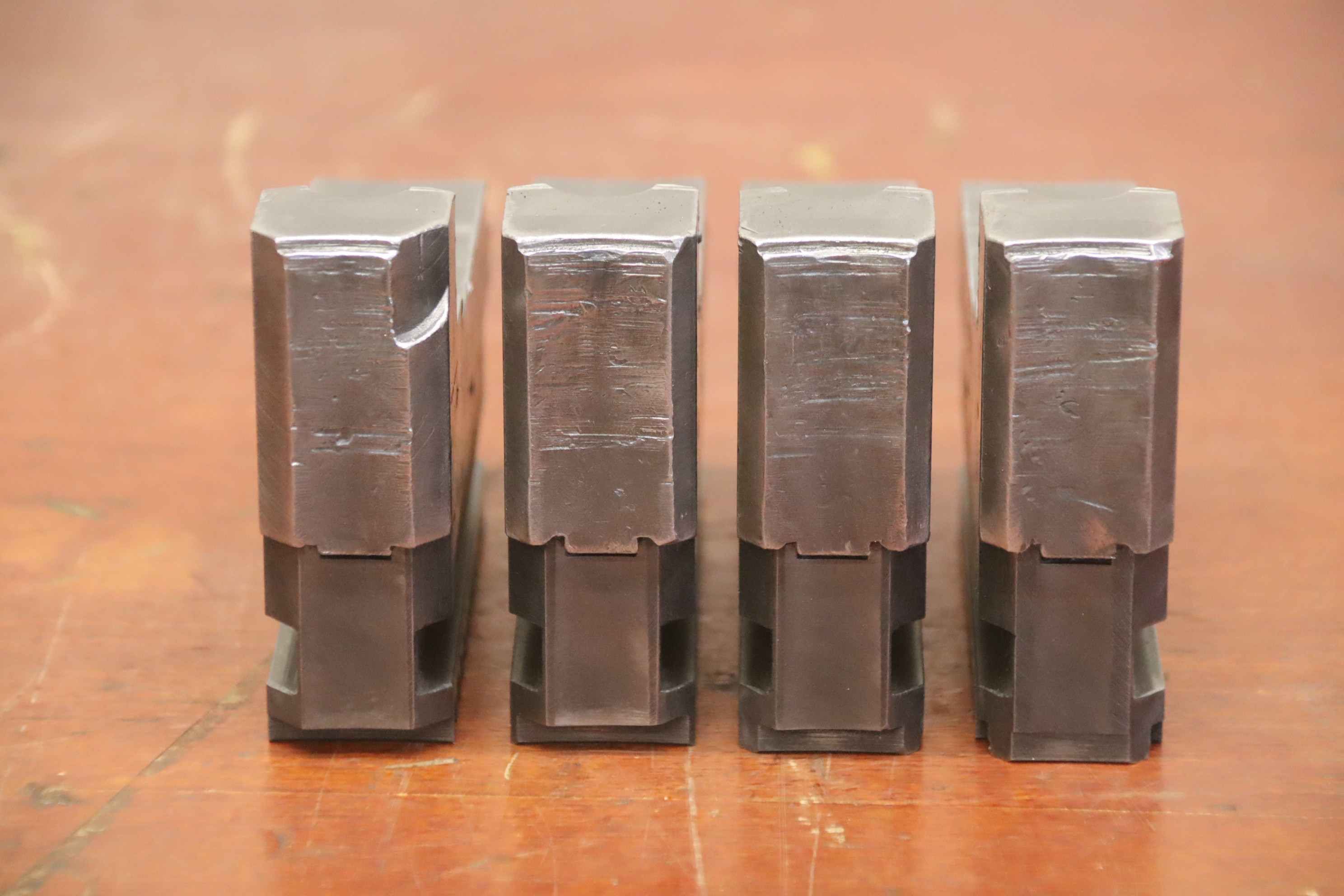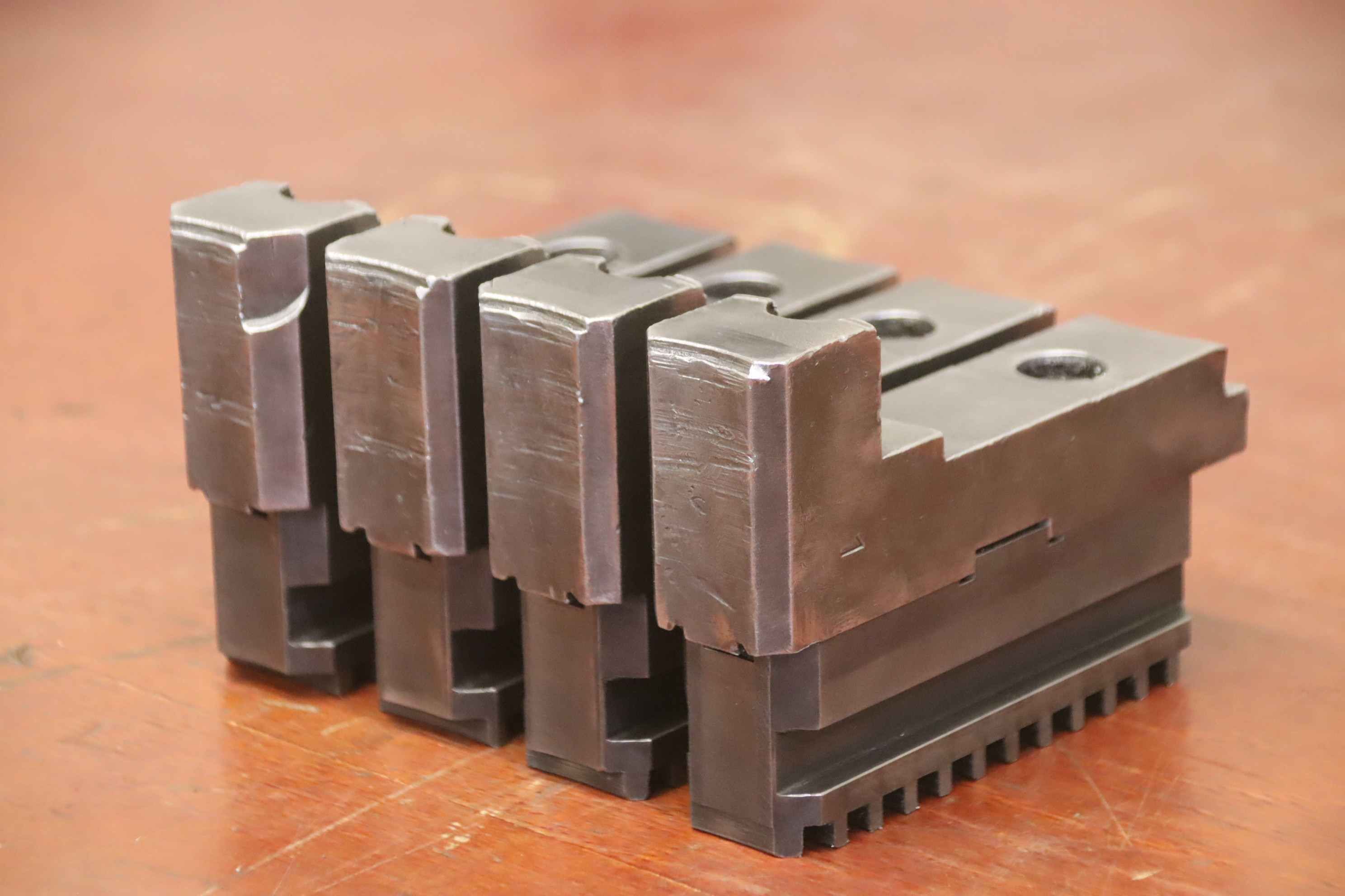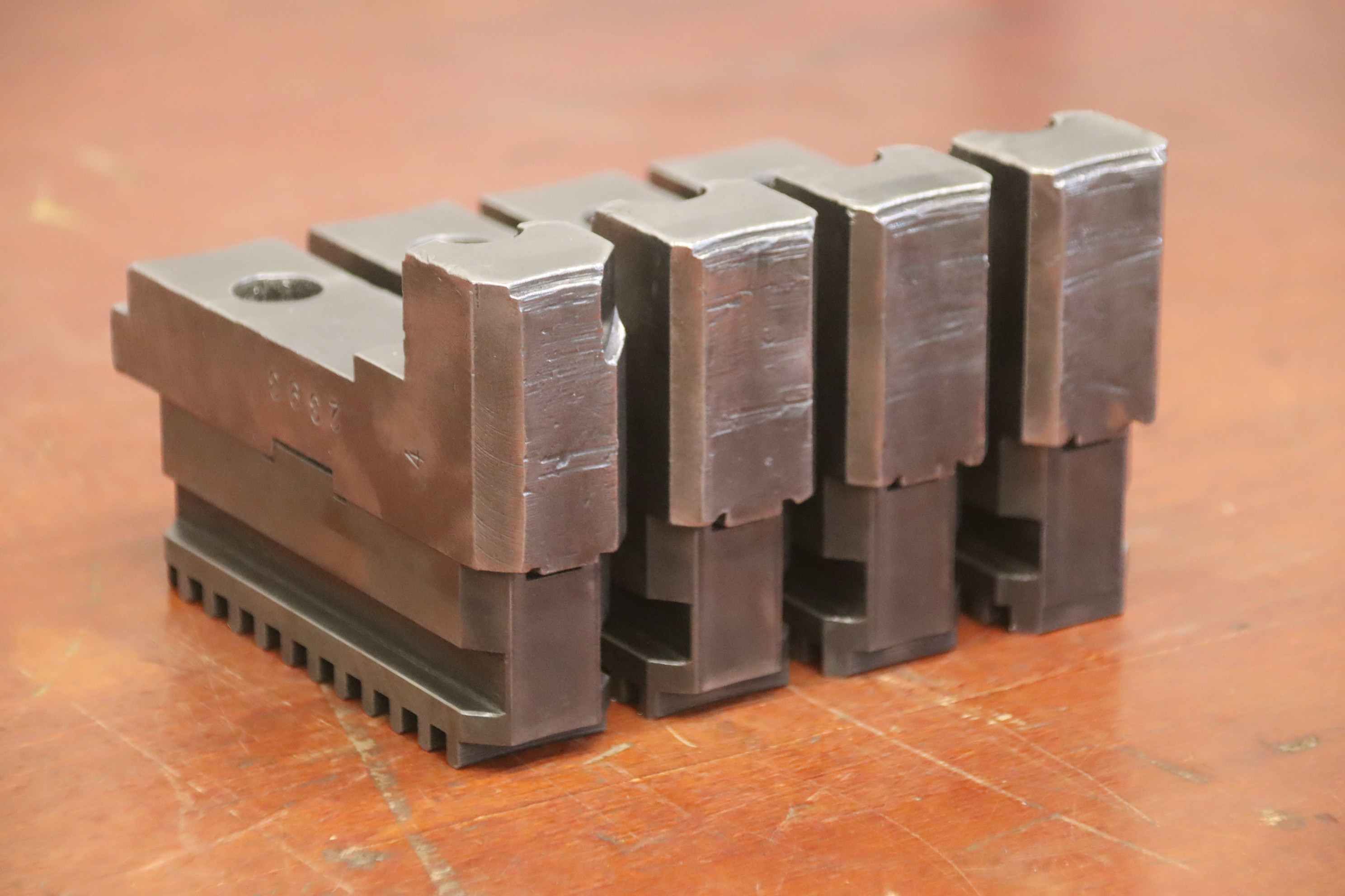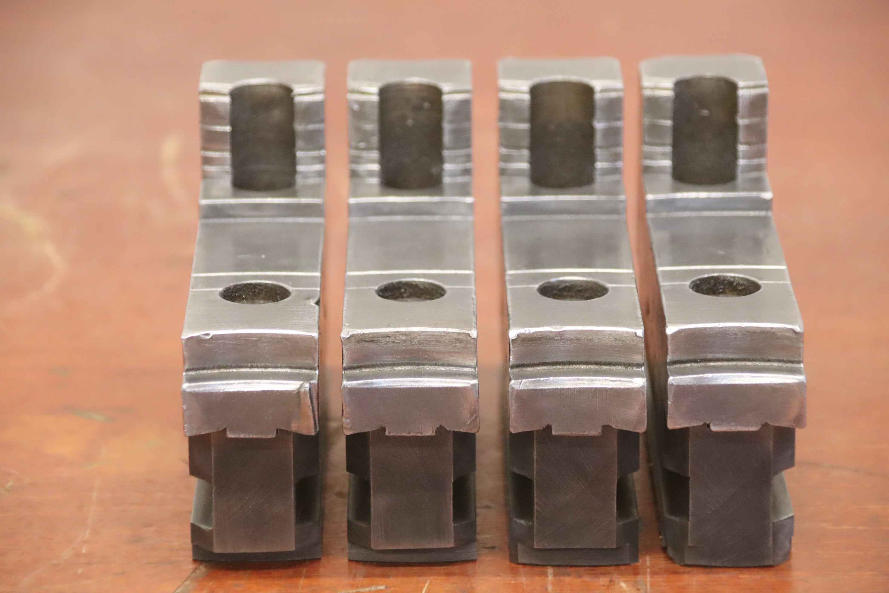 Interchangeable jaws, top jaws, three-jaw chuck, segment jaws, clamping jaws, stepped block jaws, stepped top jaws, block jaws, base jaws, 4-jaw set-Top jaws: turning jaw set for four-jaw chucks, hard-Jaw width: 32 mm-Dimensions: see photo techn. drawing-Total dimensions: 140/130/H95 mm-Total weight: 7,8 kg