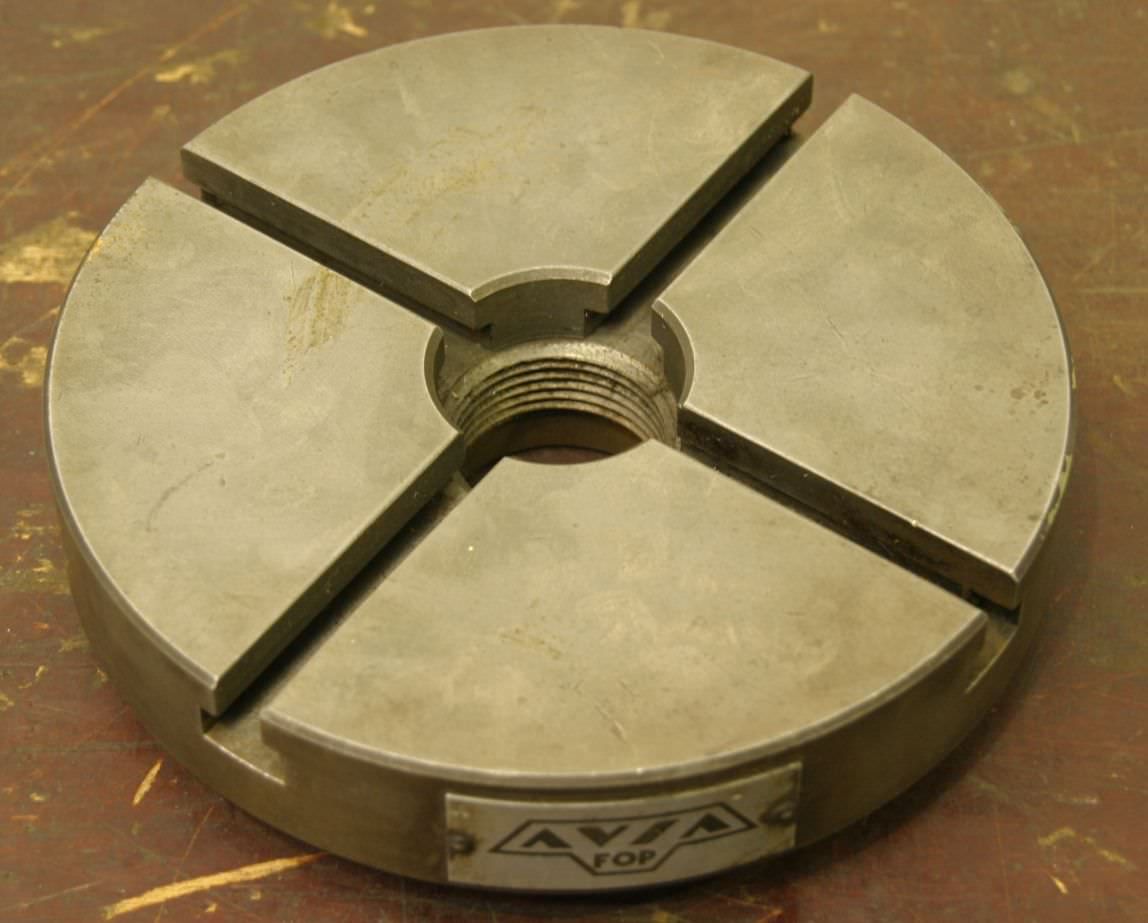 Face plate, face plate chuck, four-jaw chuck -Chuck size: Ø 195 mm -with: T slot 10 mm -Thread intake pitch: 3 mm -Weight: 5.7 kg