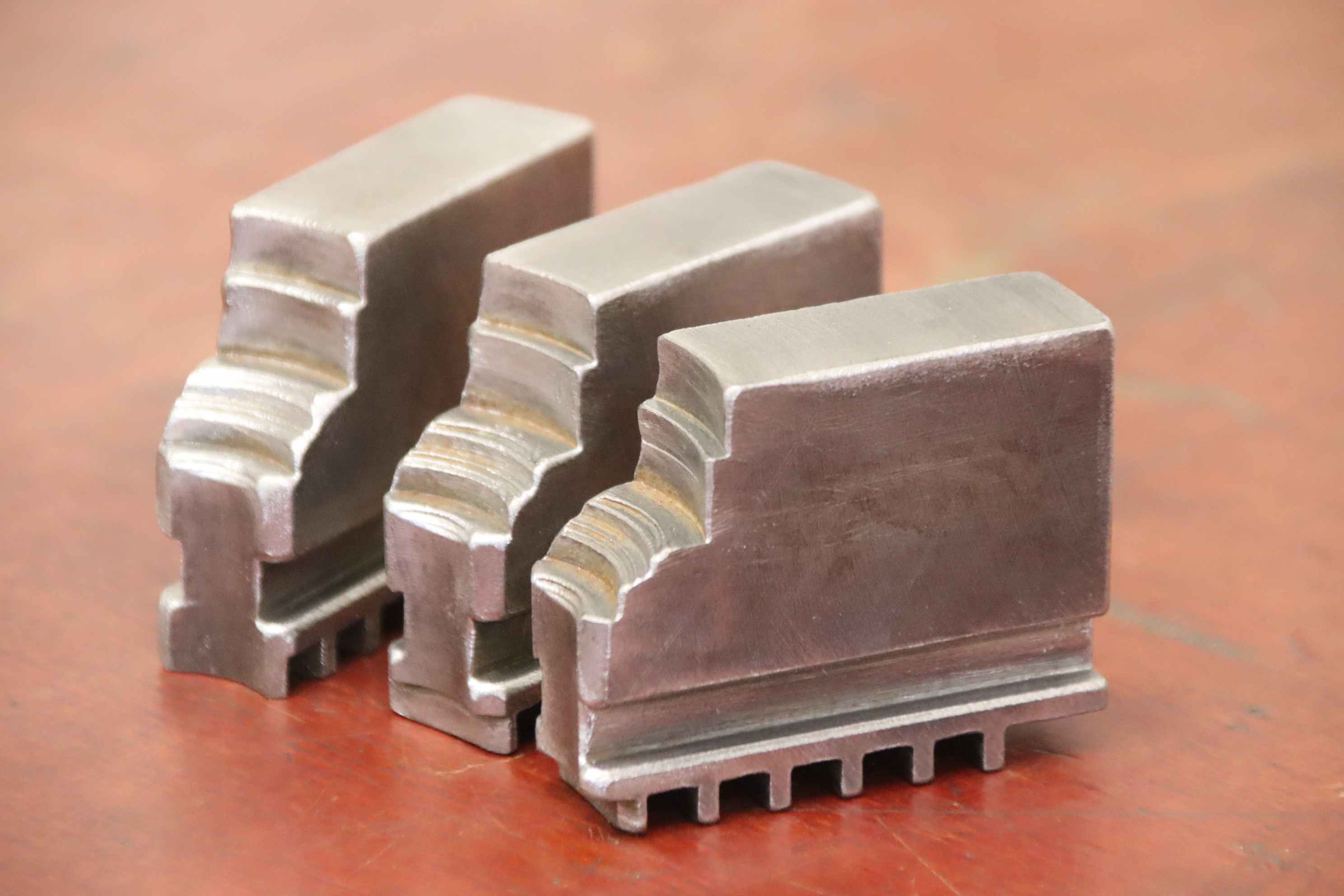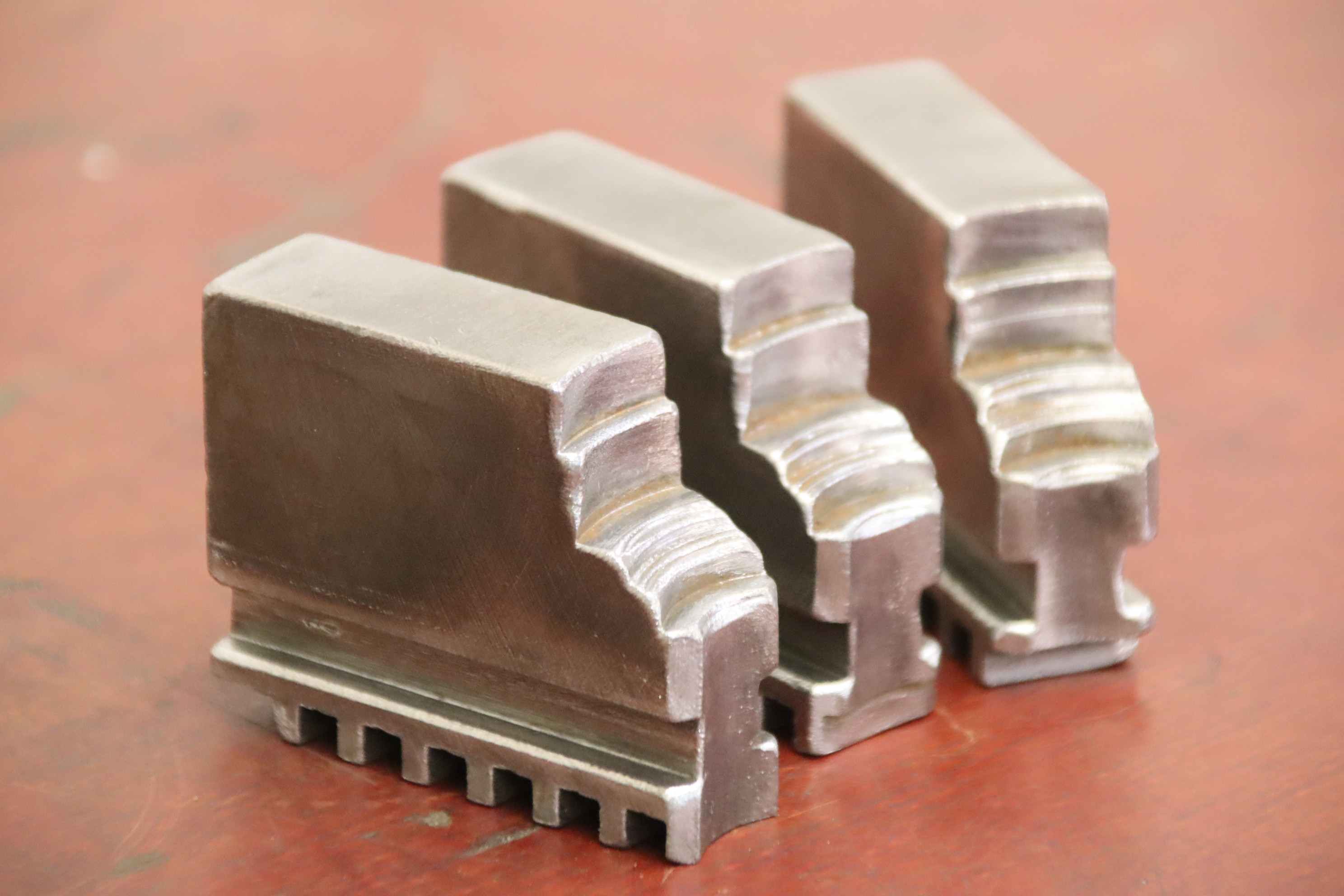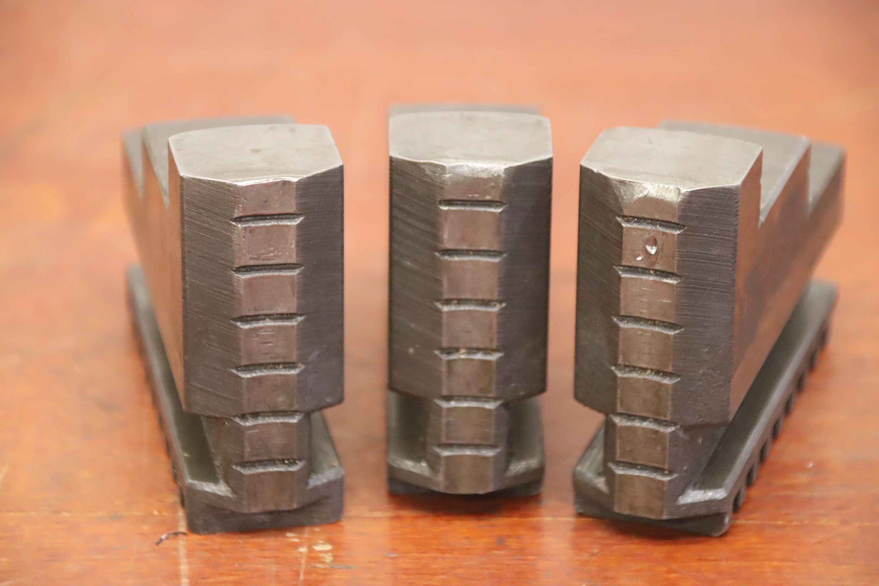 Interchangeable jaws, top jaws, three-jaw chucks, segment jaws, clamping jaws, step block jaws, step top jaws, block jaws, base jaws-Top jaws: Jaw set for three-jaw lathe chucks, hard-Jaw width: 27 mm-Dimensions: see photo technical. drawing-Total dimensions: 90/80/H65 mm-Total weight: 2.4 kg