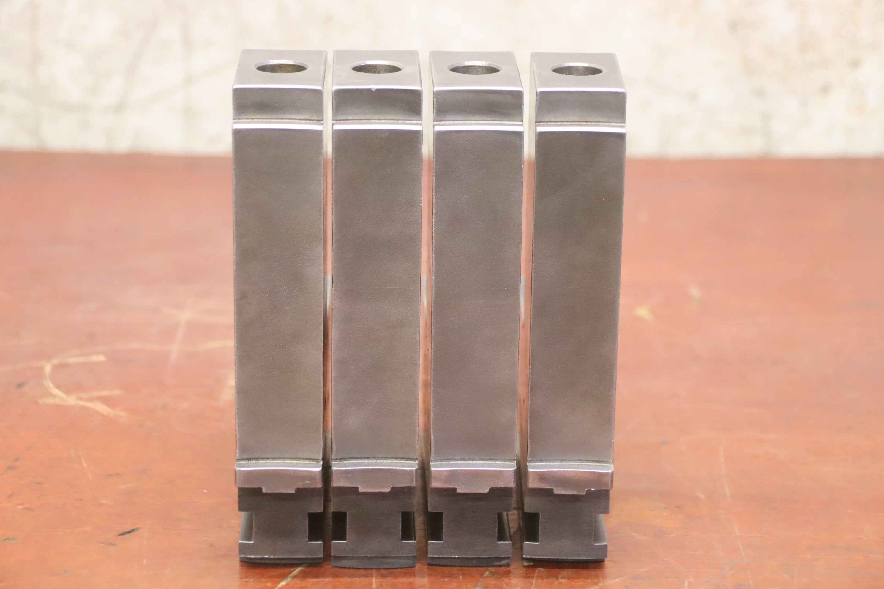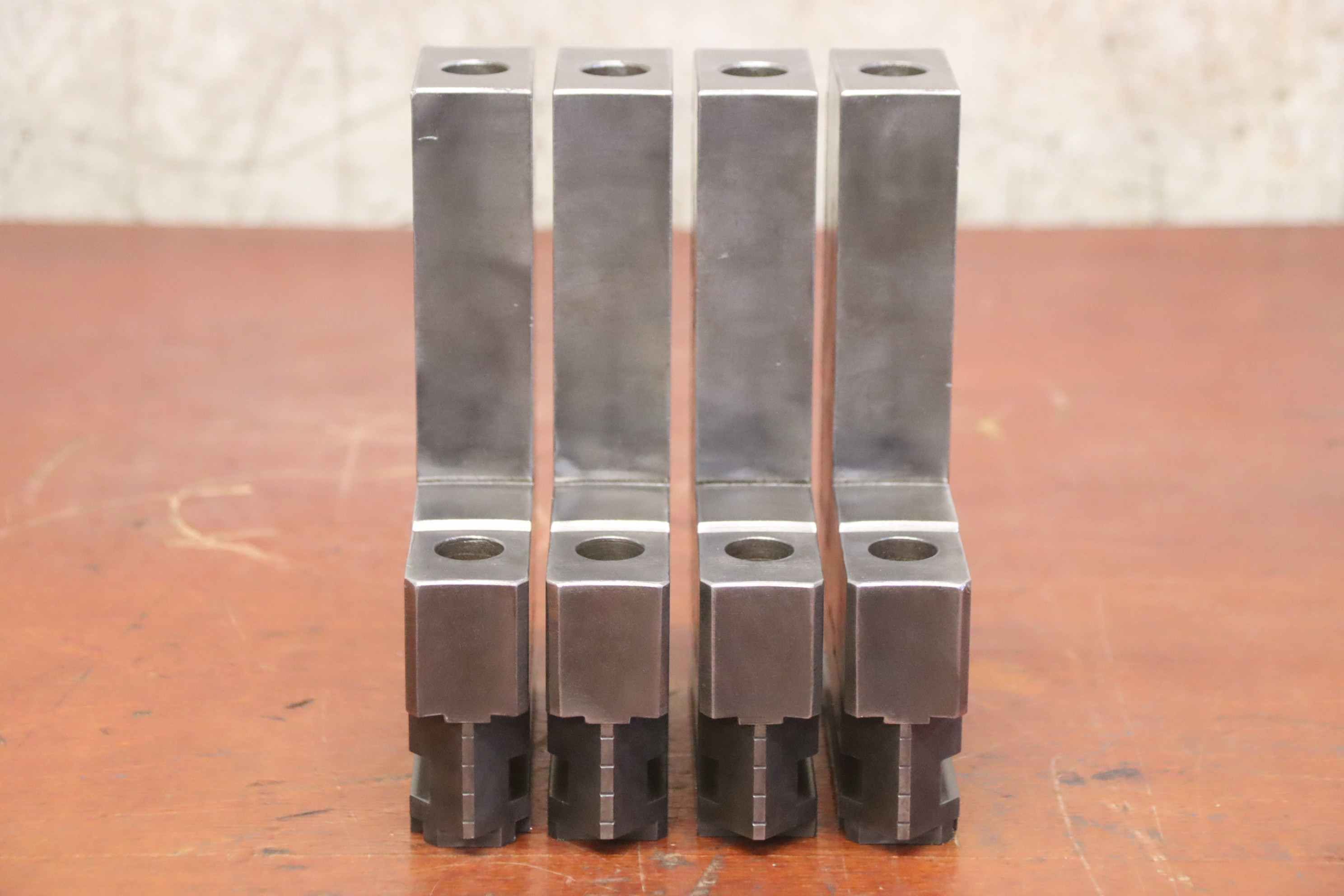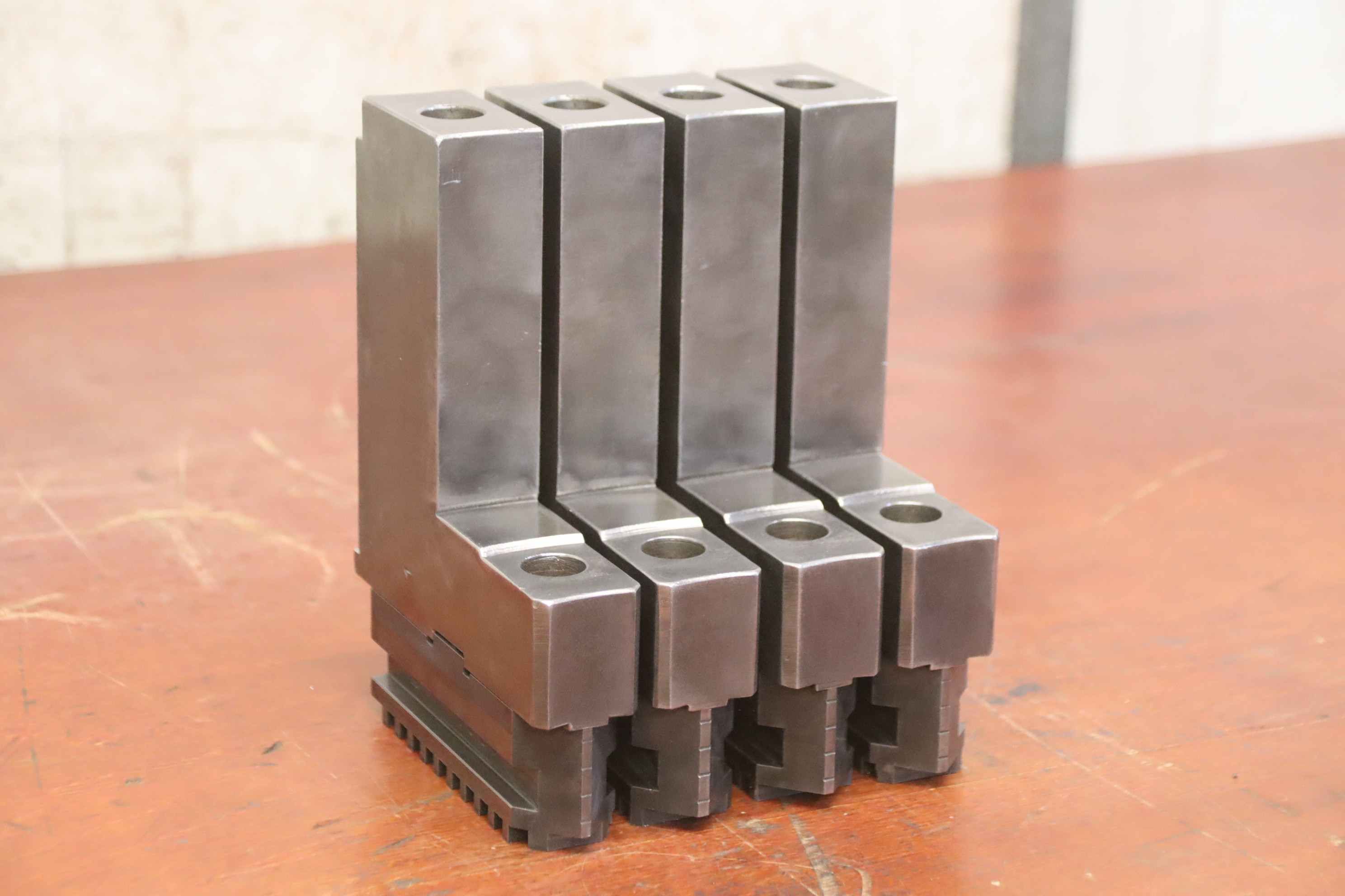 Interchangeable jaws, top jaws, three-jaw chuck, segment jaws, clamping jaws, stepped block jaws, stepped top jaws, block jaws, base jaws, 4-jaw set-Top jaws: turning jaw set for four-jaw chucks, hard-Jaw width: 32 mm-Dimensions: see photo techn. drawing-Total dimensions: 140/130/H190 mm-Total weight: 14 kg
