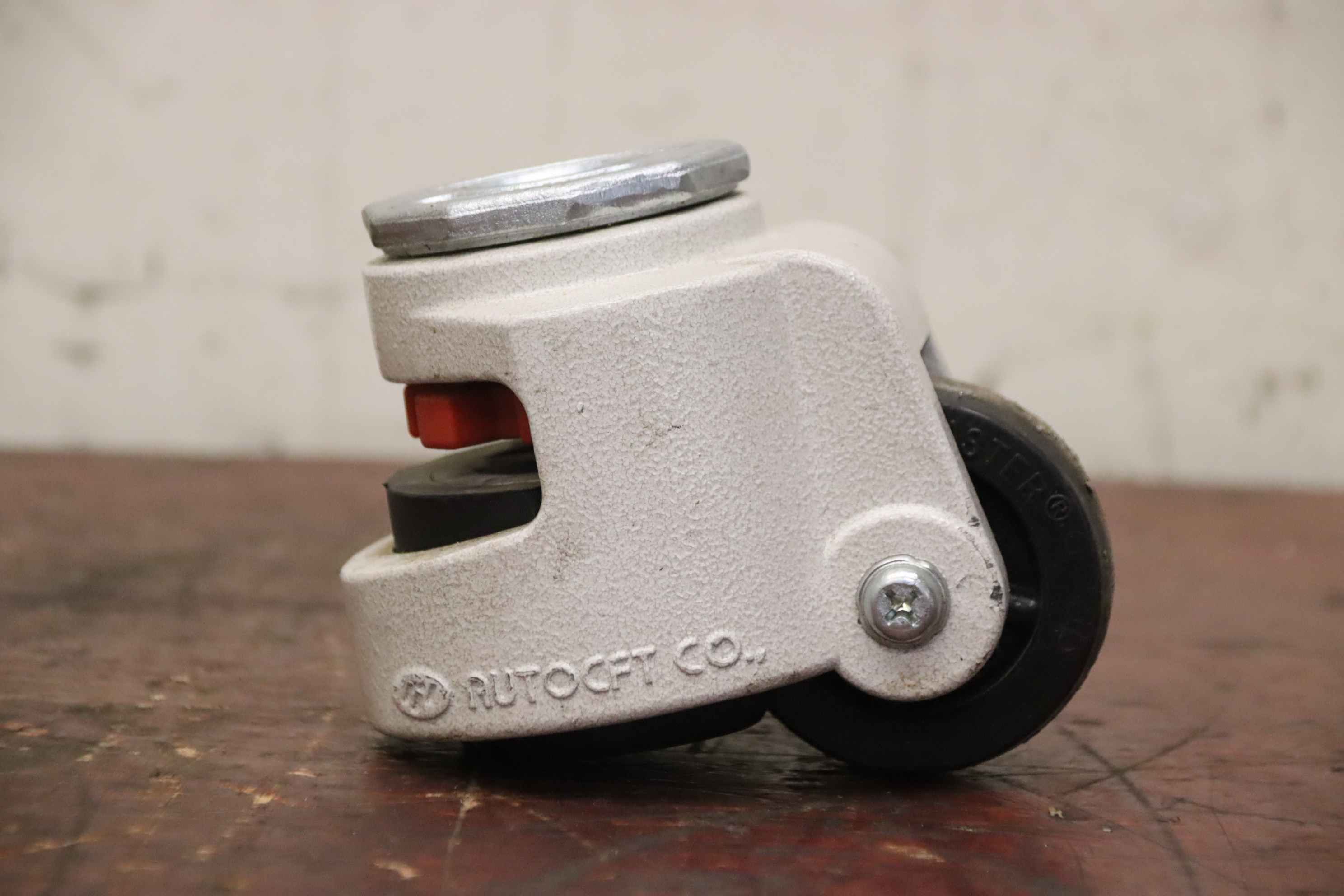 Castors, leveling units, leveling elements, machine base, machine feet, leveling shoes, machine foundation, leveling shoe, wedge shoe, machine support, leveling foot, leveling roller foot -Manufacturer: Auto CFT Carrymaster, leveling roller 1 set / 4 pieces -Type: AC-1000 -Load capacity: 540 kg -Roll: Ø 72 x 31 mm -Adjustment range: 120 - 139 mm -Number: 2 sets of leveling rollers available -Price: per set -Single dimension: 140/103/H120 mm -Weight 1.6 kg/piece