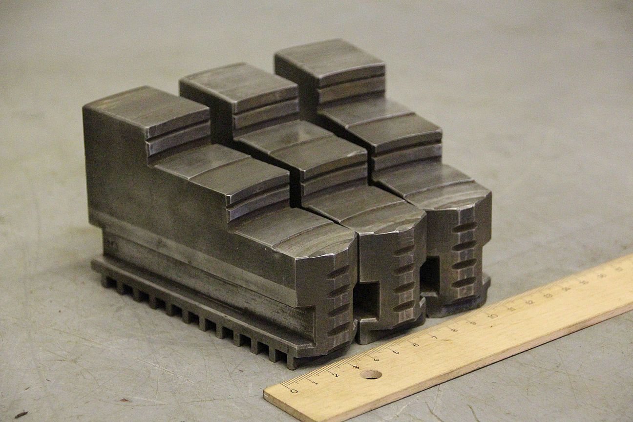 Interchangeable jaws, top jaws, three-jaw chucks, segment jaws, clamping jaws, stepped block jaws, stepped top jaws, block jaws, base jaws, 4-jaw set -Top jaws: Jaw set for three-jaw chuck, hard -Jaw width: 34 mm -Overall dimensions: 130/100/H80 mm -Total weight: 5.5 kg