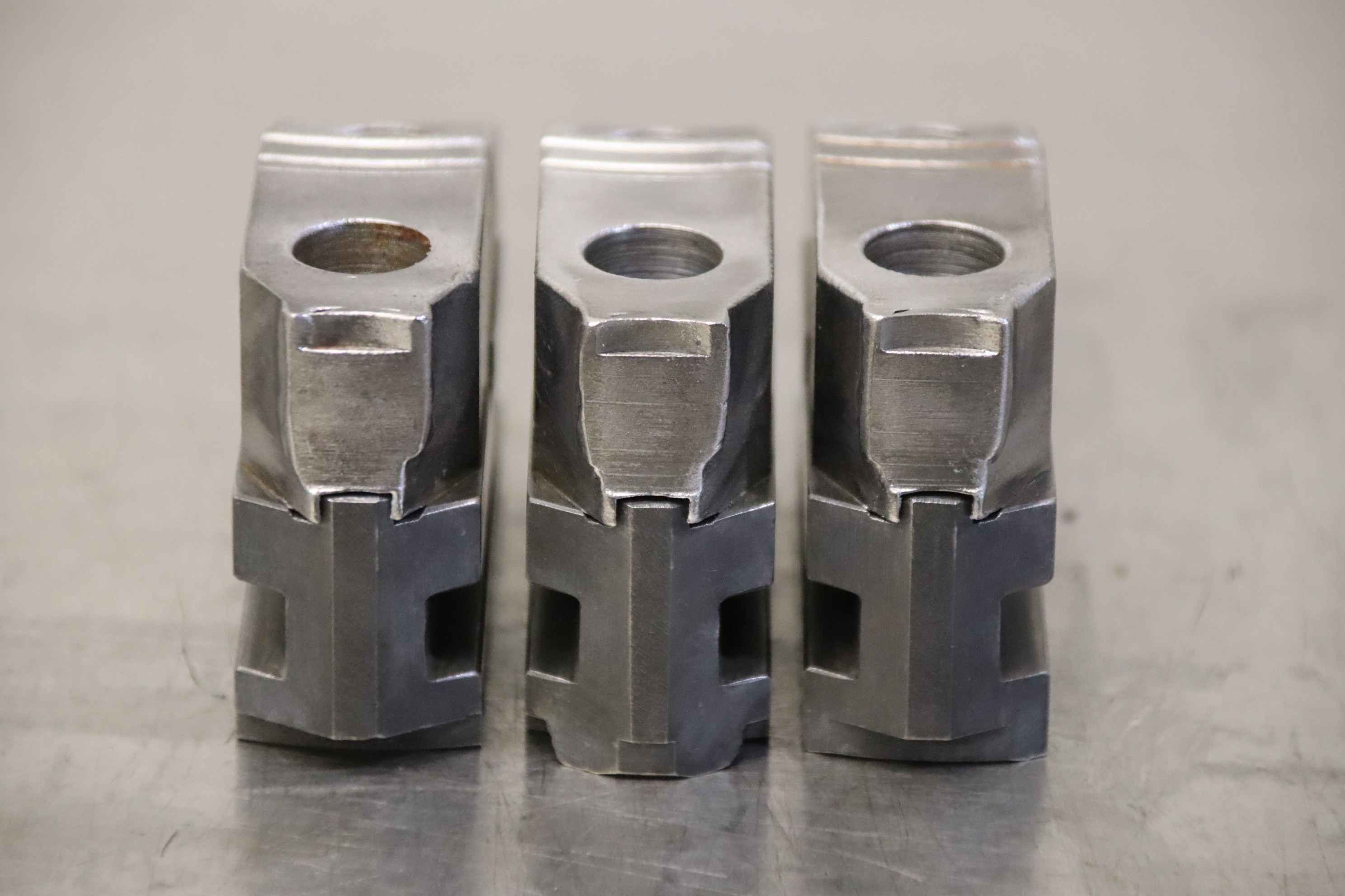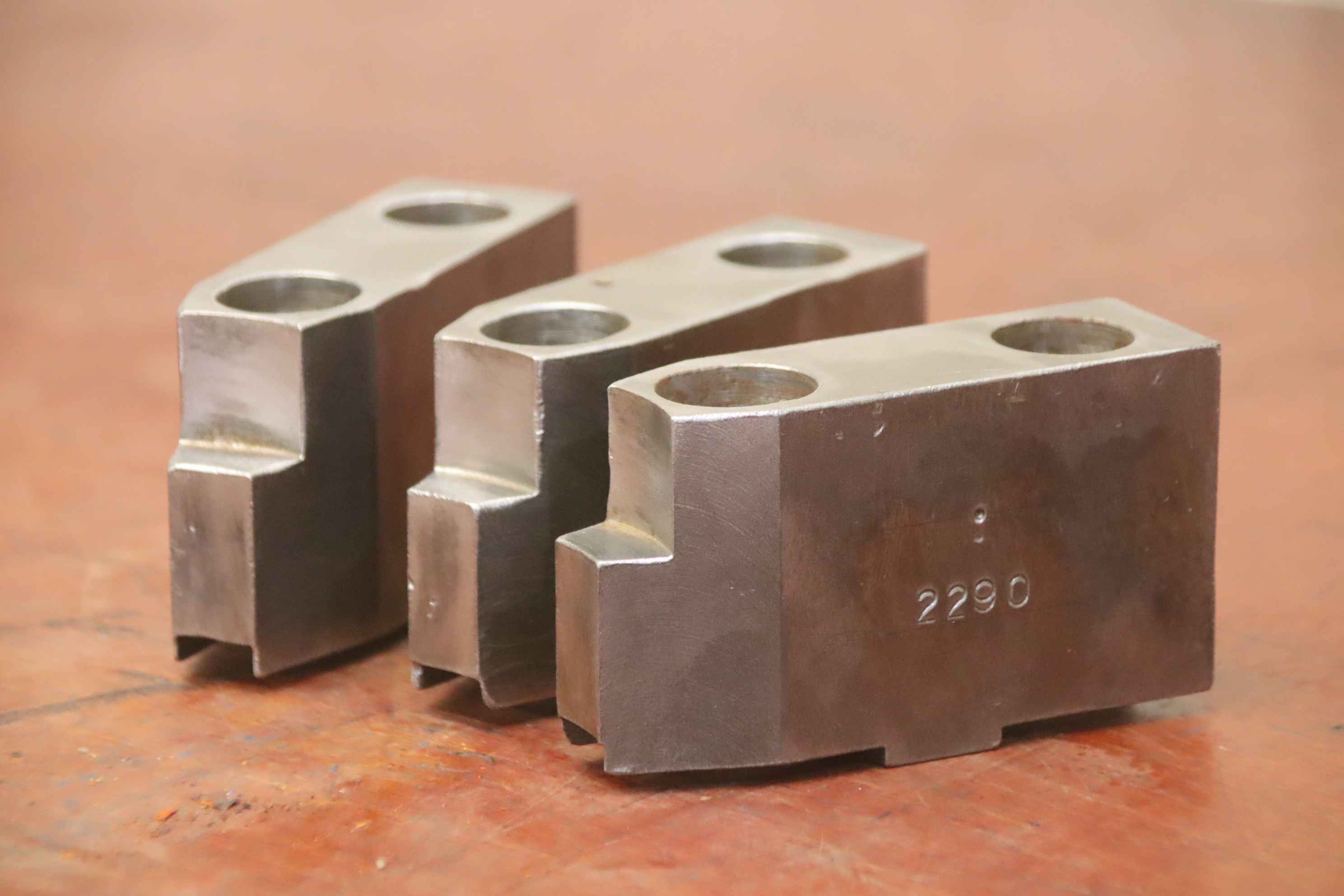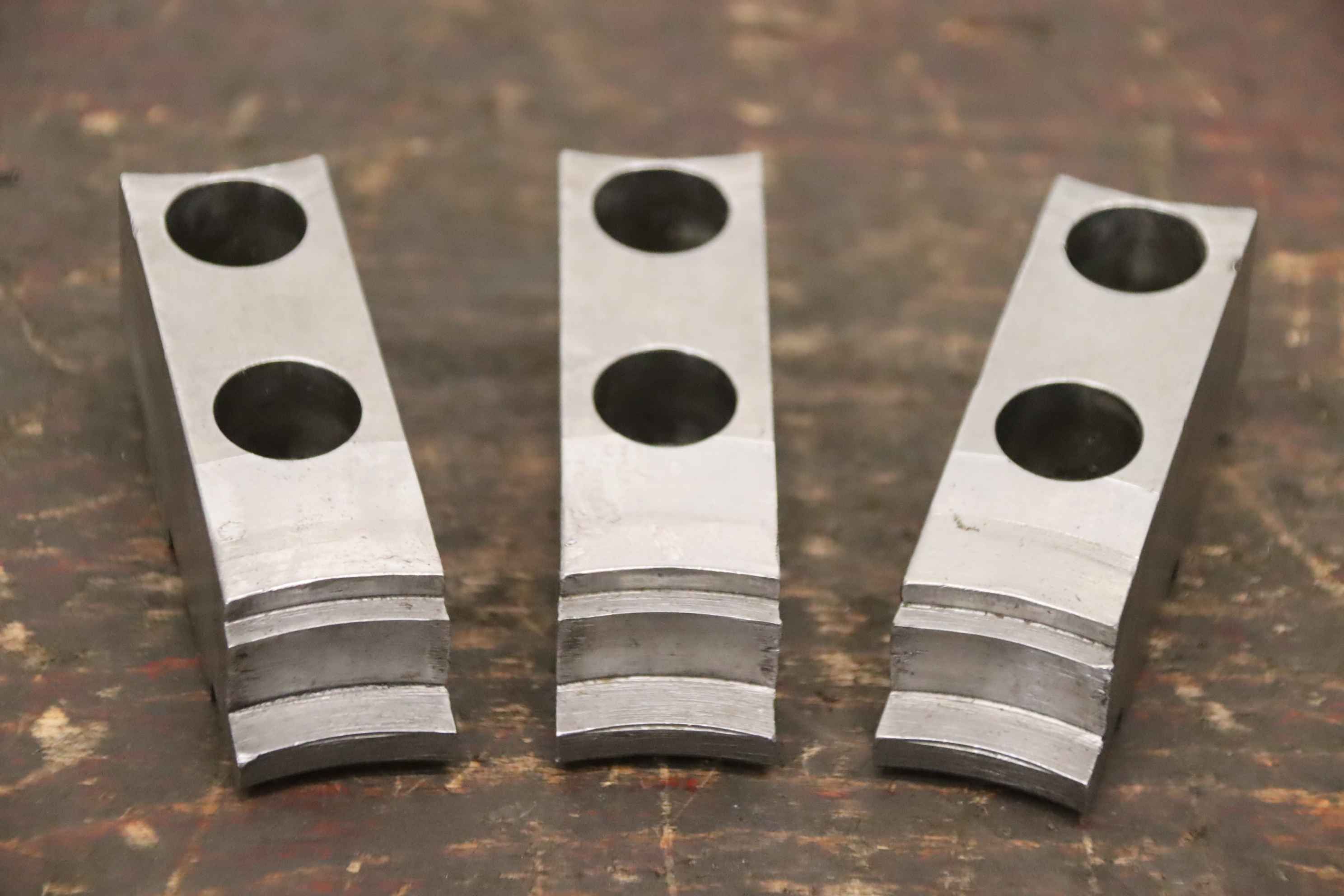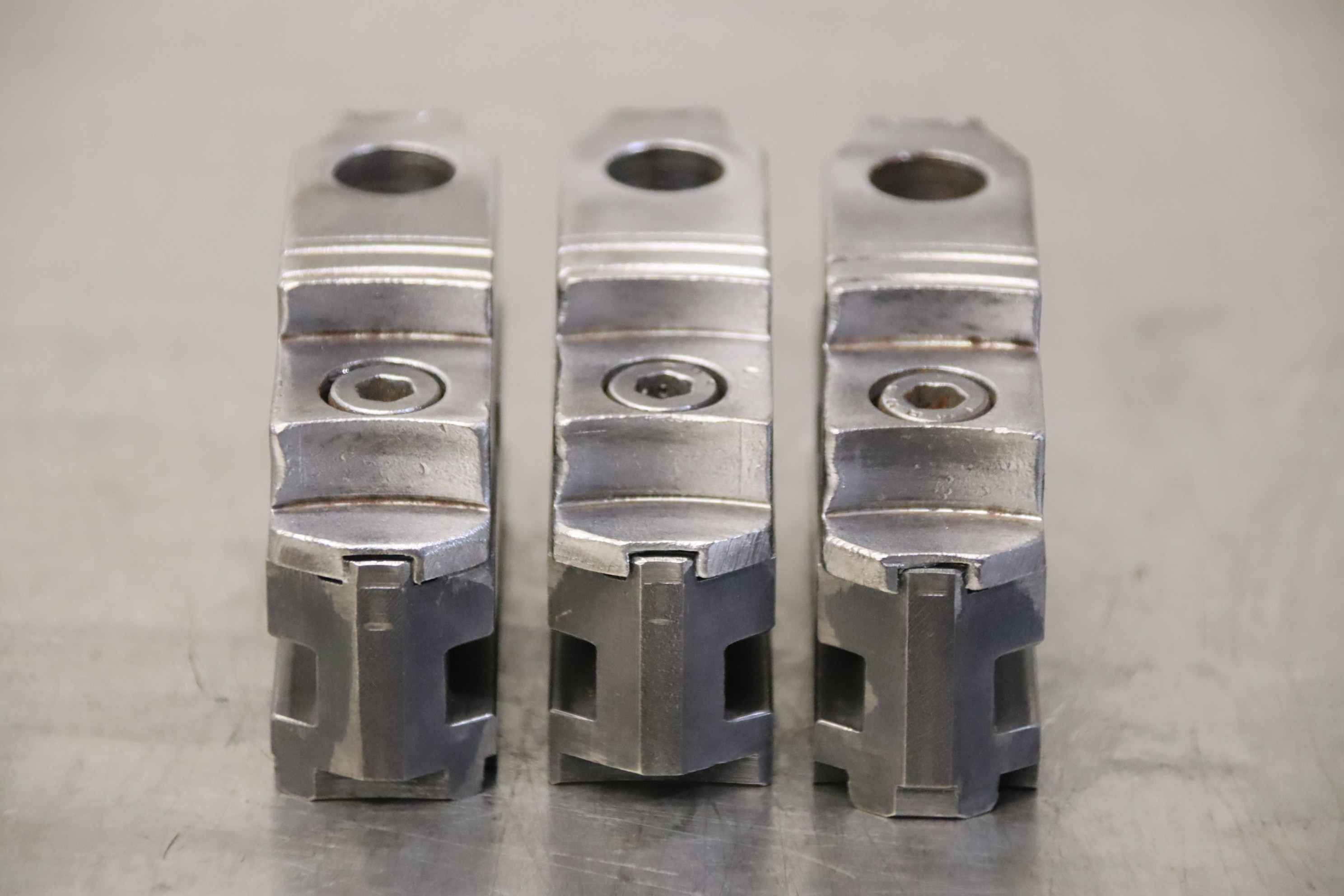 Interchangeable jaws, top jaws, three-jaw chucks, segment jaws, clamping jaws, step block jaws, step top jaws, block jaws, base jaws, 4-jaw set-Top jaws: Jaw set for three-jaw lathe chucks, soft-Jaw width: 26 mm-Dimensions: see photo technical. drawing-Total dimensions: 83/77/H53 mm-Total weight: 1.8 kg