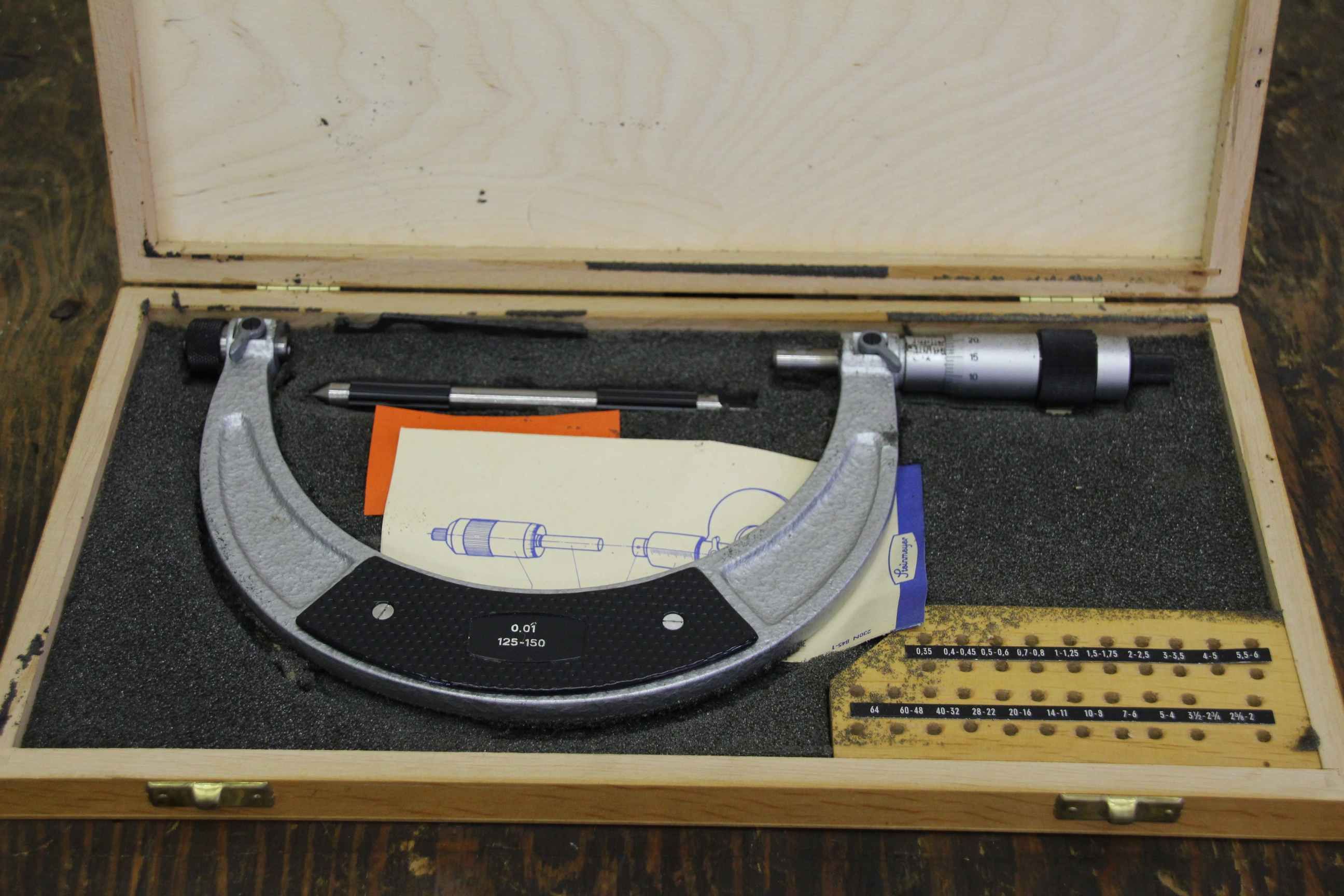 Micrometer, micrometer screw -Measuring range: 125 - 150 mm -Handover: as is as seen -Accessories: missing, see photo -other sizes: available -Dimensions box: 330/180/H30 mm -weight: 1.1 kg