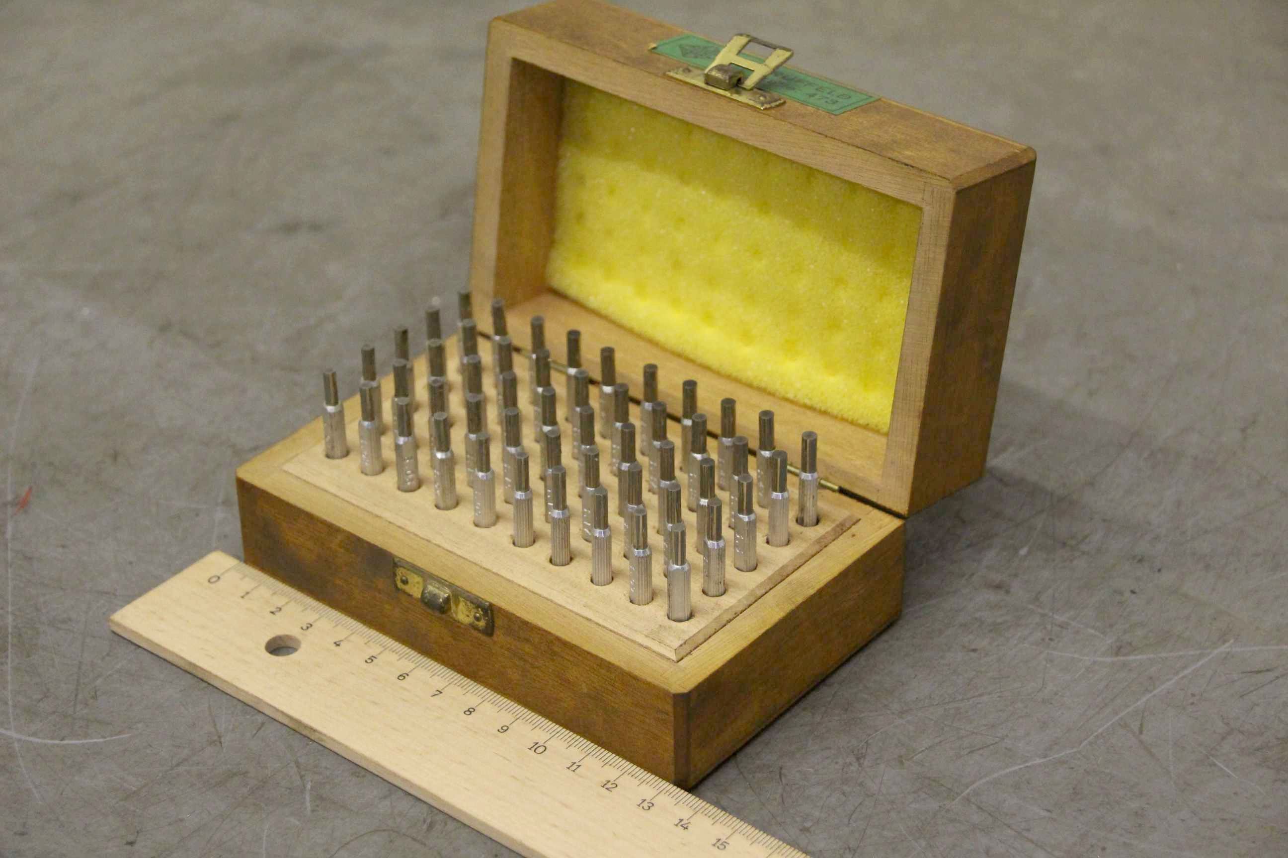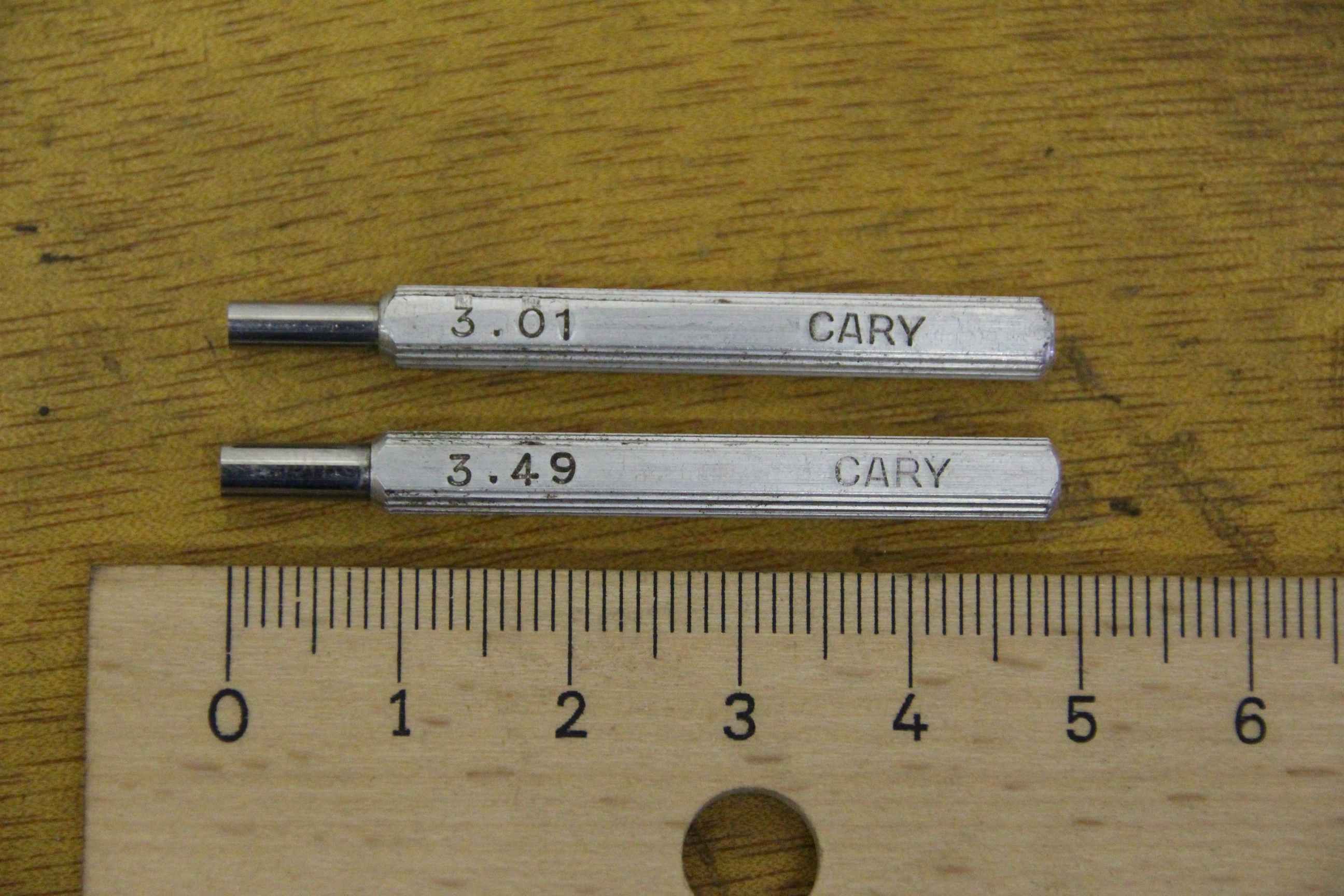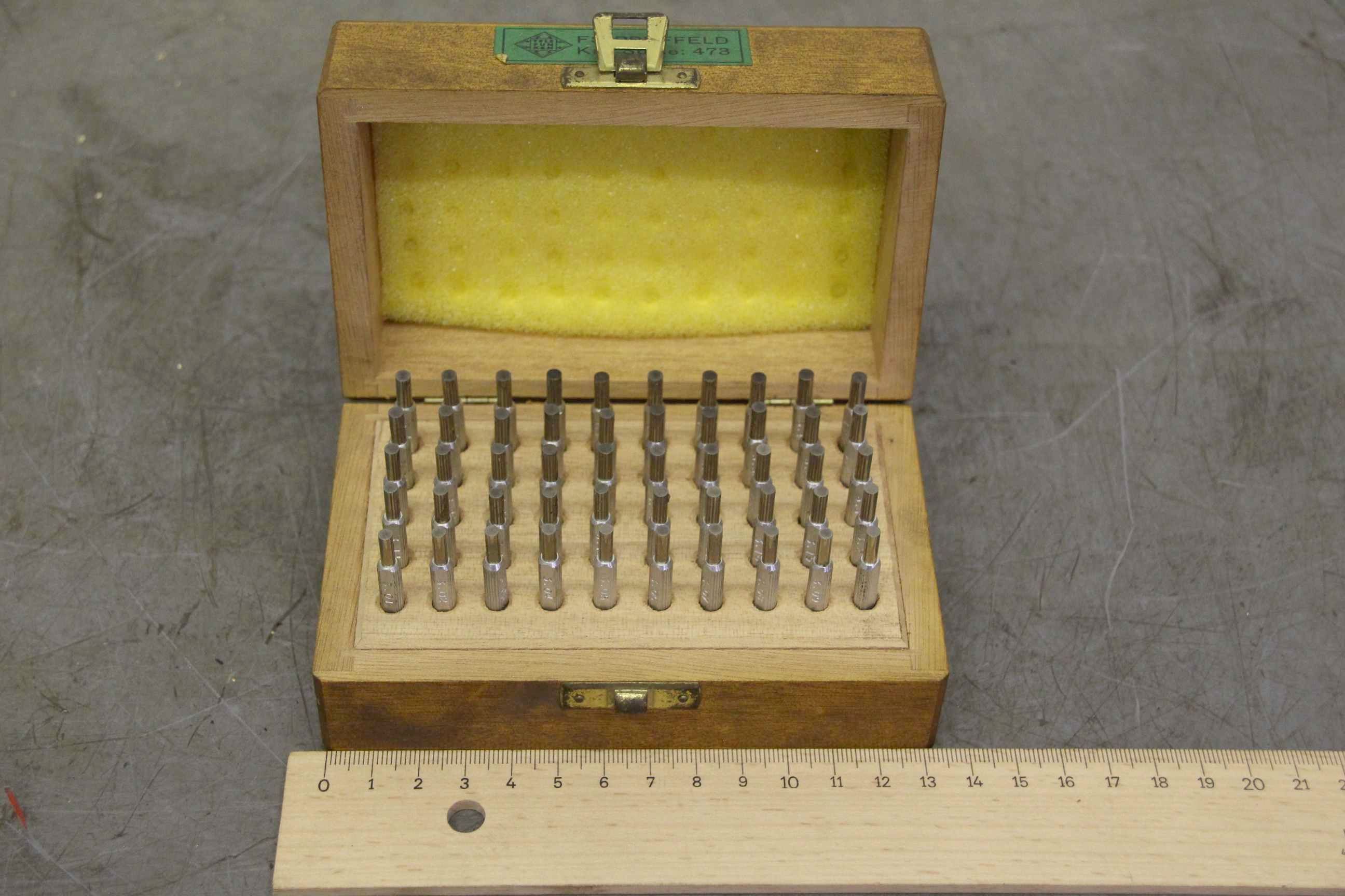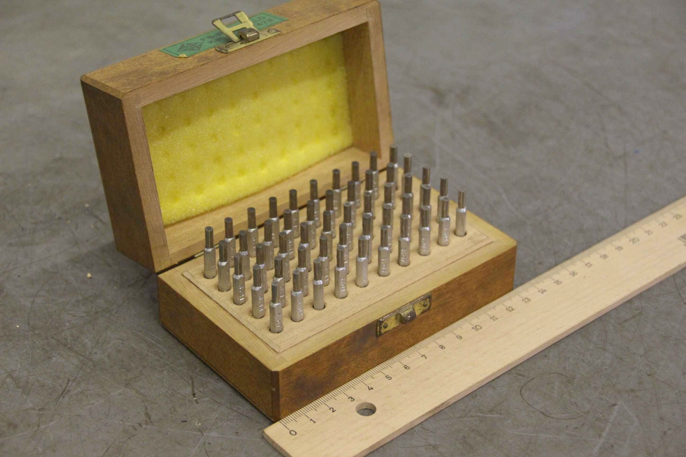Gauge block box, gauge blocks, parallel gauge blocks, test pin set, test pins, plug gauge-Manufacturer: Cary, plug gauge test pin set: 3.01 - 3.49 mm-Content / nominal dimensions: see photos-Dimension box: 135/85 / H60 mm-Weight: 0.3 kg