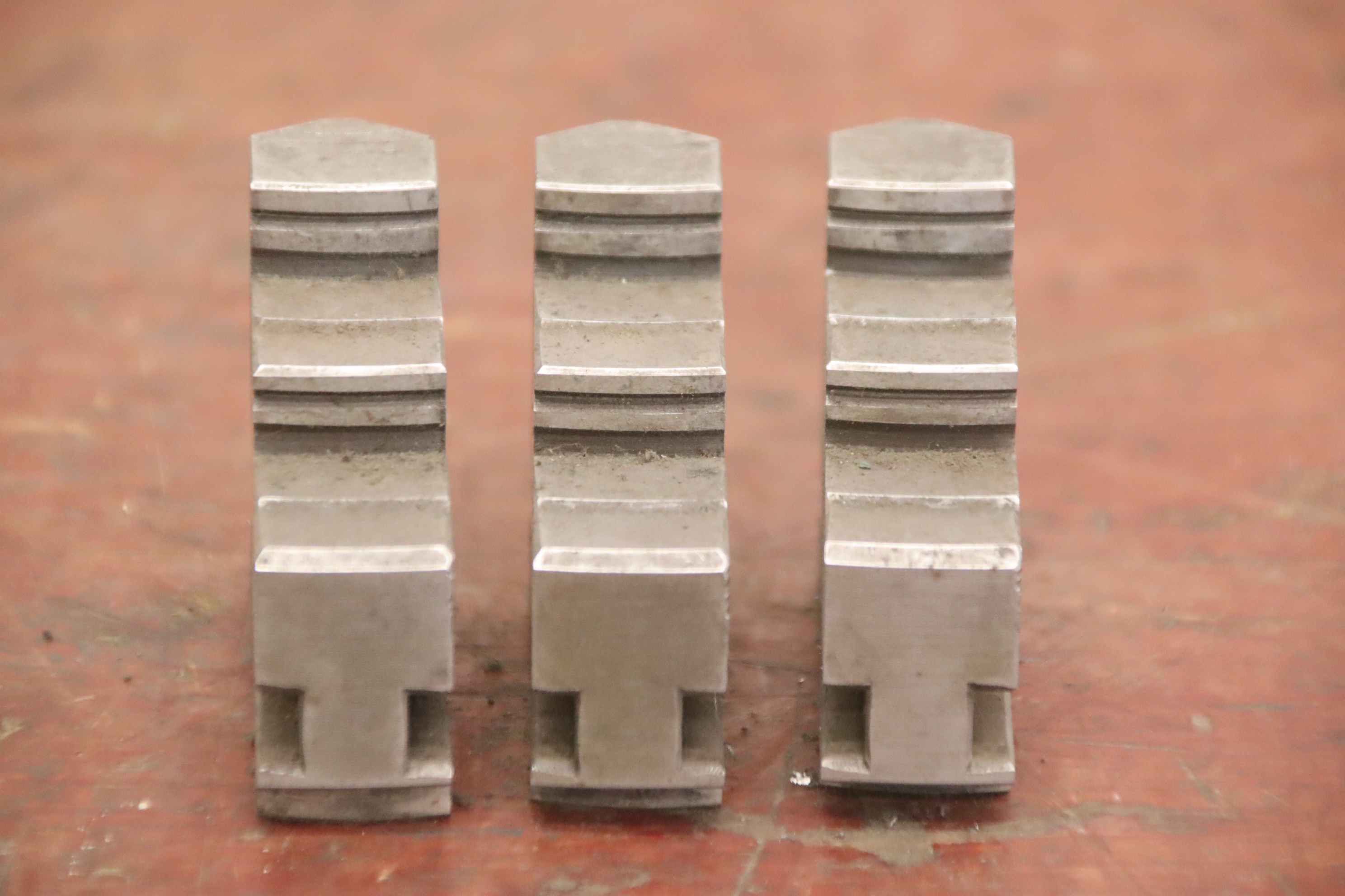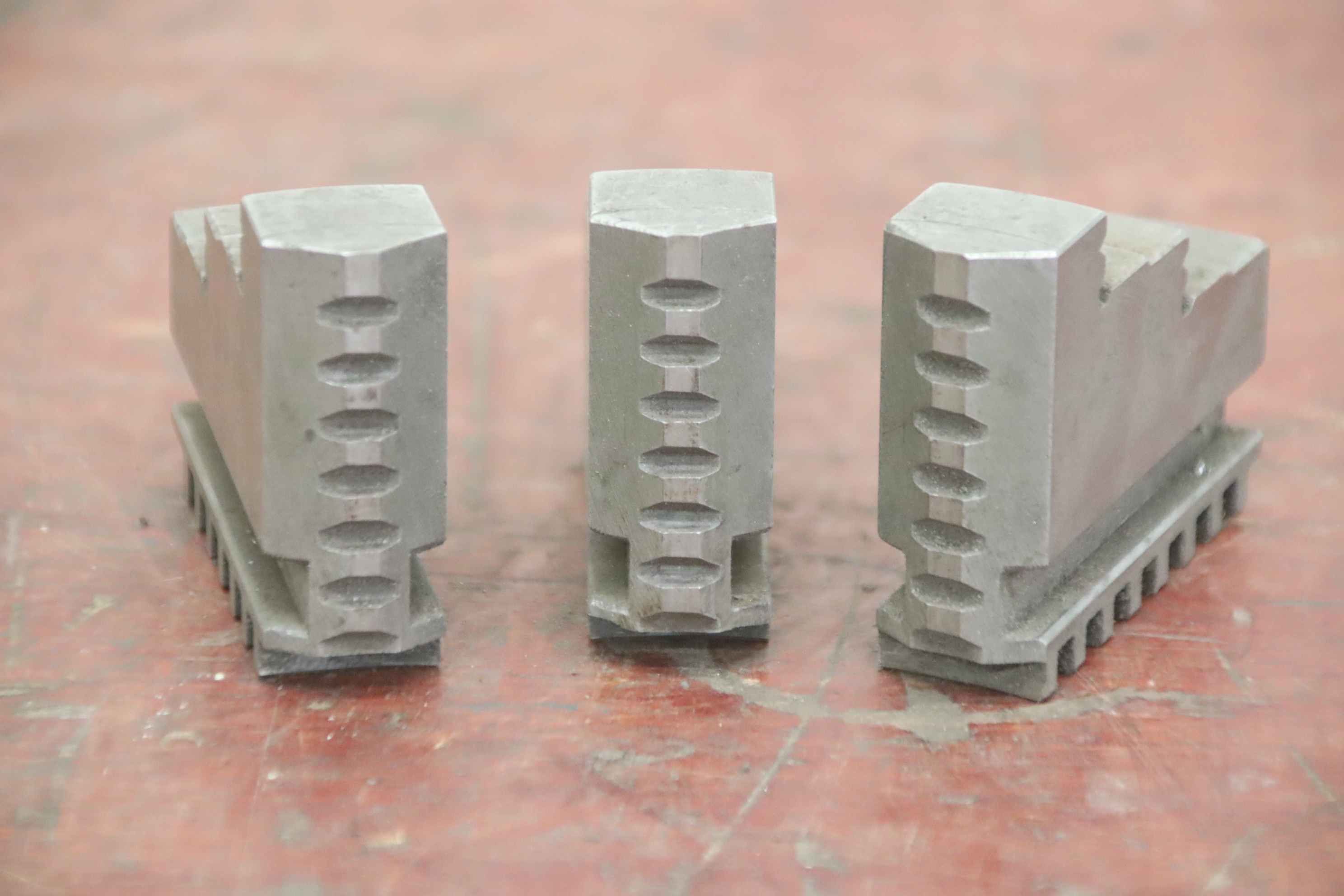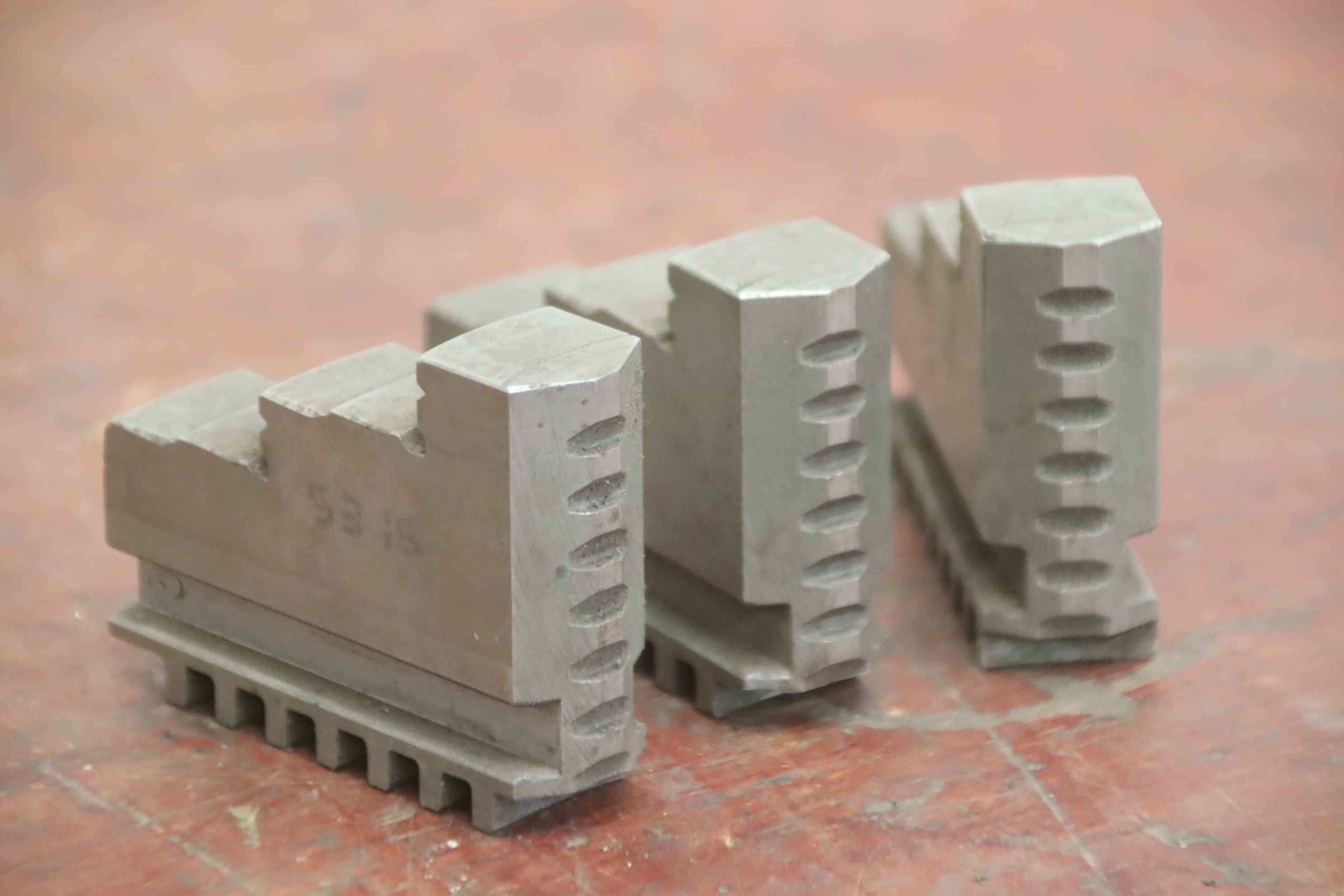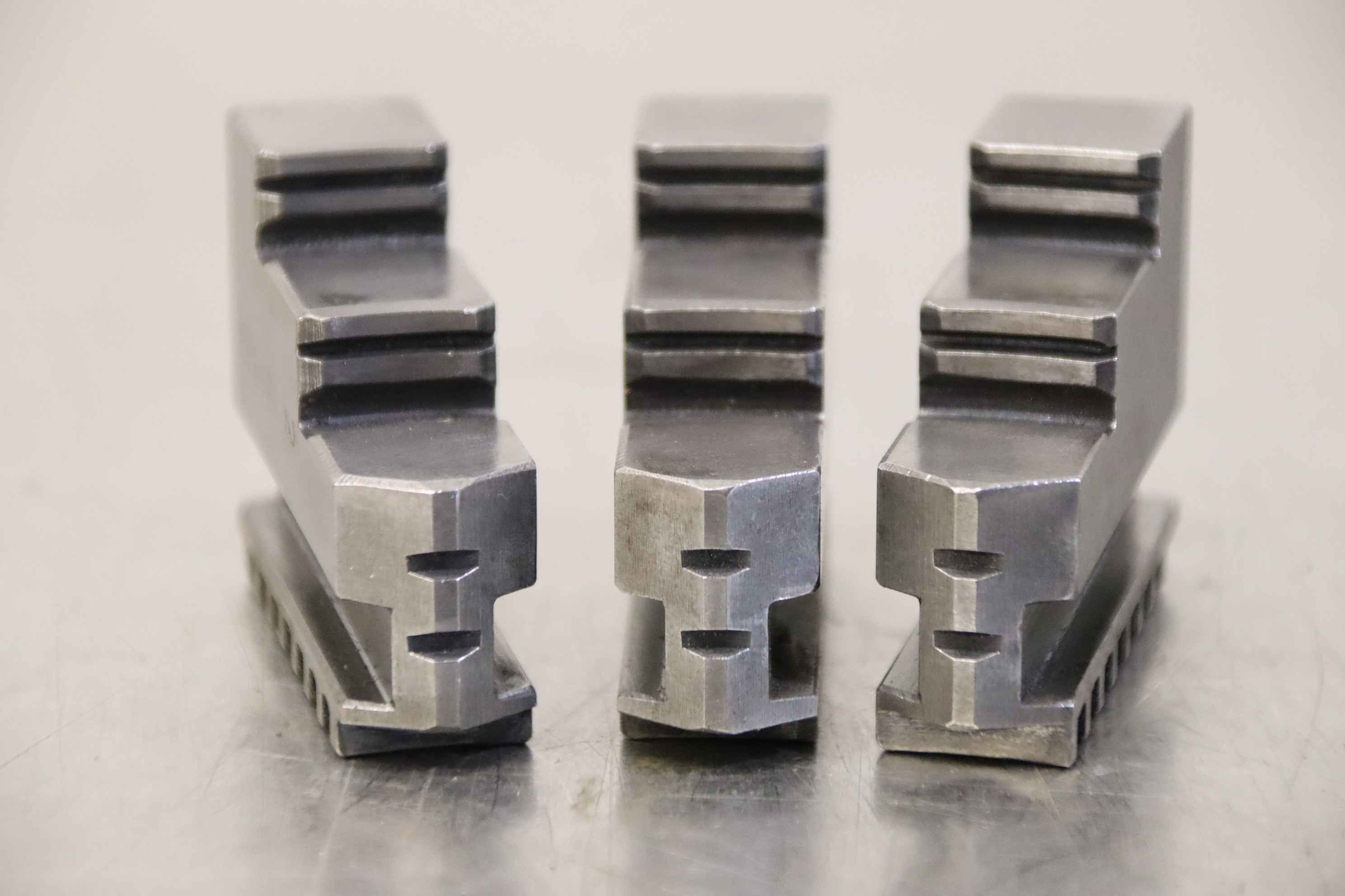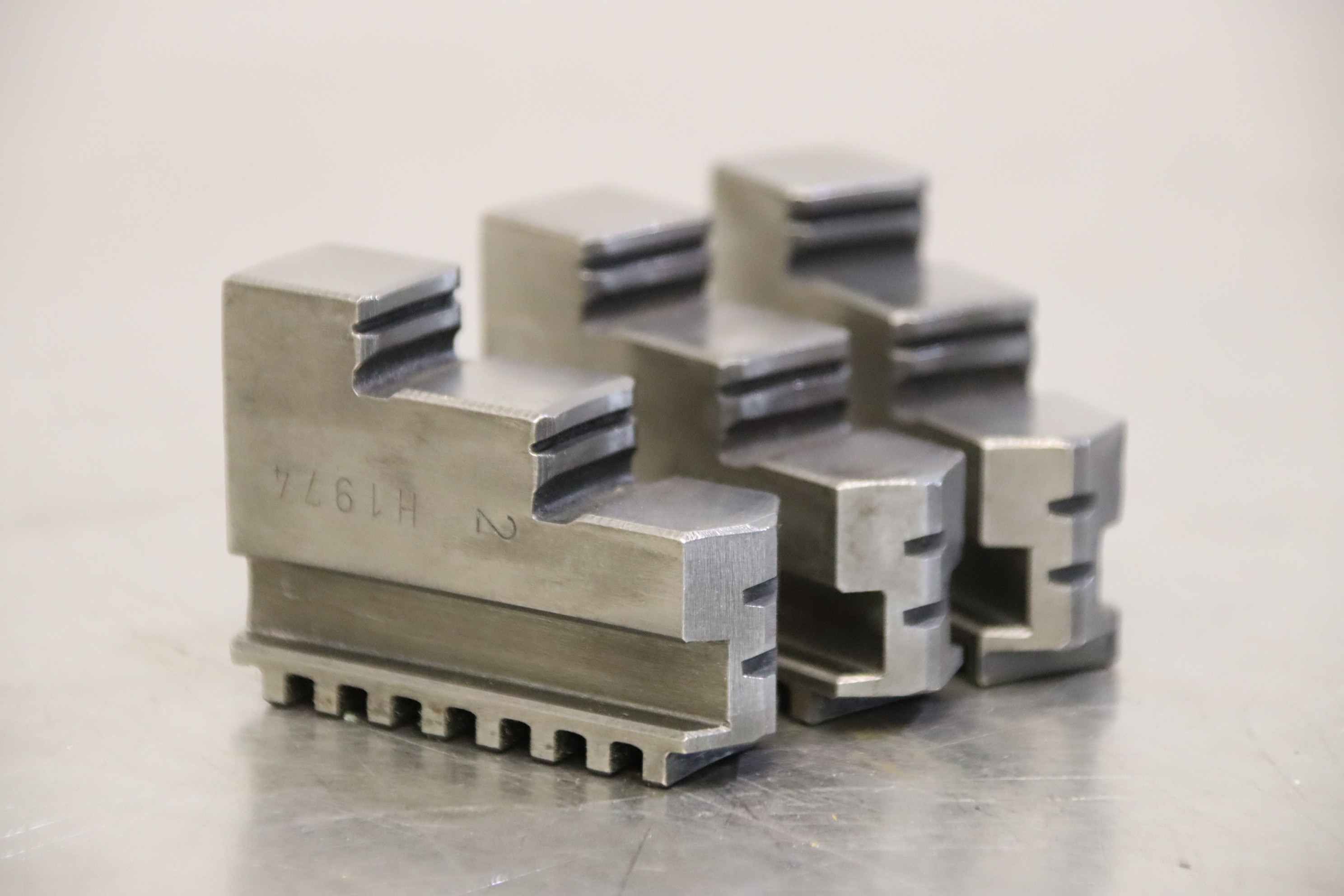 Interchangeable jaws, top jaws, three-jaw chucks, segment jaws, clamping jaws, step block jaws, step top jaws, block jaws, base jaws, 4-jaw set-Top jaws: jaw set for three-jaw lathe chucks, hard-Jaw width: 20 mm-Dimensions: 70/60 / H50 mm-Total weight: 1.0 kg