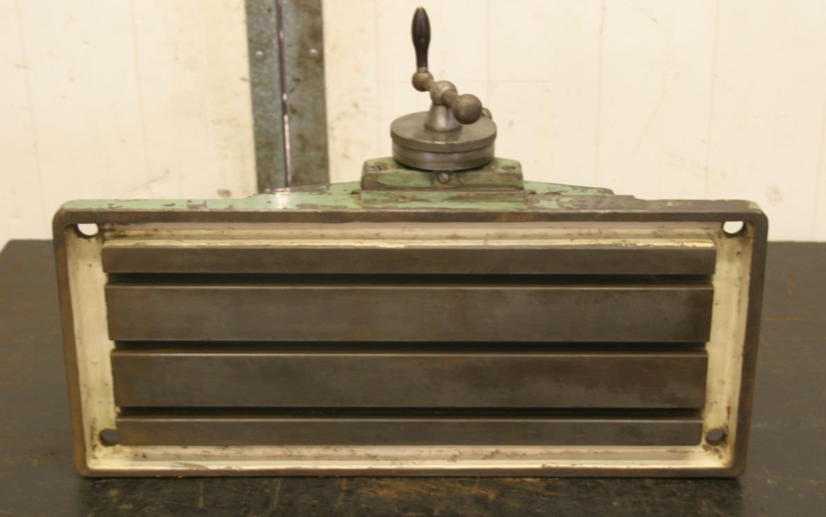 Clamping table, clamping angle, T-slot table, rotary table, milling machine table -Table surface: 210 x 570 mm -T slots: 3 - rotatable and swiveling -Fits Deckel Mikron WMW and other milling machines -Weight: 95 kg