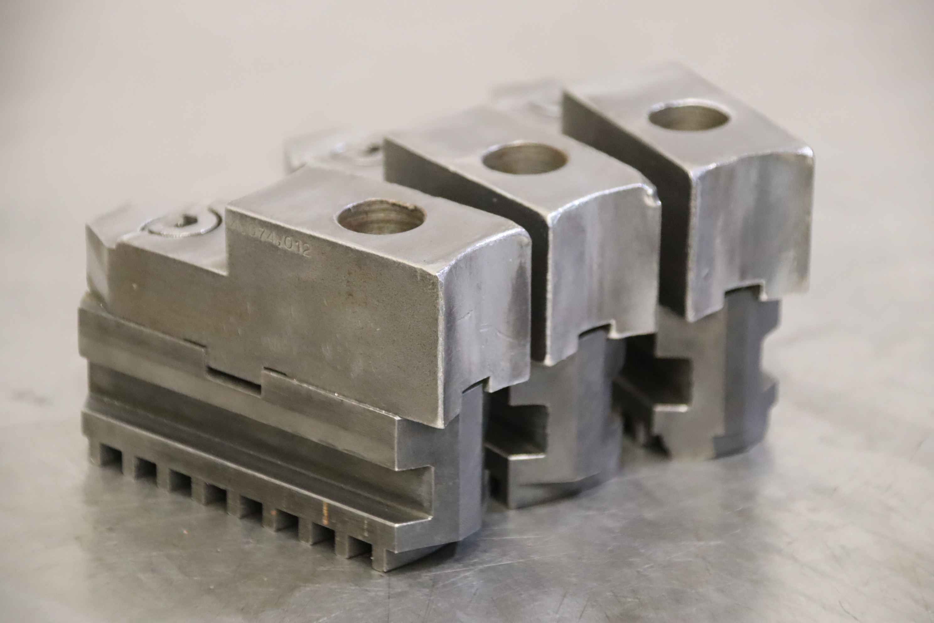 Interchangeable jaws, top jaws, three-jaw chucks, segment jaws, clamping jaws, step block jaws, step top jaws, block jaws, base jaws, 4-jaw set-Top jaws: Jaw set for three-jaw lathe chucks, soft-Jaw width: 26 mm-Dimensions: see photo technical. drawing-Total dimensions: 84/75/H60 mm-Total weight: 2.0 kg