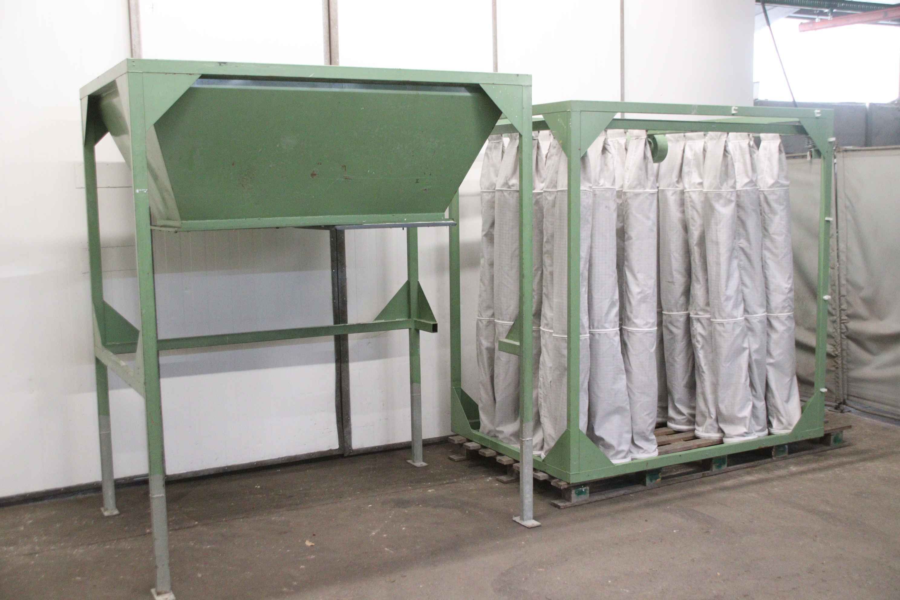 Dust extraction fan, extraction, dust blower, extraction system, dust blower, dust extraction device, separator, welding smoke filter, welding smoke extraction, smoke gas extraction fan, filter system, Cartridge dust extraction system -Filter system: -Filter frame: 1400/1995/H2100 mm -Shaking motor: 0.25 kW -Funnel frame: 1400/1995/H2350 mm -Opening: Ø 500 mm / 500 x 220 mm -Individual components: see photos -Weight: 220 kg / 521 kg