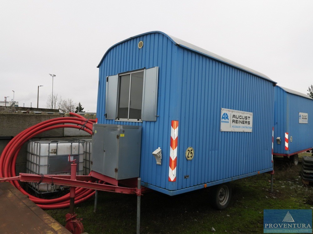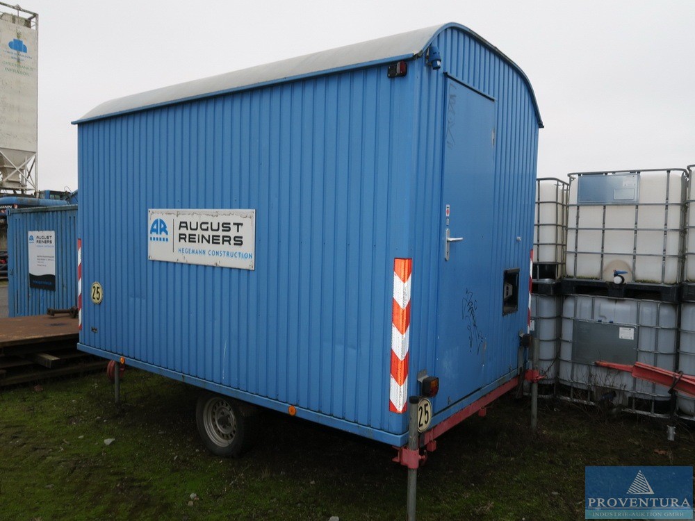 Строительный прицеп 25 км/ч примерно 350x220x260 см (LxWxH), салон с электрификацией и газовым отоплением, инв. No: 425 340 164, номер шасси нечитаем, разрешено 1 500 кг GG, оптически хорошее состояни