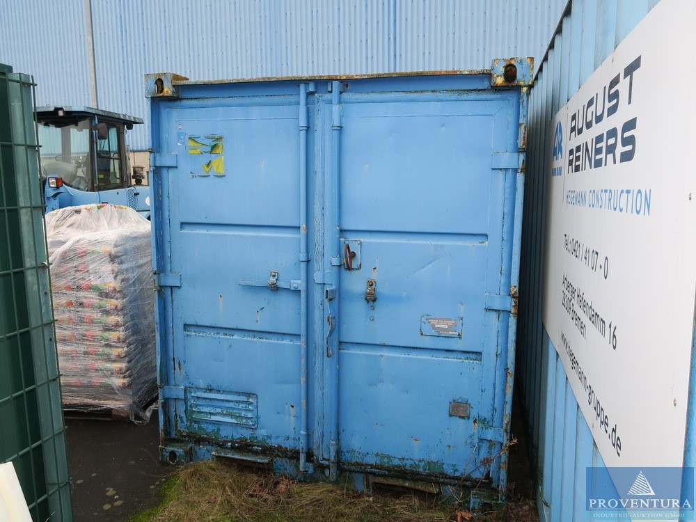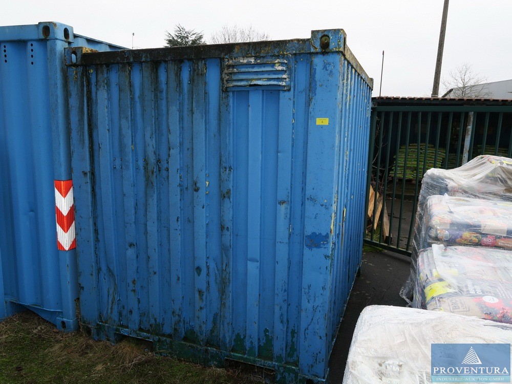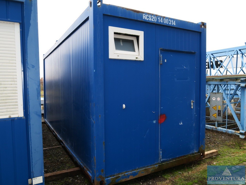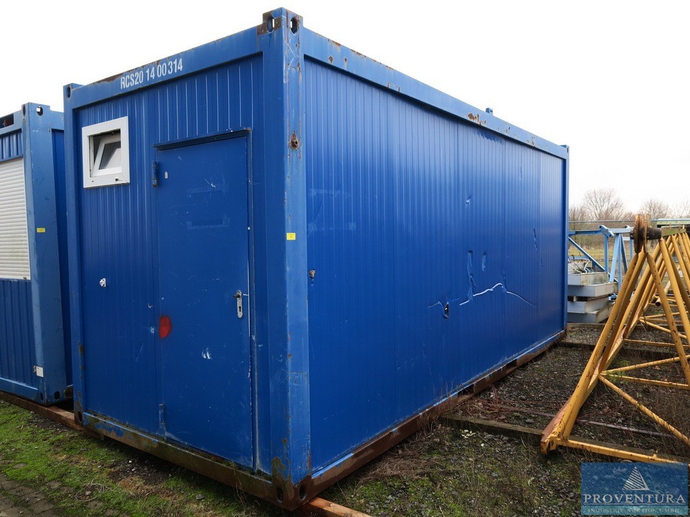 Офисный контейнер примерно 20 футов синий, примерно 606x244x280 см (LxWxH), интерьер с электрификацией и газовым отоплением, плохое общее состояние, дыра в полу,