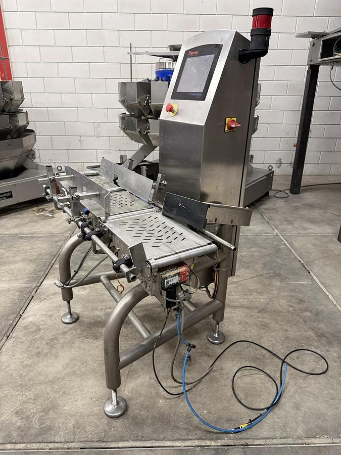 Thermo Fisher Scientific Versa Weigh GVW0 V312 – Automatic Checkweigher, Manufacturer: Thermo Scientific, Model: Versa Weigh GVW0 V312, Serial number: E307, Year of manufacture: 2019, Machine type: Automatic checkweigher, Description, The Thermo Scientific Versa Weigh GVW0 V312 is a high-precision automatic checkweigher designed for dynamic inline weight control in modern production and packaging lines. The system ensures accurate weighing and compliance with strict quality standards., This checkweigher is built for high-speed production environments and is commonly used in food, pharmaceutical, and consumer goods industries., Technical Specifications, - Manufacturer: Thermo Scientific, - Model: Versa Weigh GVW0 V312, - Serial number: E307, - Year: 2019, - Supply voltage: 230 VAC, - Frequency: 50–60 Hz, - Power consumption: 600 W, - Accuracy class: XIII (1), - Operating temperature: ...