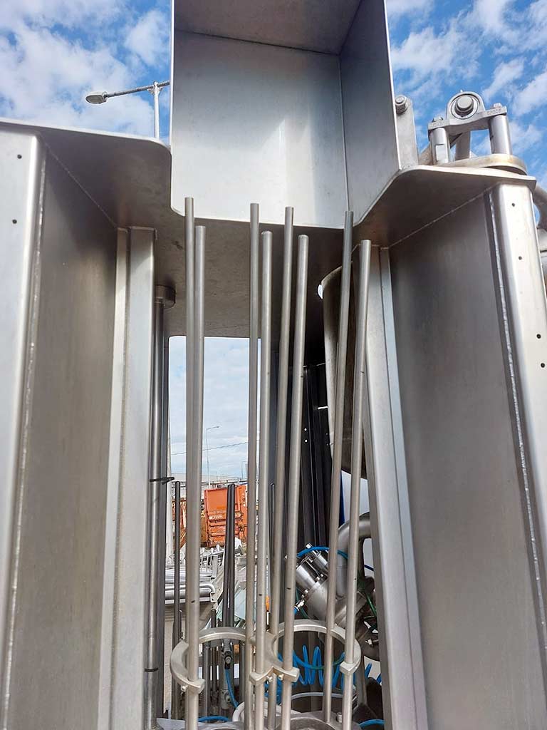 Дополнительное название: очистка и заправка, Ёмкость: 60 кег/ч на 50 л, эксплуатация / управление: Siemens S7-300, Характеристики: ротационный наполнитель (очиститель и наполнятель), транспорт кегов, 3 контейнера CIP, шкаф управлени