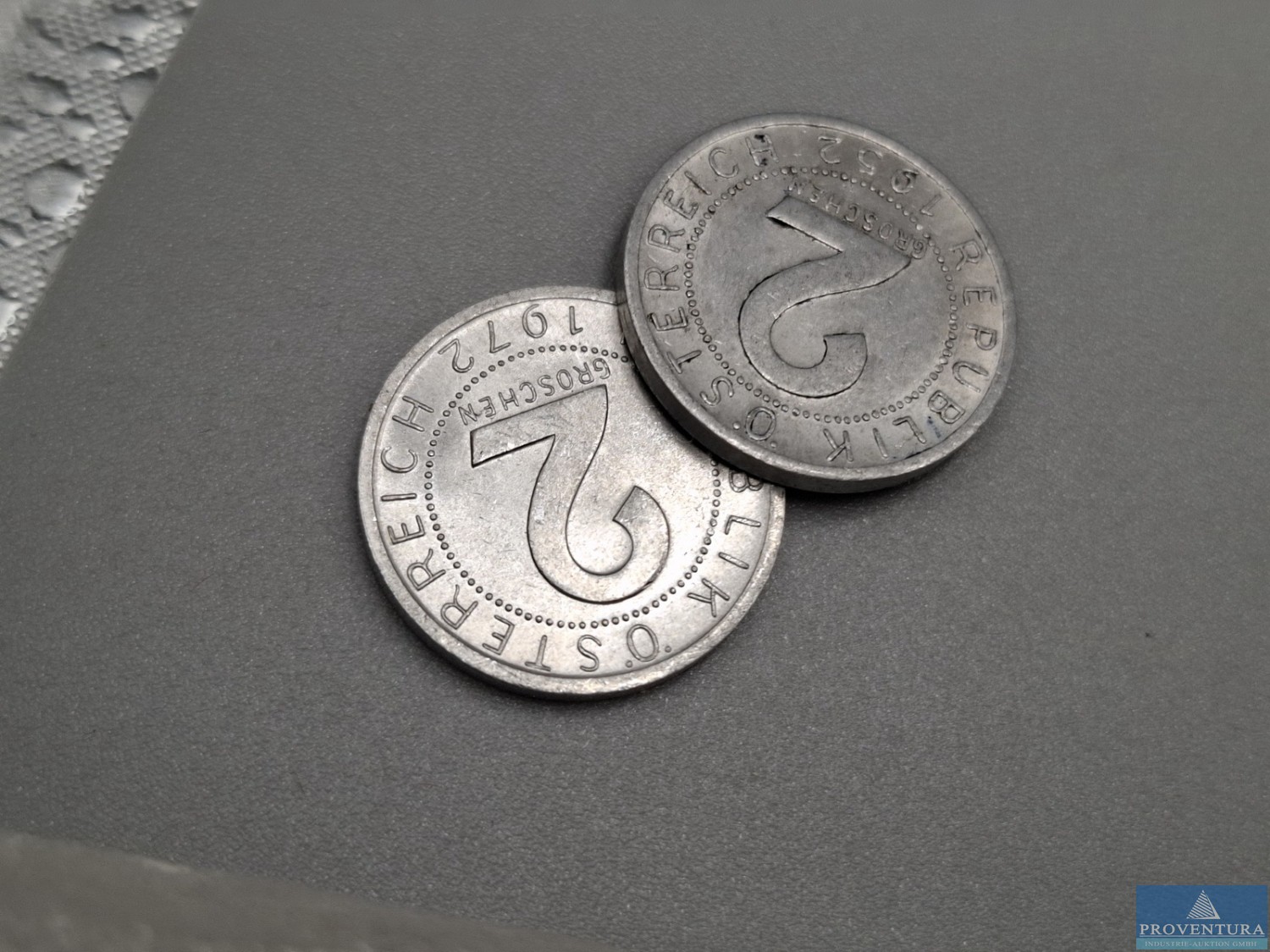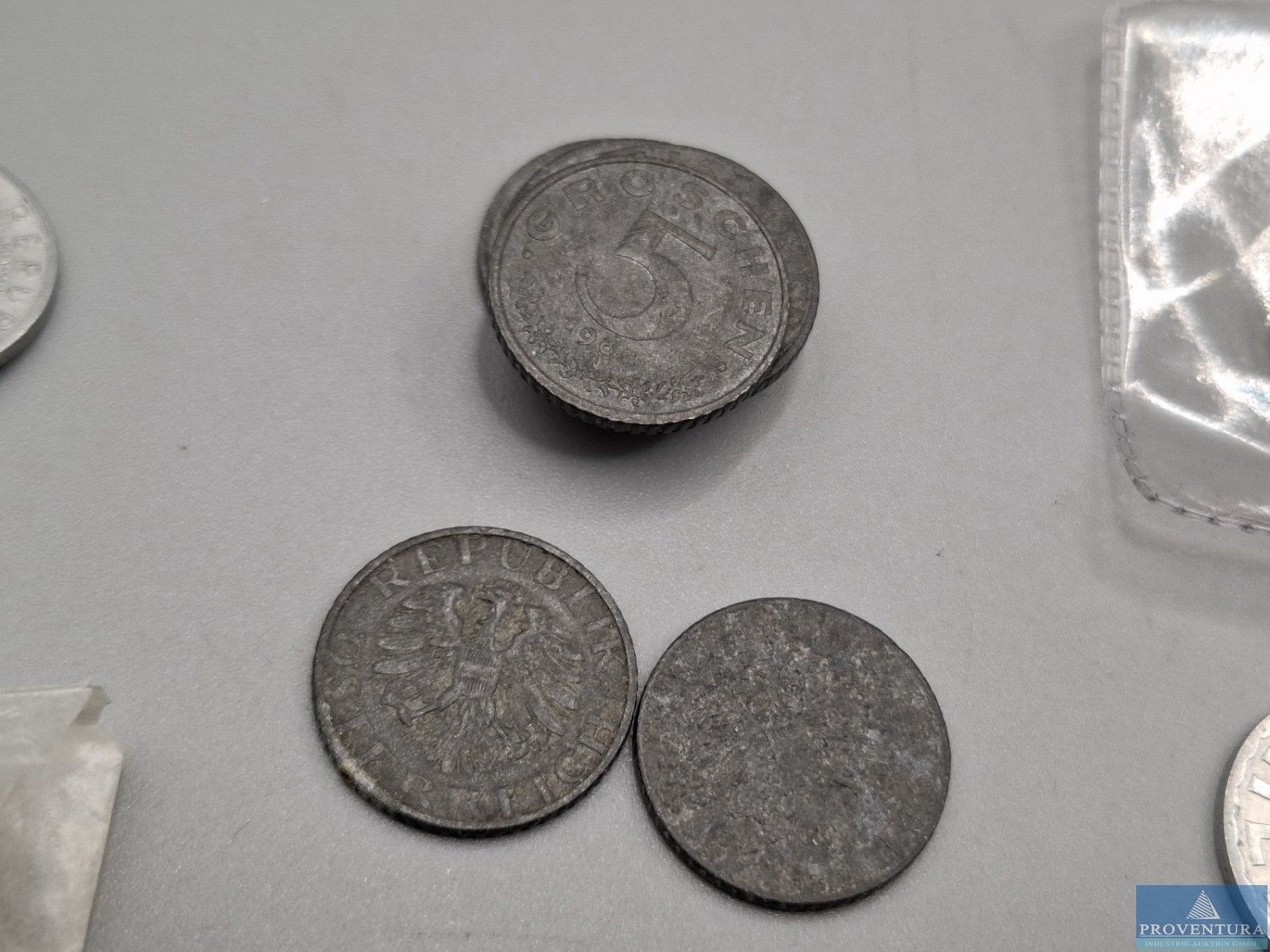 Монеты в обращении: Австрия: 20x2 грошина, 7x5 грошей, 48x10 грошей, 2x20 грошей, 16x50 грошей, 68x1 шиллинг, 26x5 шиллингов, 24x10 шиллингов, всего 211 моне