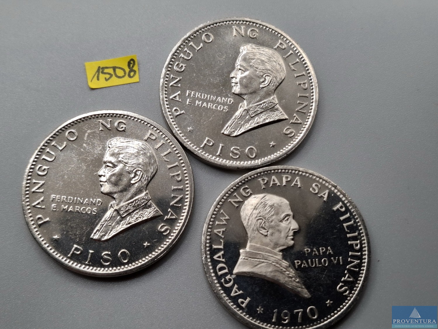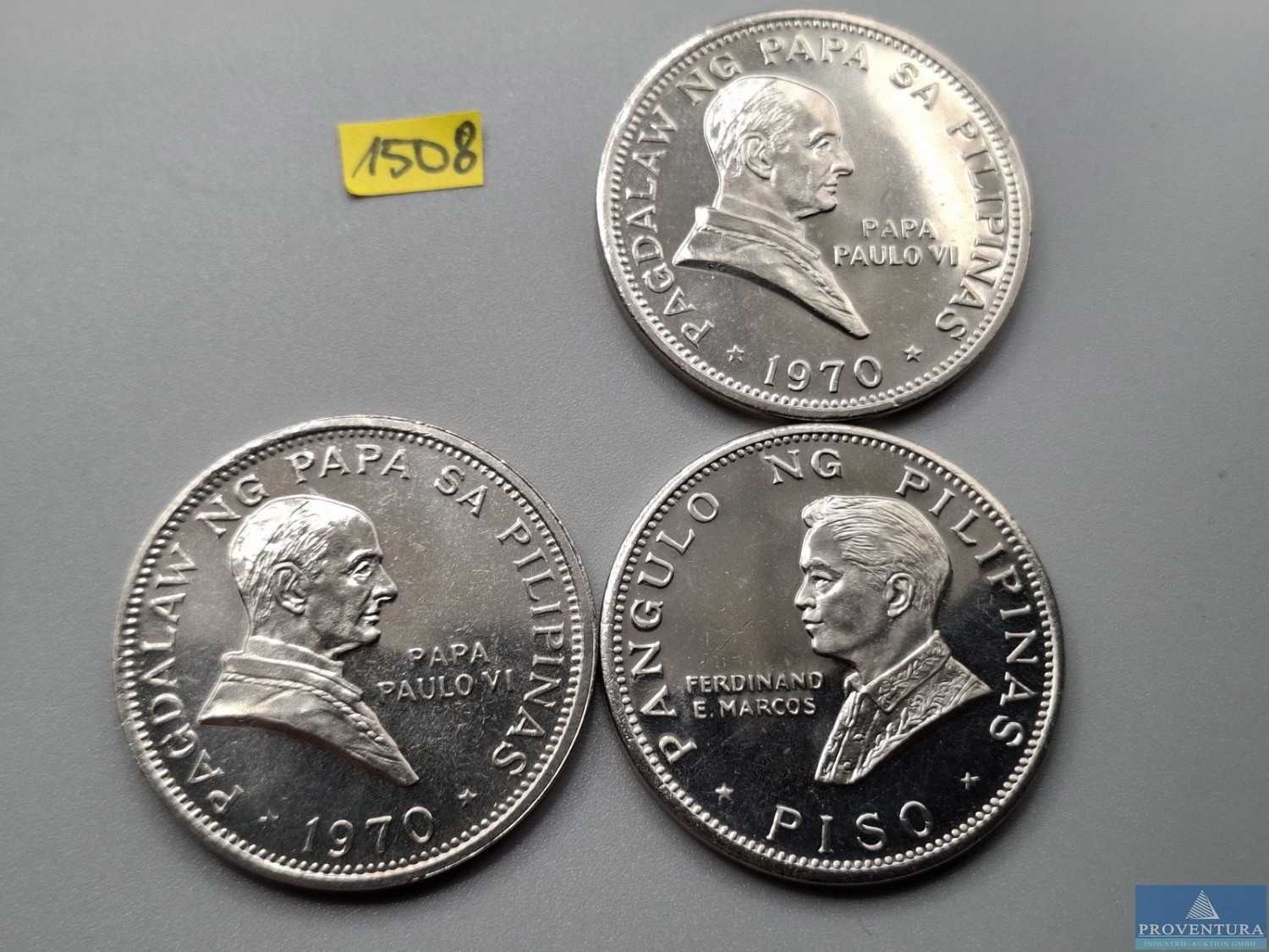 Коллекционные монеты Филиппины 3x1 Писо 1970 Папа Павел VI стр. KM202
