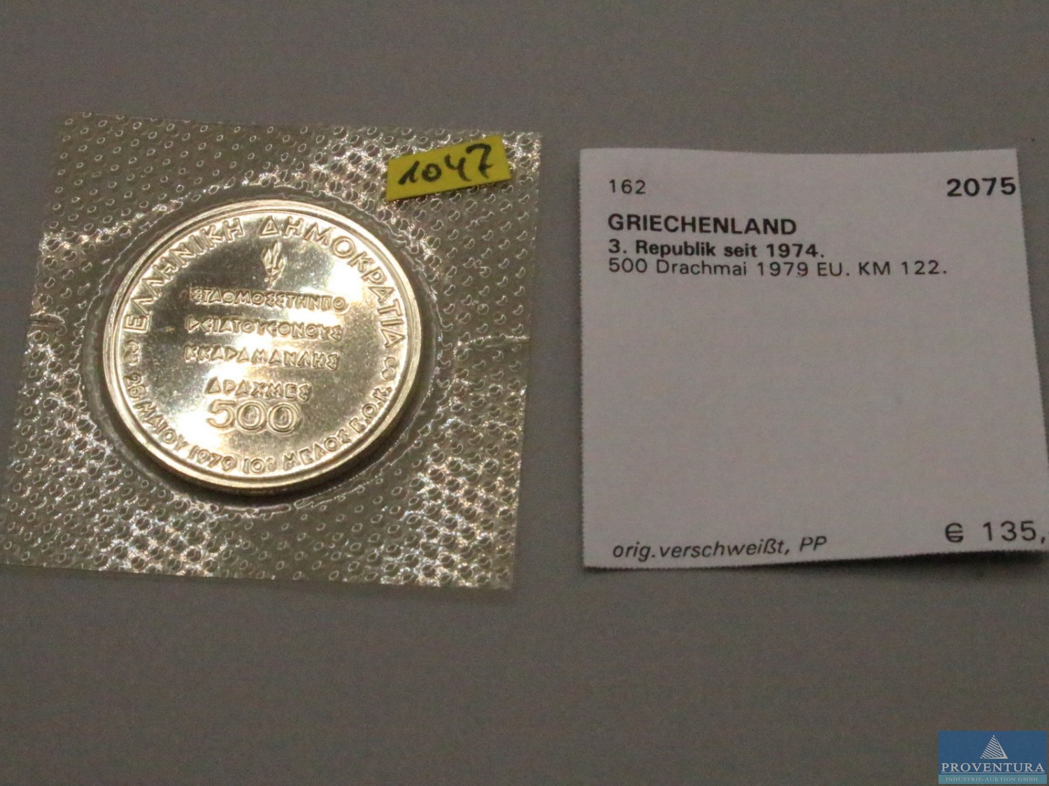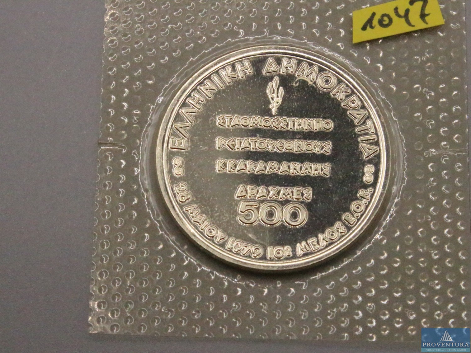 Серебряная монета в Греции 500 драхм, членство в общем рынке 1979 года, серебряный .900 грубый вес 13 гр, KM122, термоусадочная упаковк