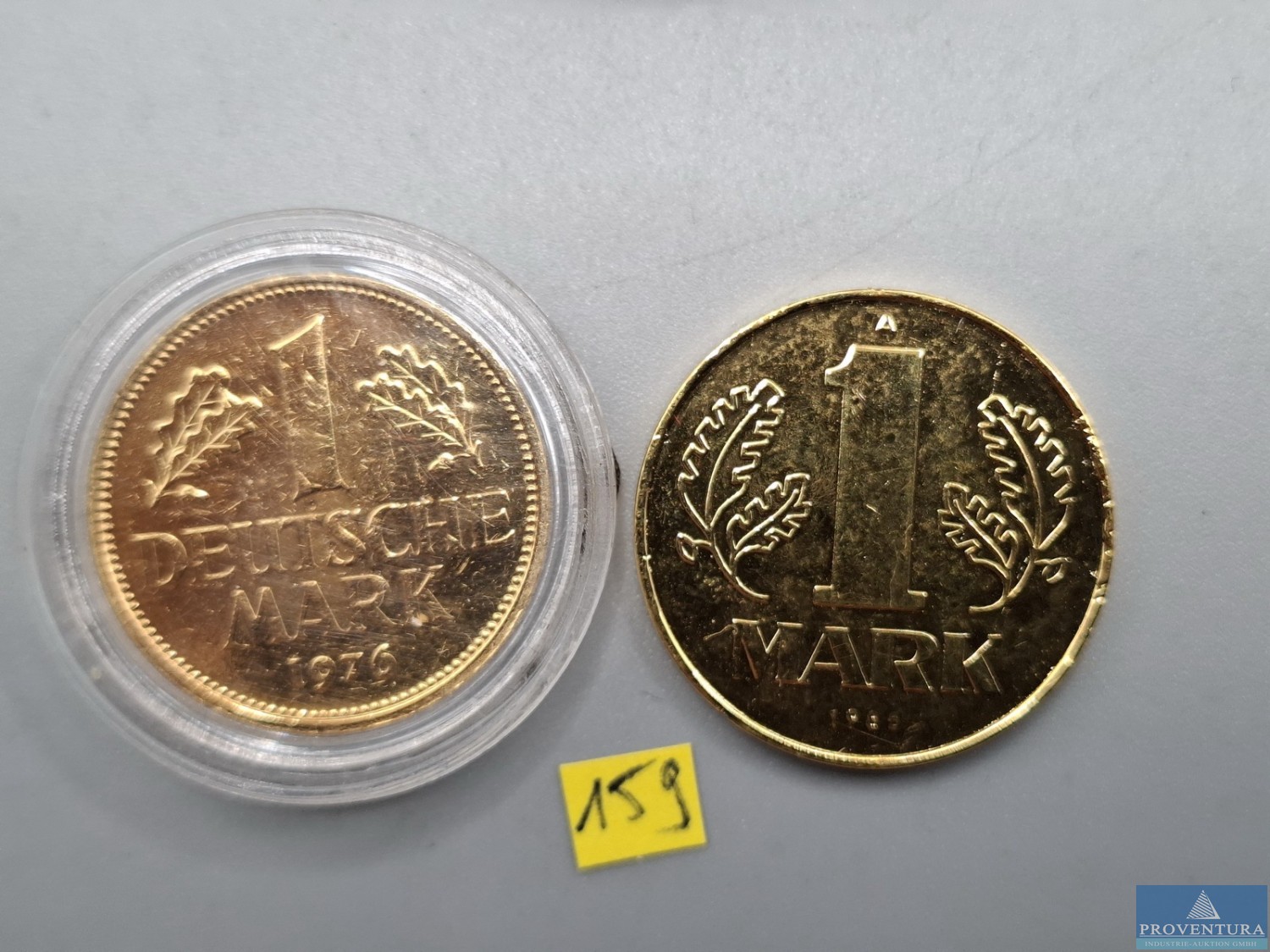 Обращение монет с позолоченным покрытием Федеративная Республика Германия 1 DM 1976 G 5,53 г грубого веса, ГДР 1 марка 1985 2,51 г грубый ве