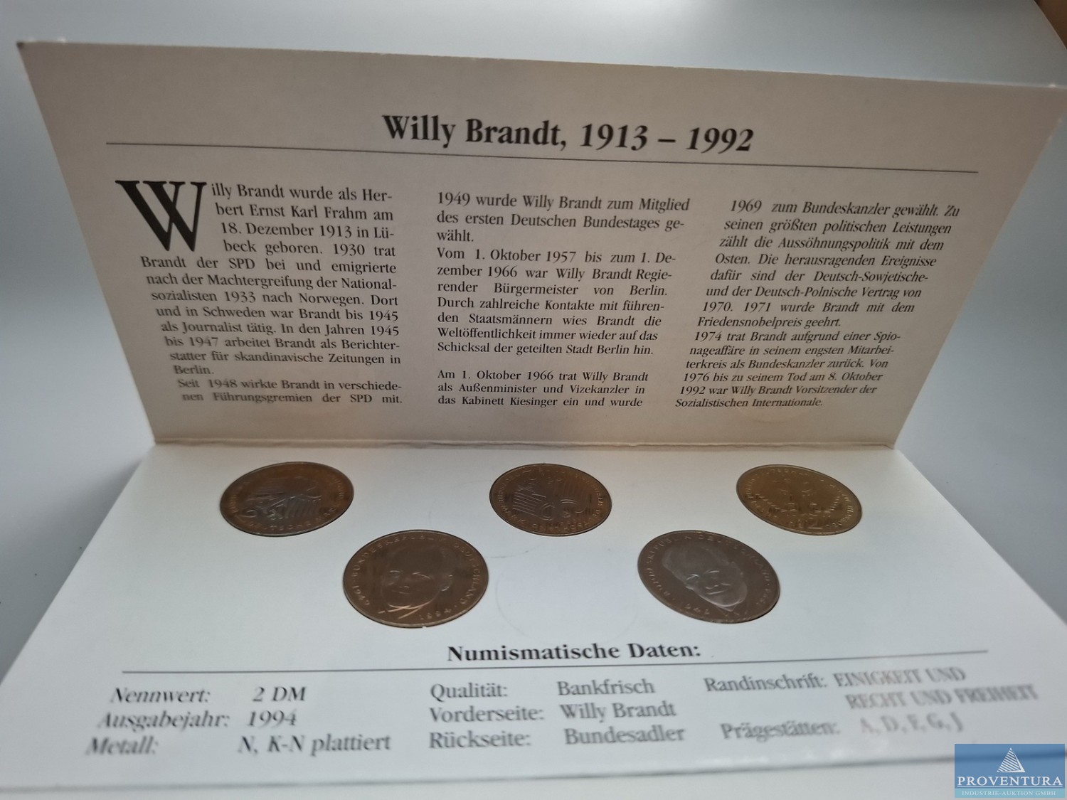 Coinset Федеративная Республика Германия 1994 2 DM Вилли Брандт ADFGJ st 10 DM