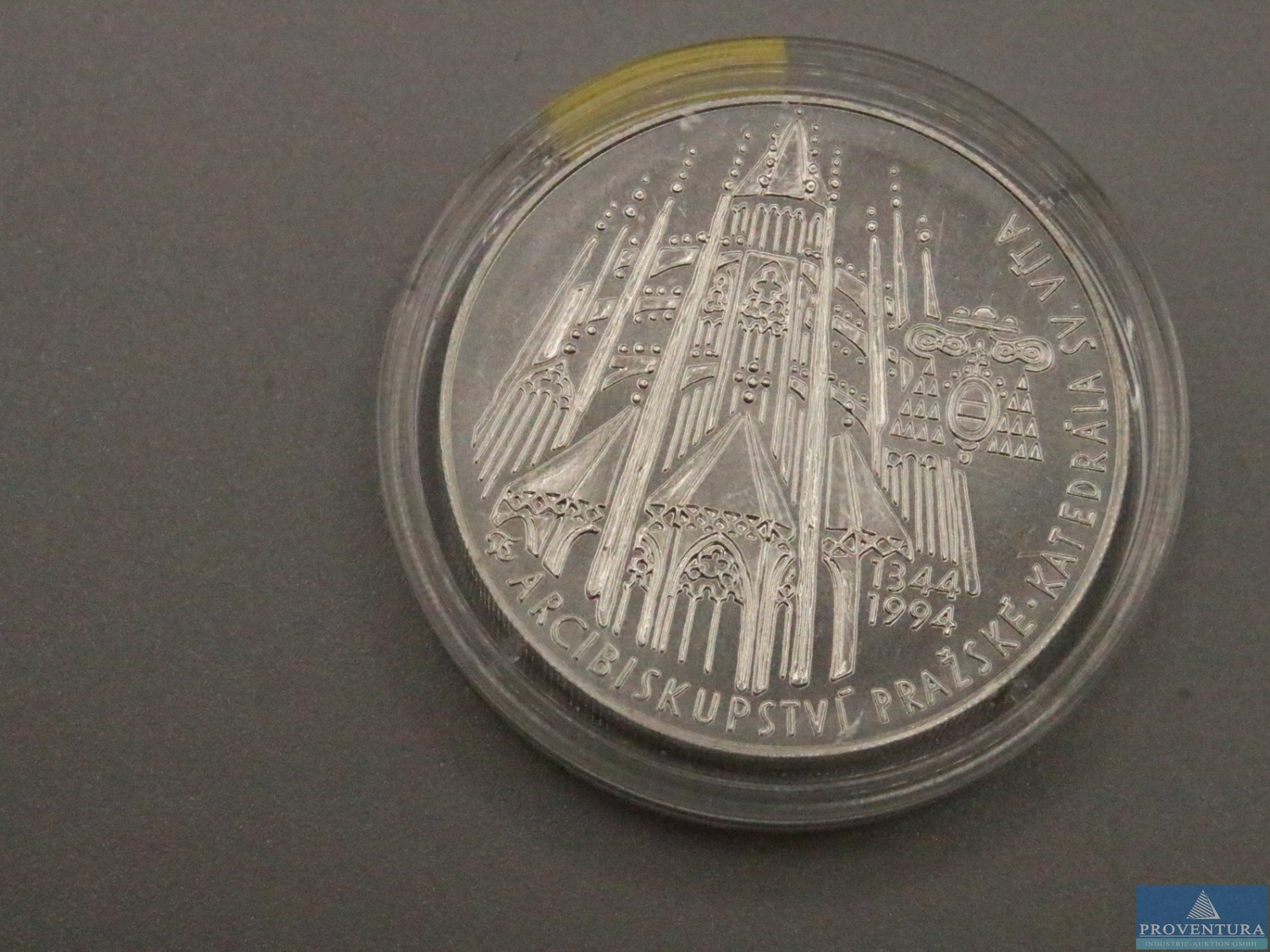 Серебряная монета Чехии номиналом 200 корон, собор Святого Вита 1994 года, пруф, серебряный .900, грубый вес 13 гр, KM11, тираж 27 500 штук, инкапсулированны
