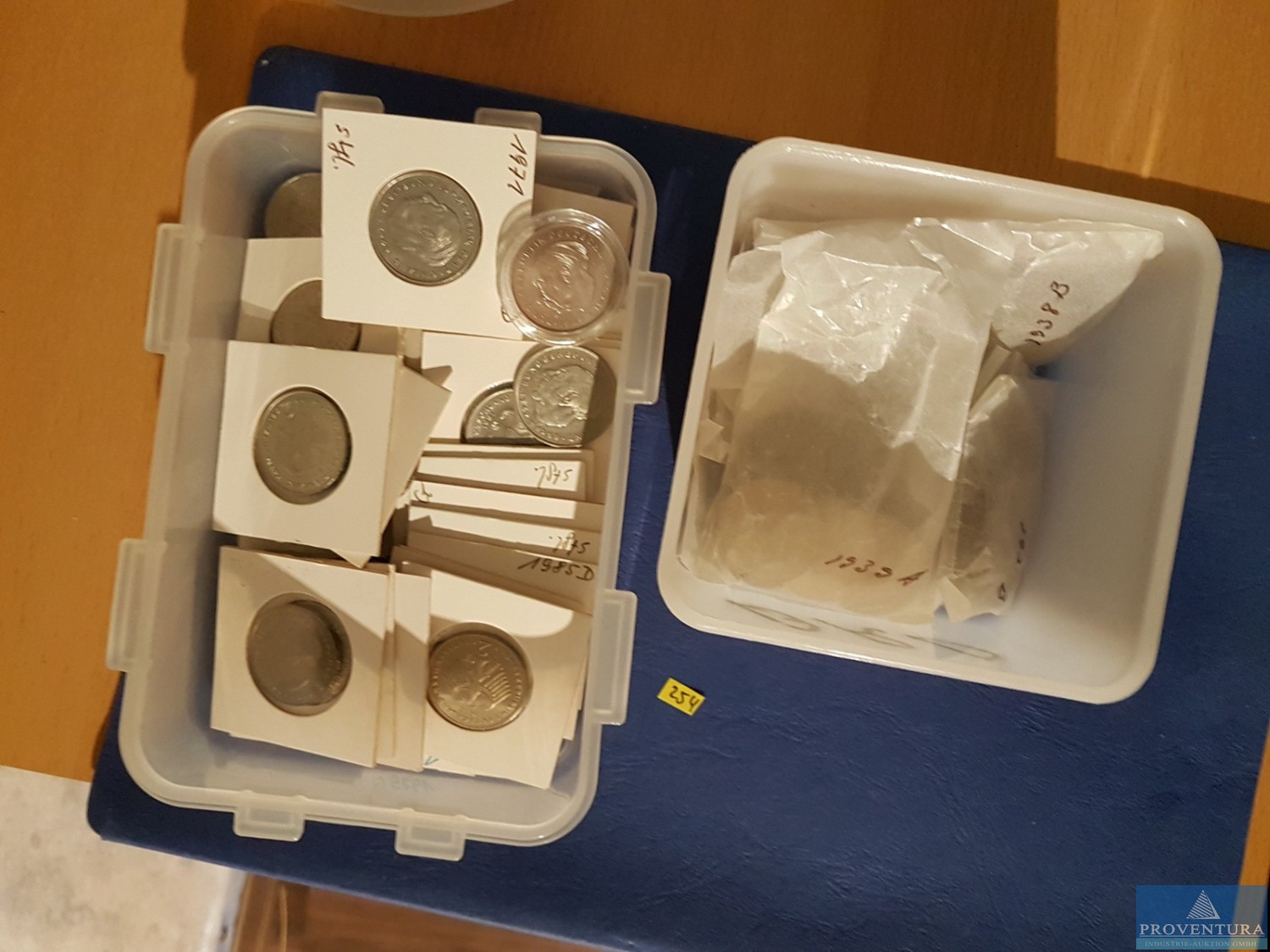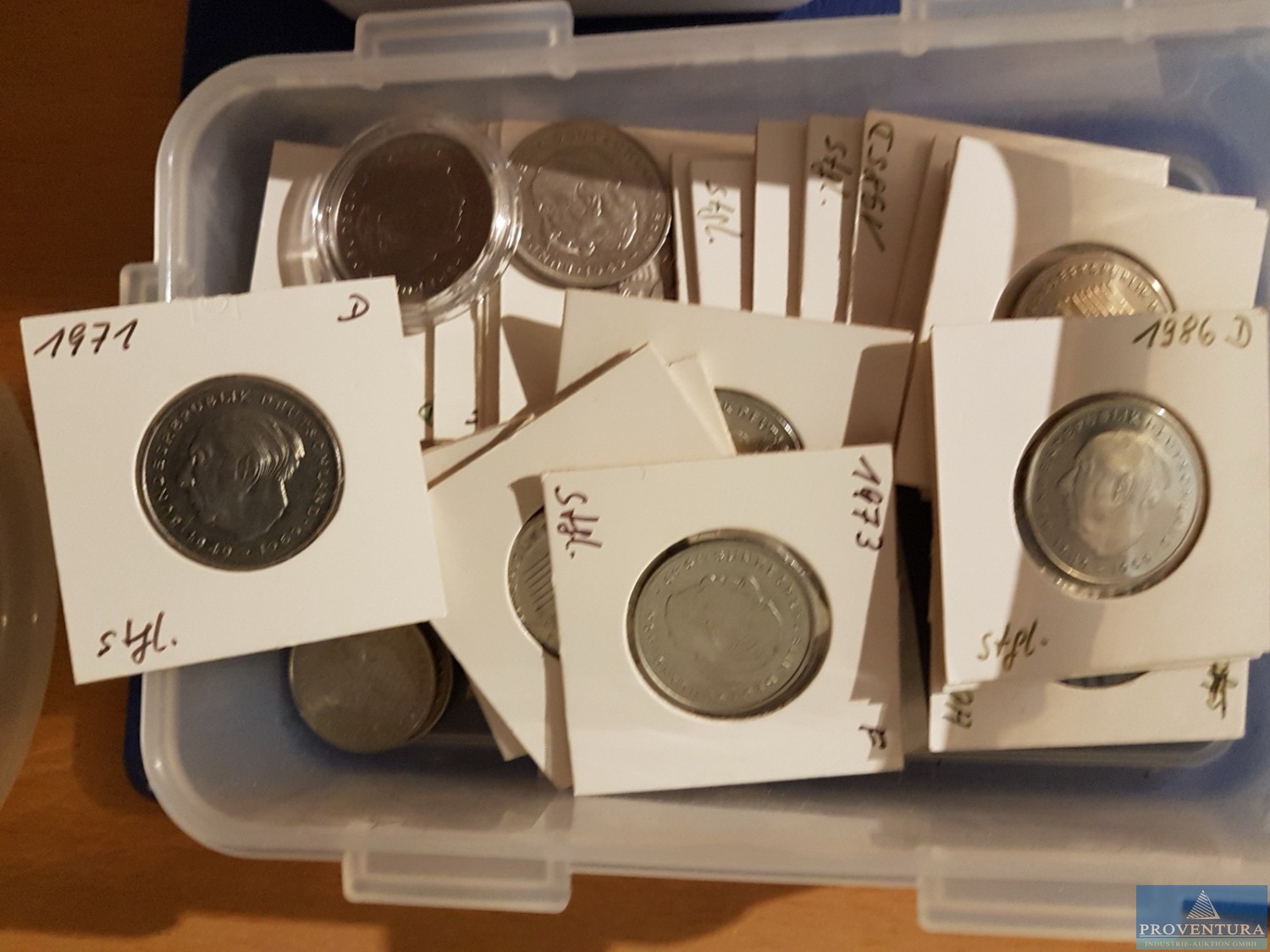 Монеты в обращении Федеративной Республики Германия 2 DM Теодор Хойс 1970–1987 годов примерно 85 штук, около 601,88 гр (7 гр/шт.), = около 85 шт., в стр. 1979DF, 1981D, 1982F, около 170 DM, в основном EF-pp, KM A127