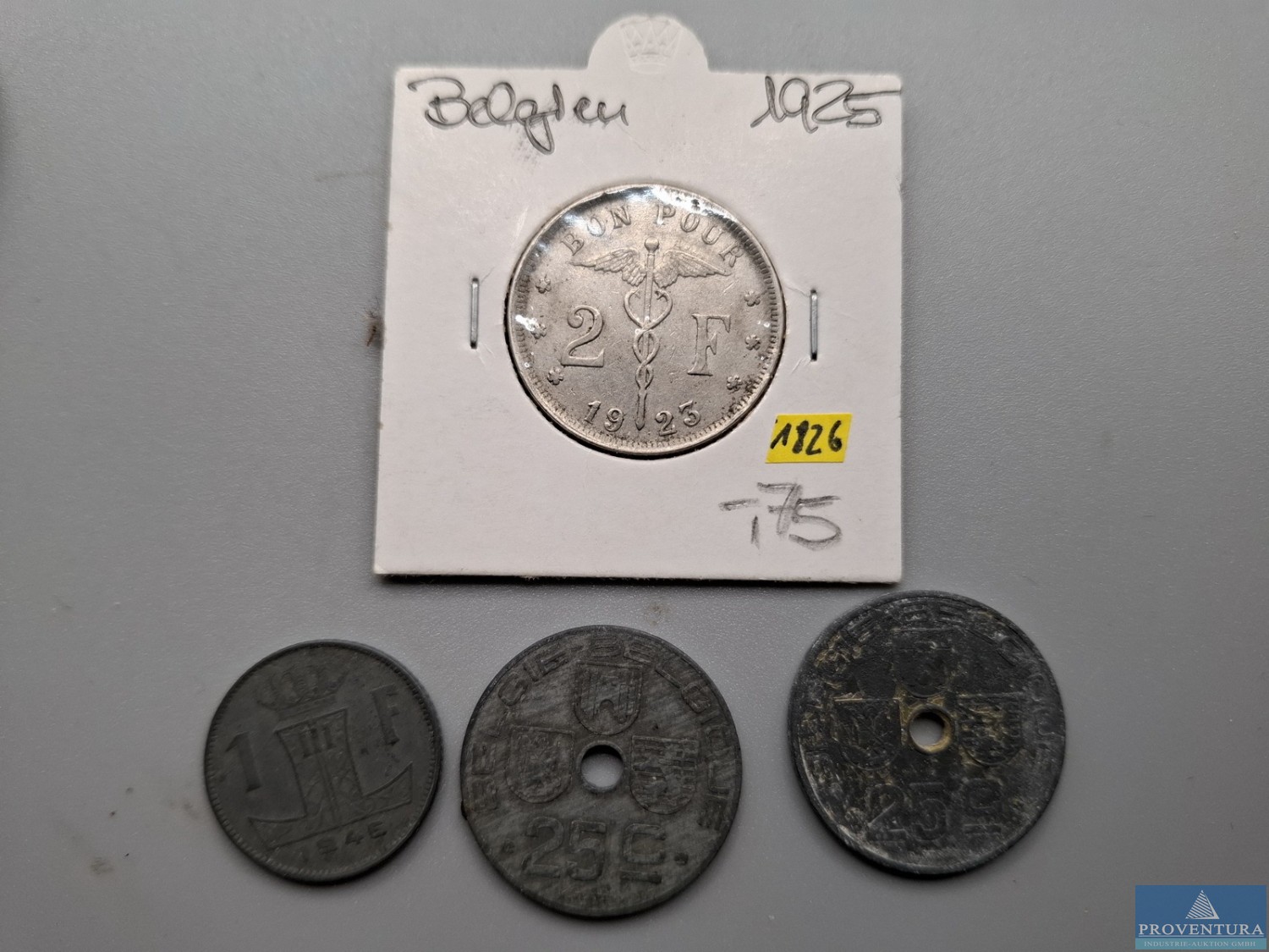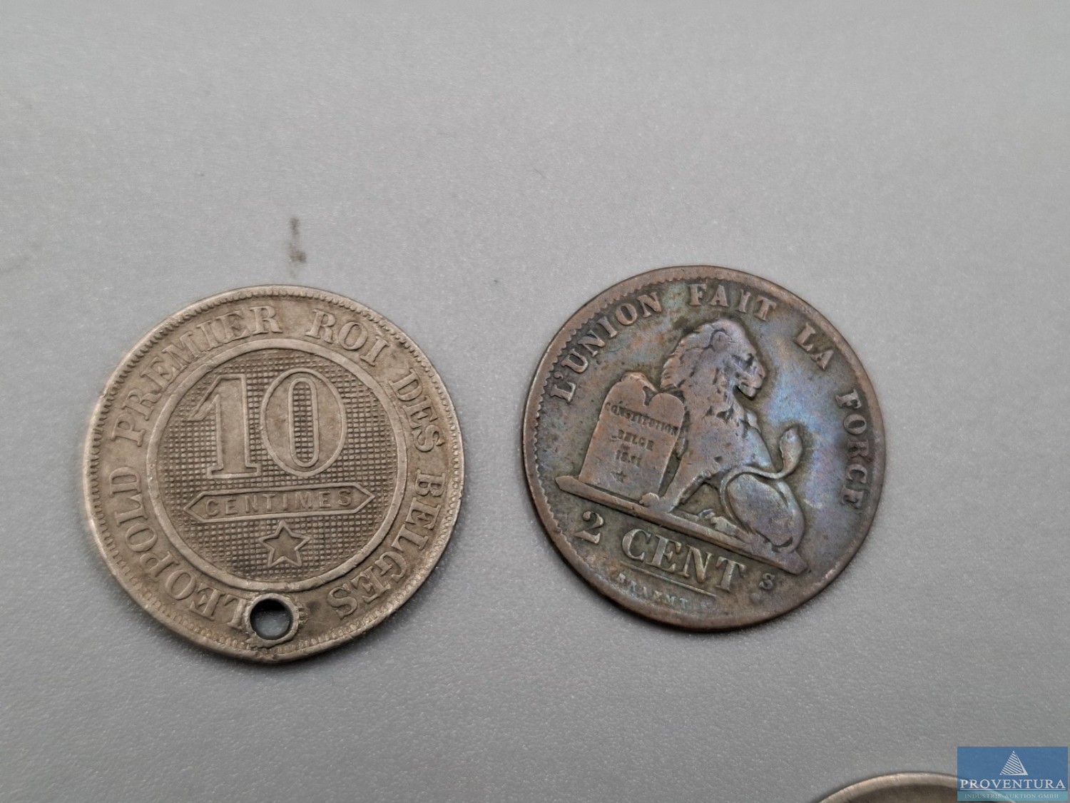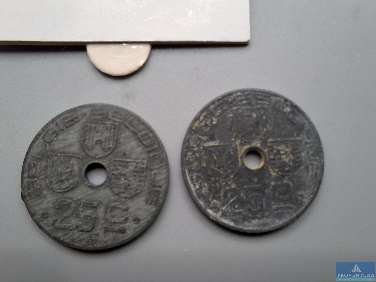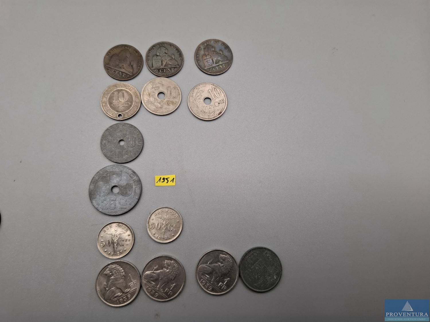 Обращение монет в Бельгии до 1945 года: 3x2 сантима 1862, 1870, 1909, 10 сантимов 1864, 10 сантимов 1904, 1920, 1942, 25 сантимов 1944, 50 сантимов 1923, 1927, 1 франк 3x 1939, 1942, всего 13 моне