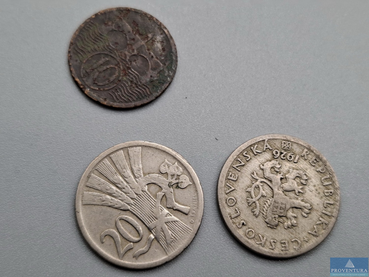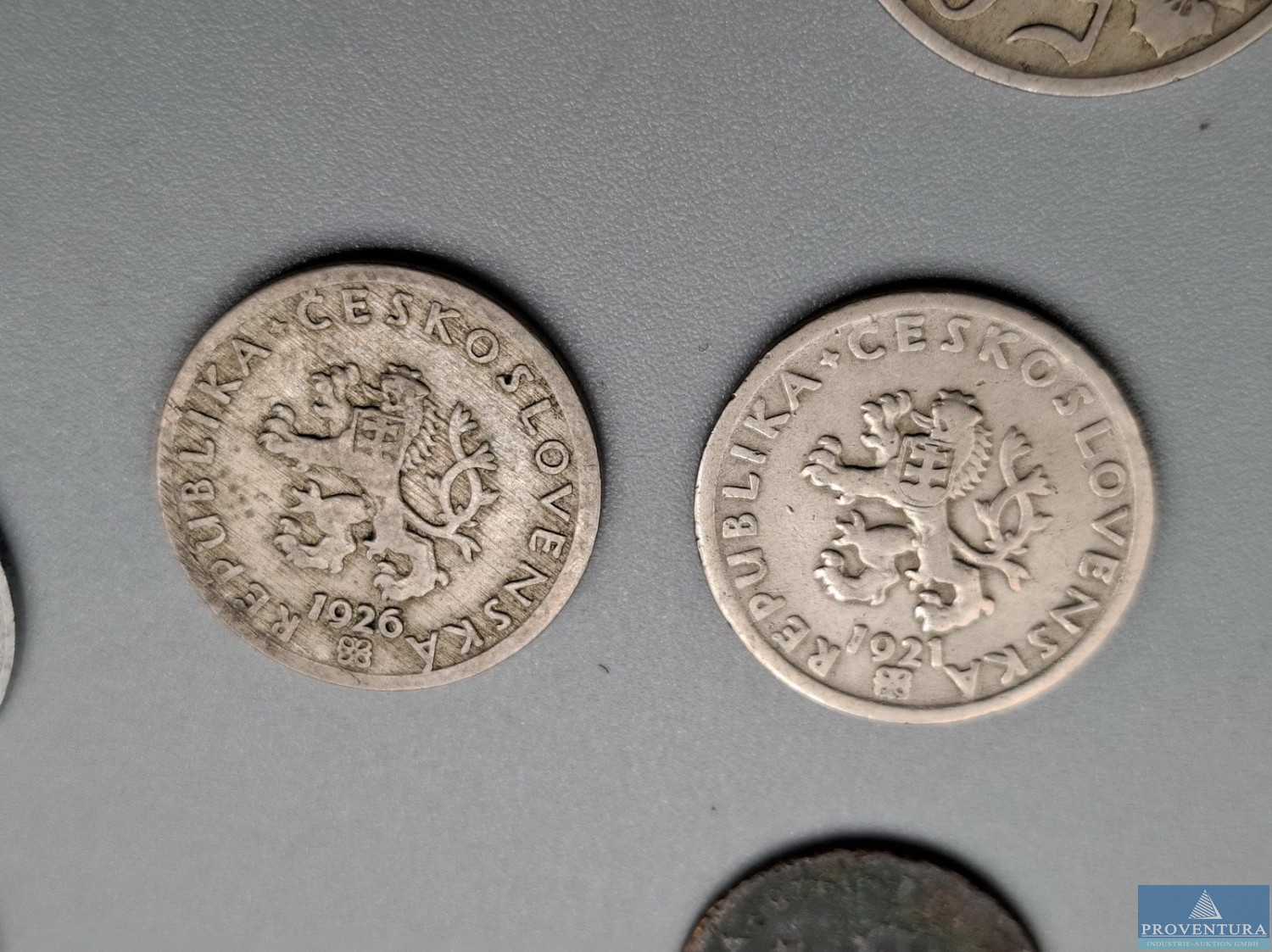 Обращение монет Чехословакии с 1921 года номиналом 10 H - 1 корона, с 1950 года — 20 моне