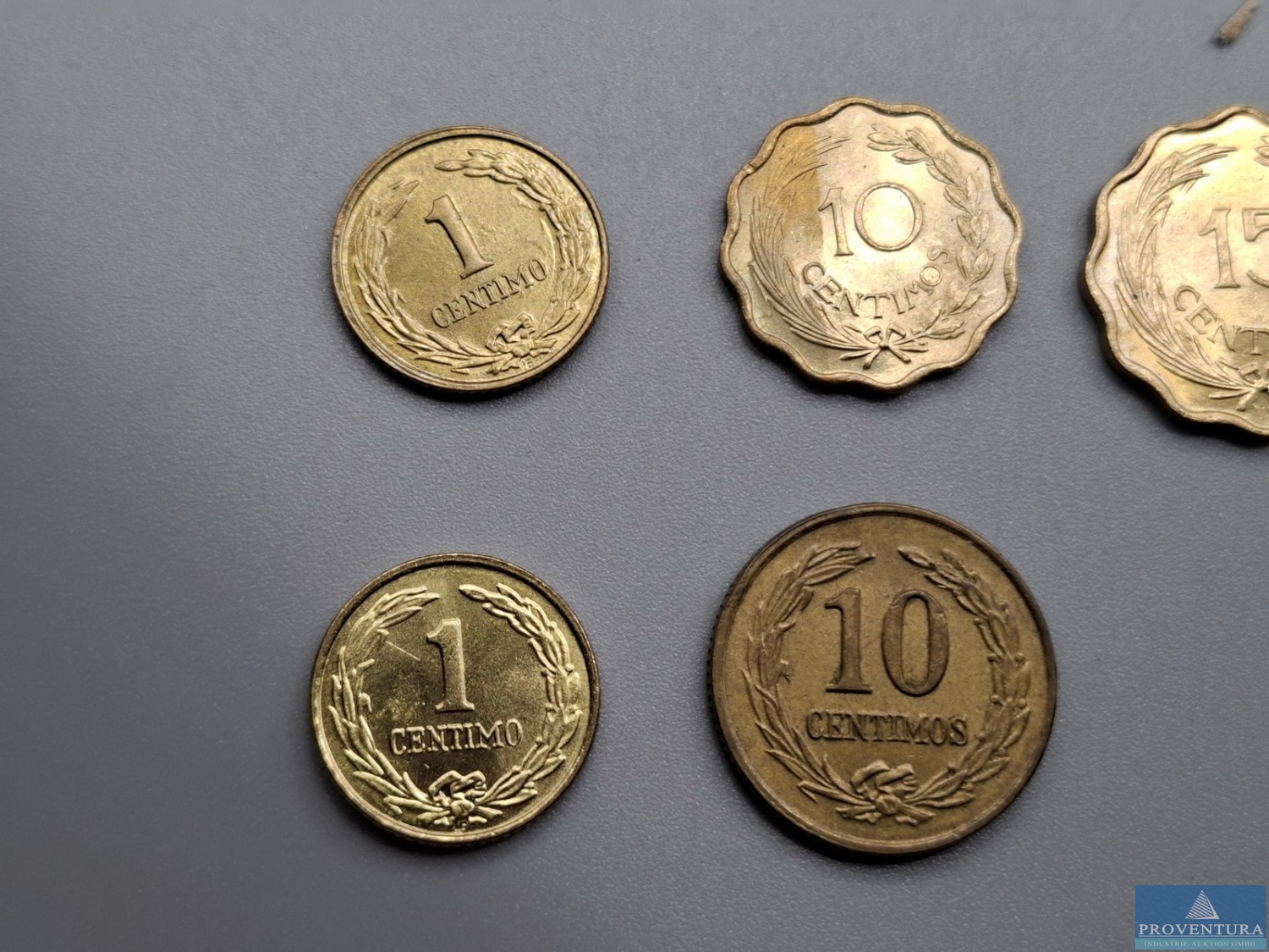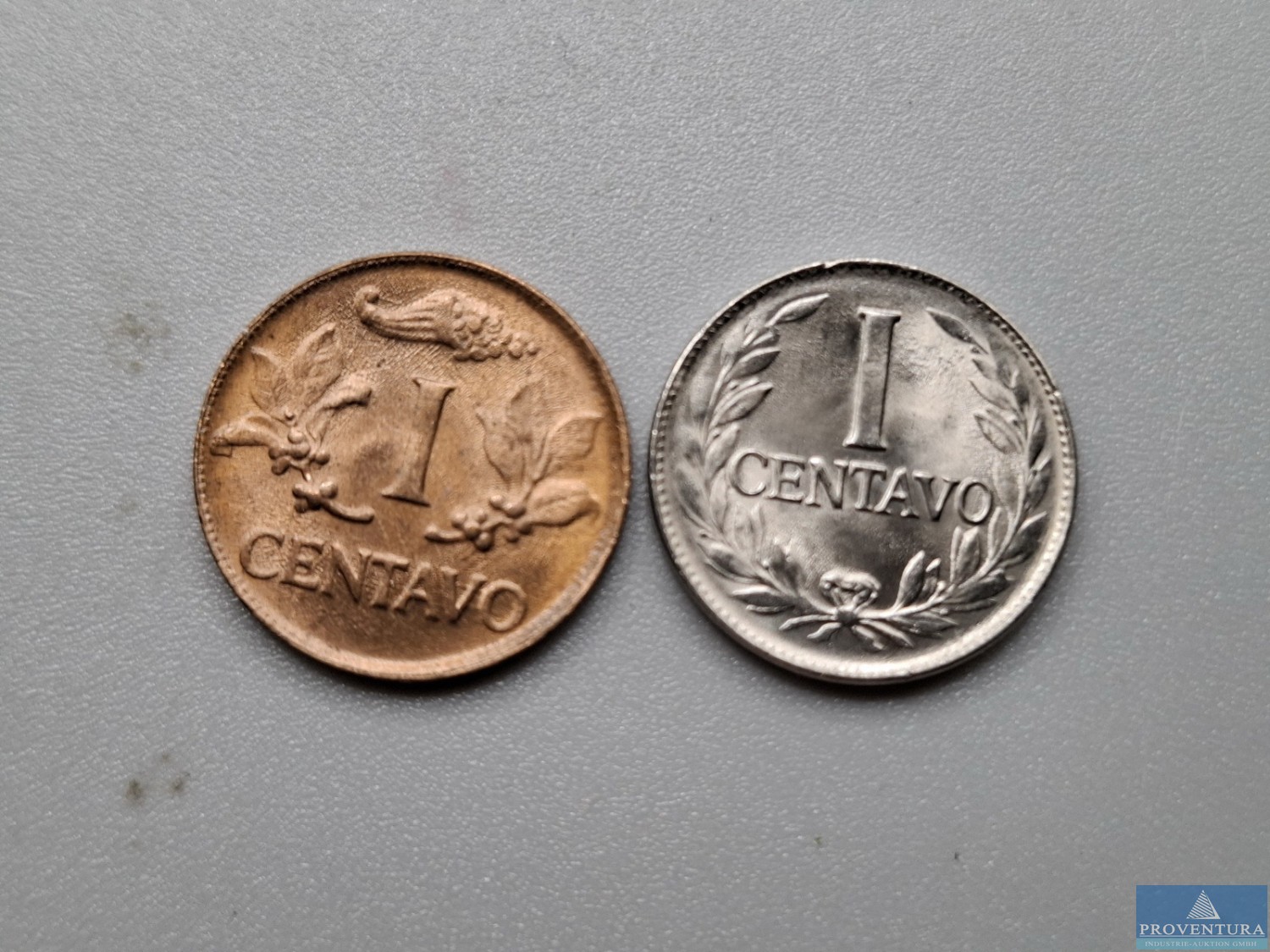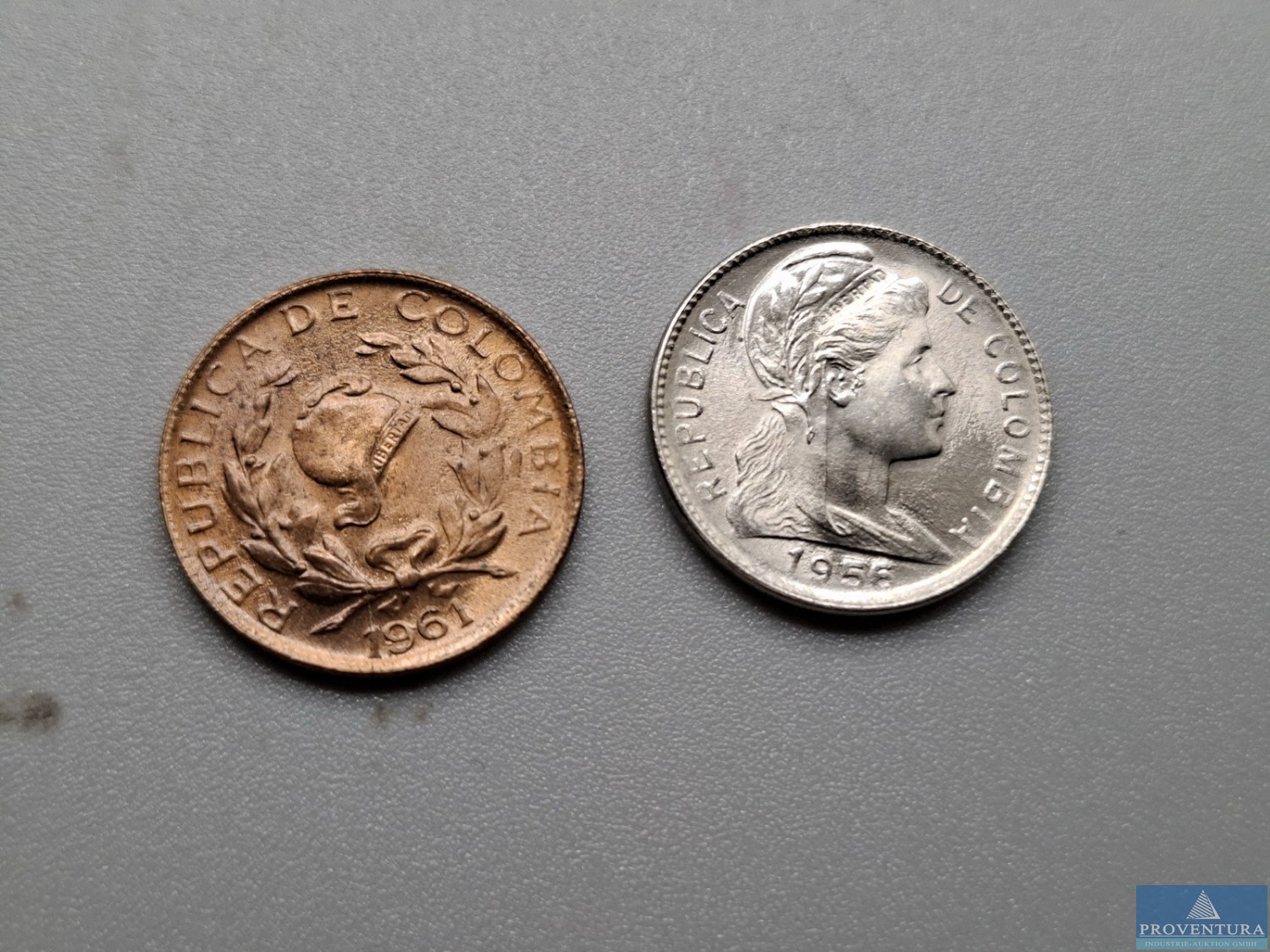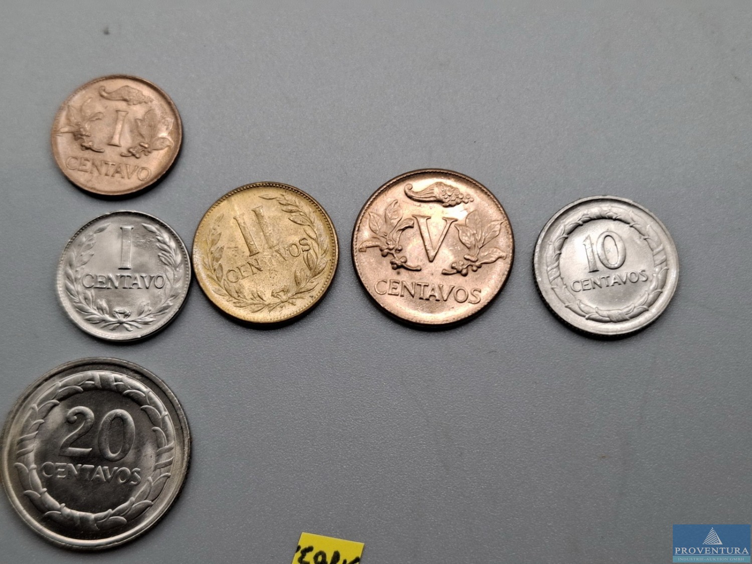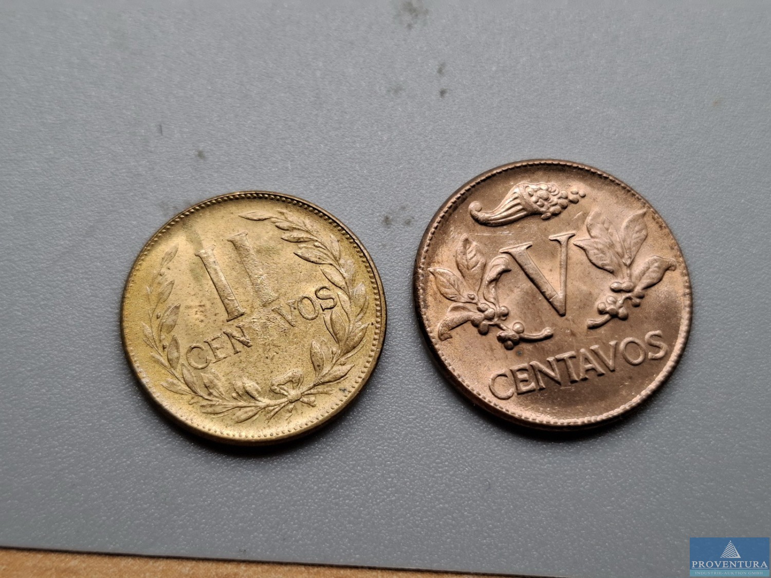 Монеты в обращении в Колумбии с 1956 года: 1x 20 сентаво, 1x 10 сентаво, 1x V сентаво, 1x II сентаво, 2x I сентав