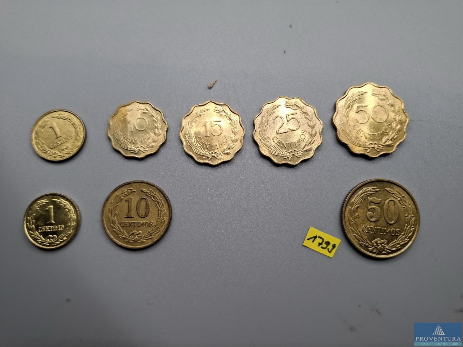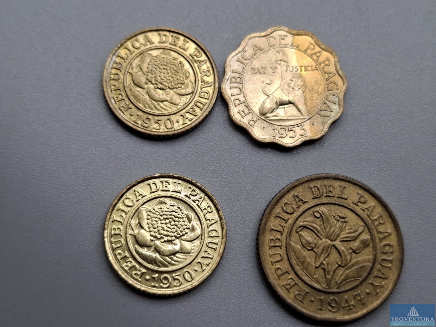 Обращение монет Парагвай 1950/1953 годов номиналом 1-50 центимо, всего 8 штук.