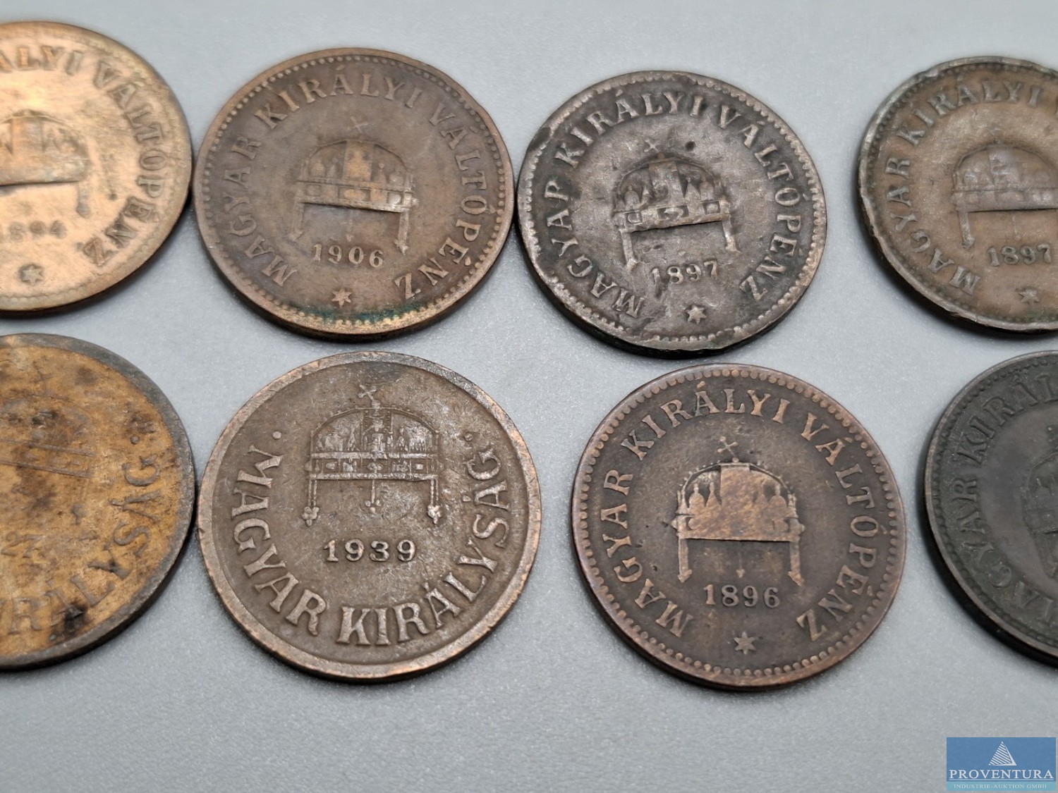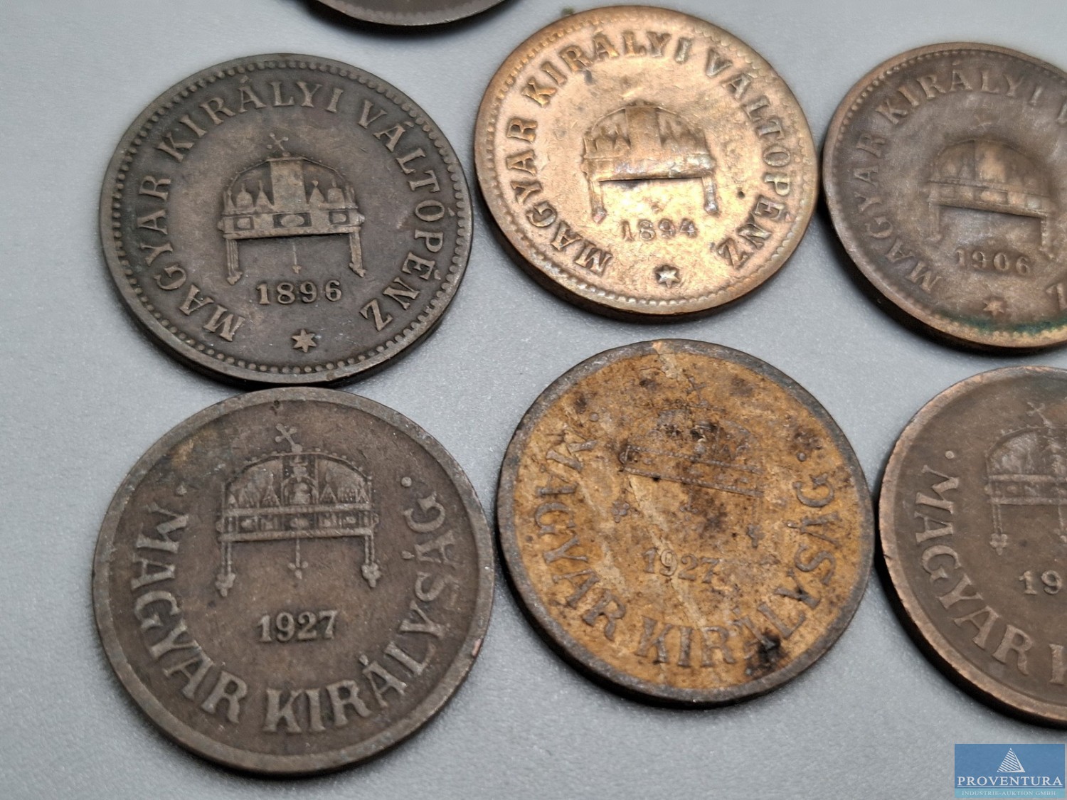Оборот: венгерская крона 1x6, крайццар 1849, 1x4 кройцера 1868, 13x2 наполнителя, 8x10 наполнителей, 3x20 наполнителей, всего примерно 24 штуки.