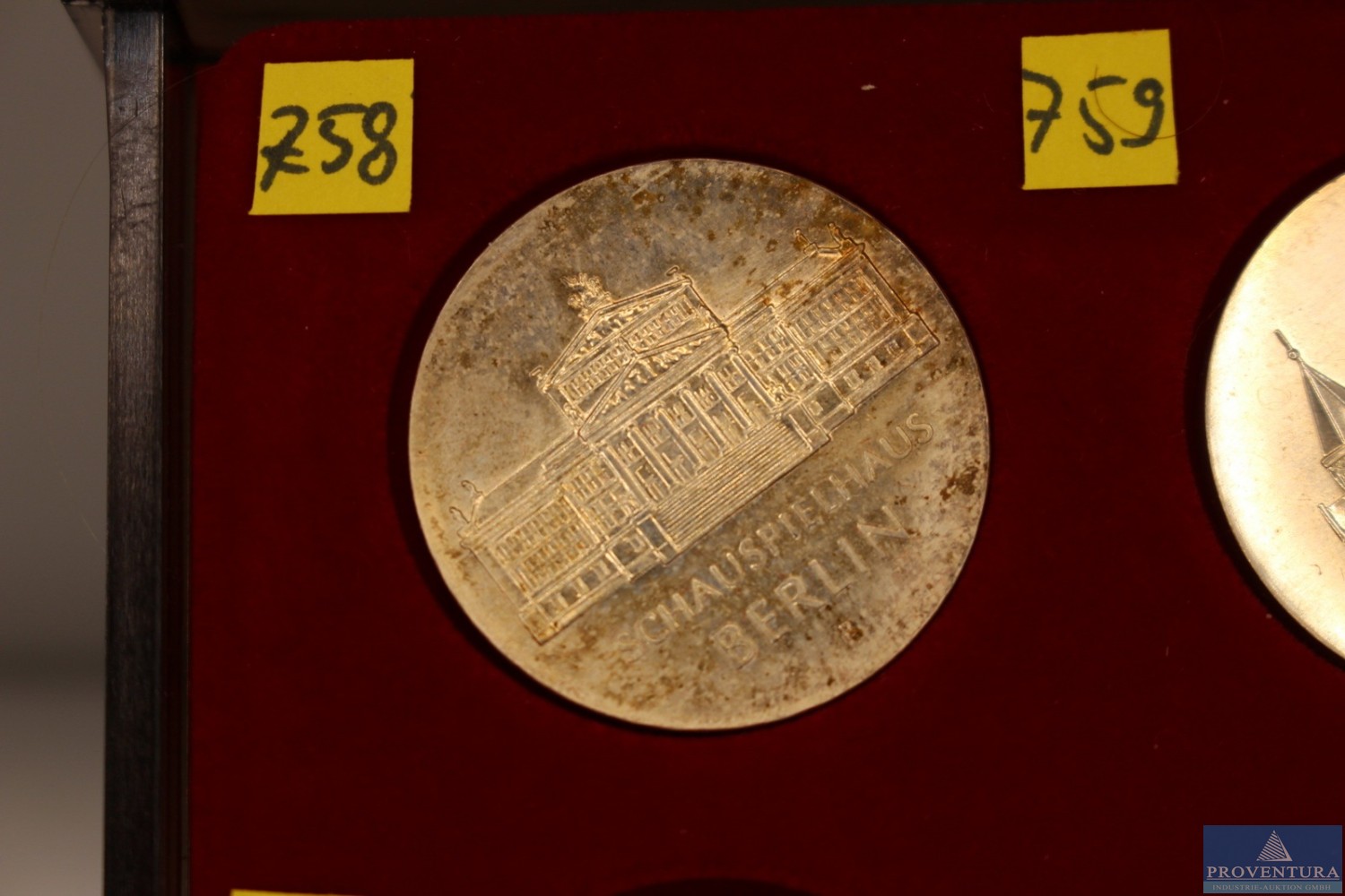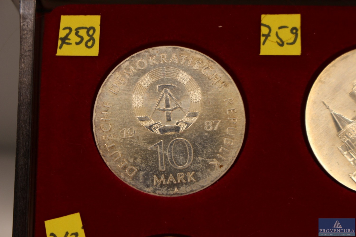 Серебряная монета ГДР 10 Mark Schauspielhaus Berlin 1987, серебряная .500 17 гр, UNC, потускнела, KM118