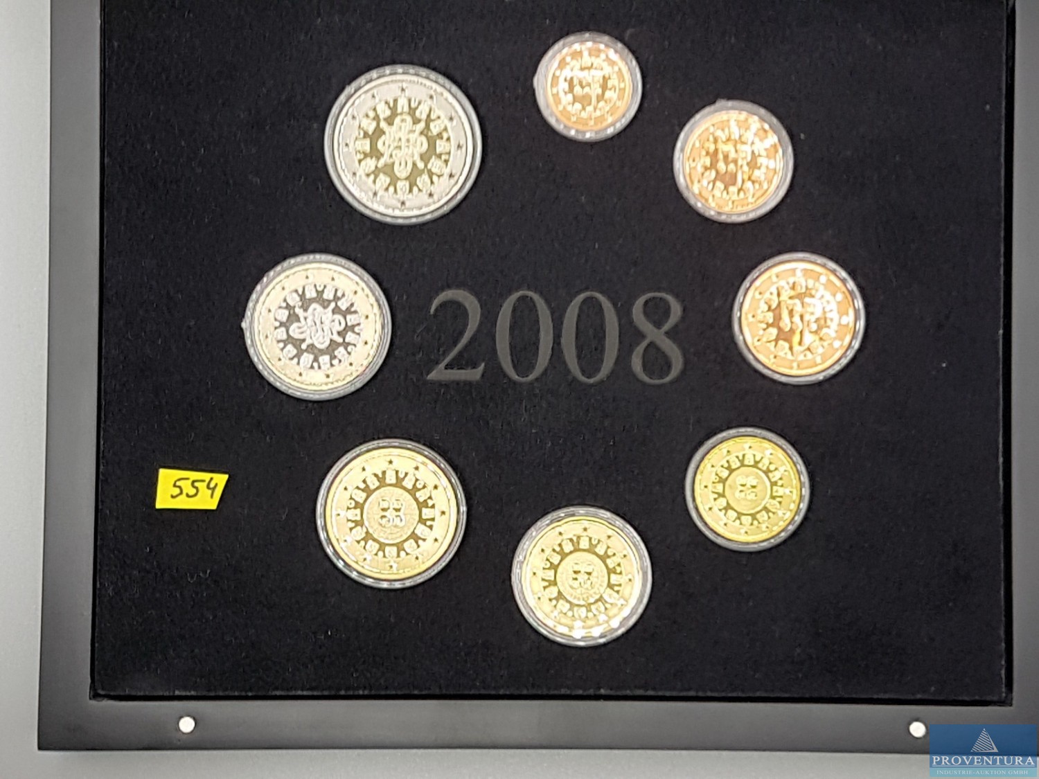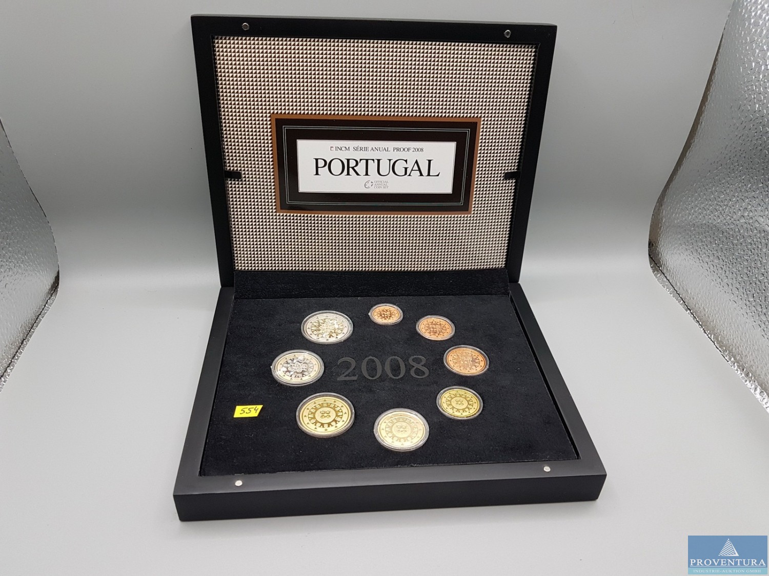 Евро-набор монет Португалия 2008 1 карат-2 евро пруф, деревянная коробк