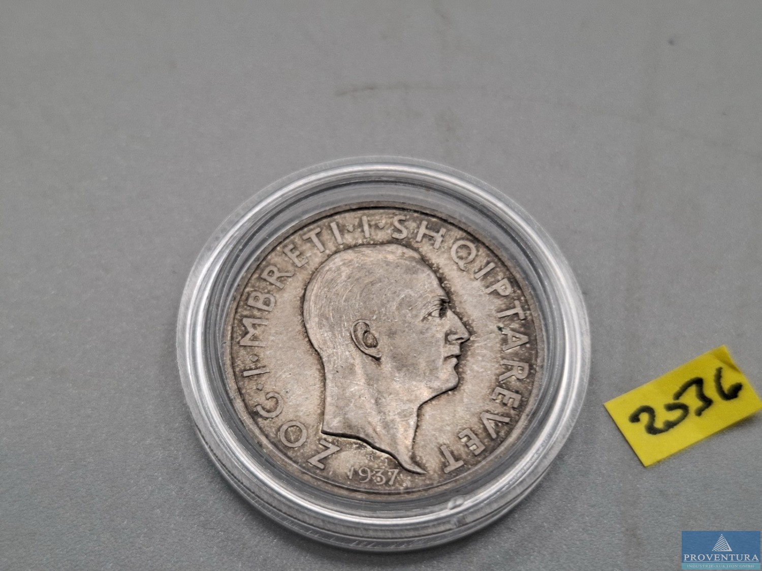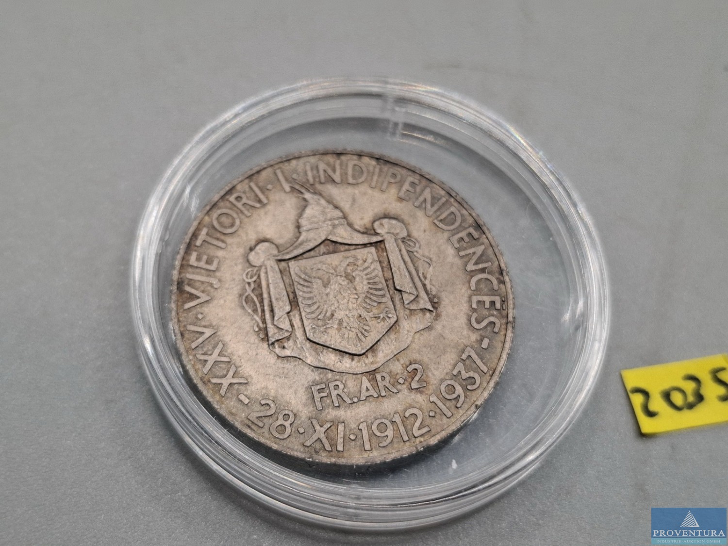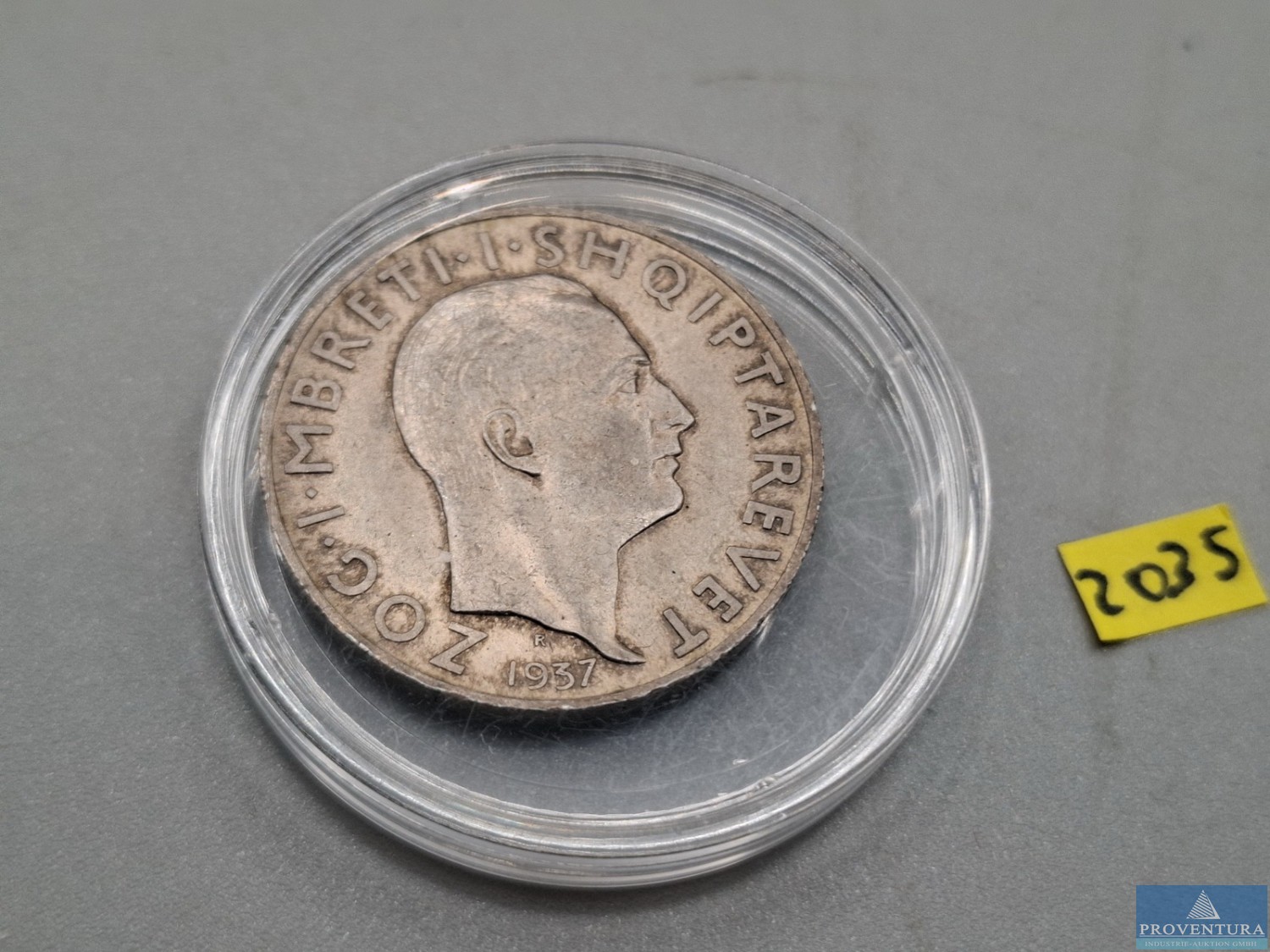 Серебряная монета Albania 2 Franga 1937 VF Silver .835 Roughweight 10 gr KM19