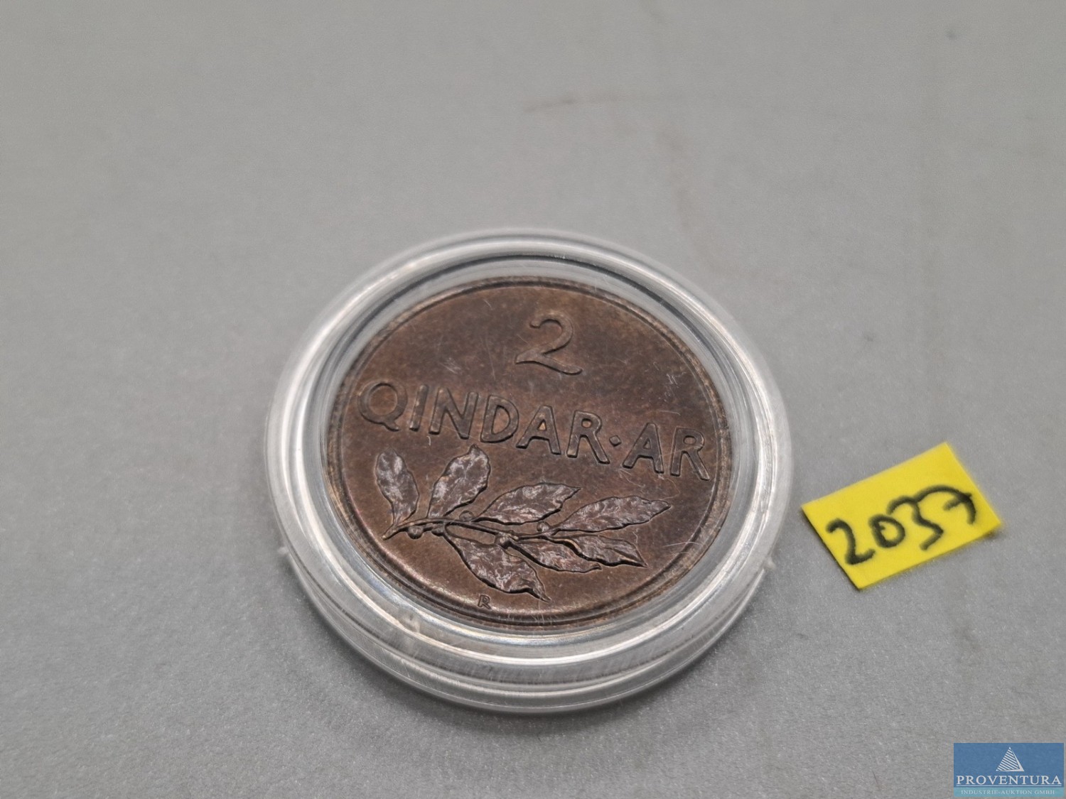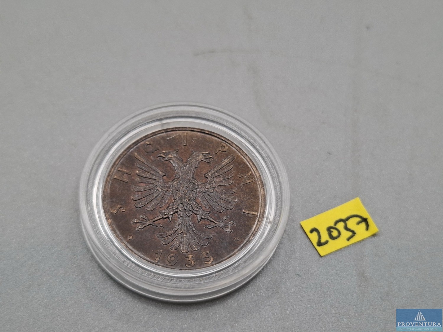 Обращение монет Албания 2 Qindar Ari 1935 EF+ KM15