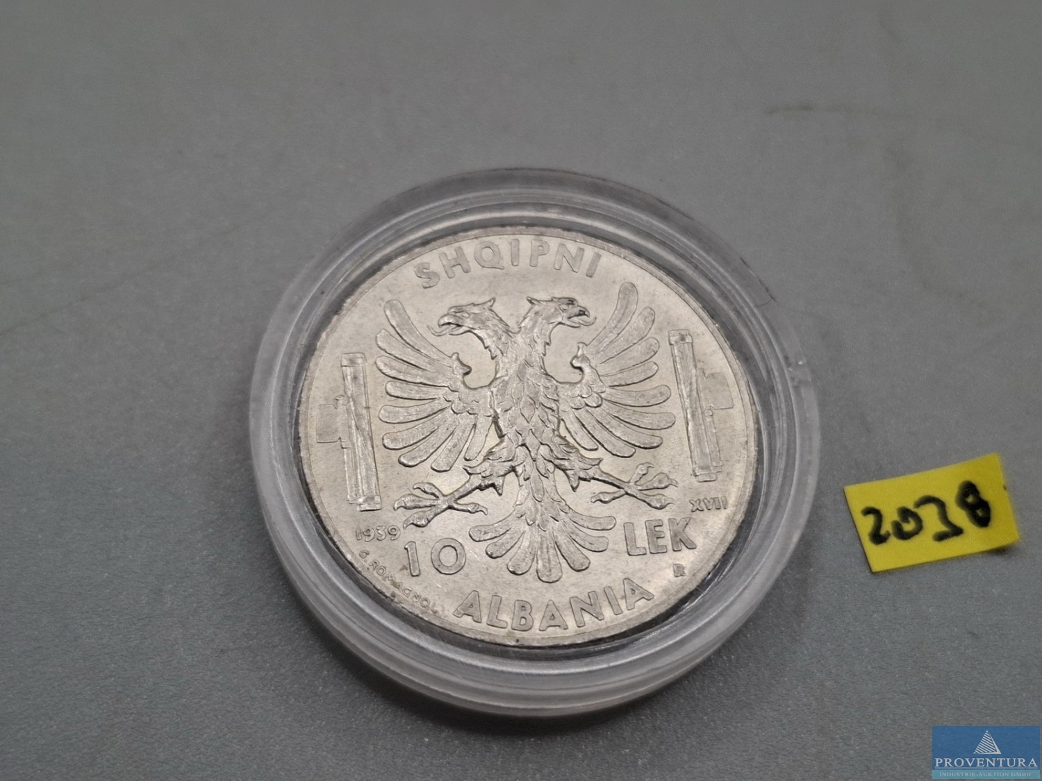 Серебряная монета Албания 10 лек 1939 EF+ серебряная .835 грубый вес 10 гр KM18
