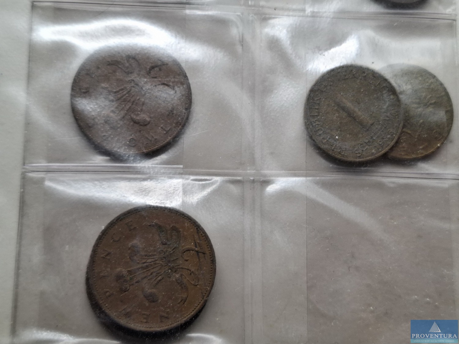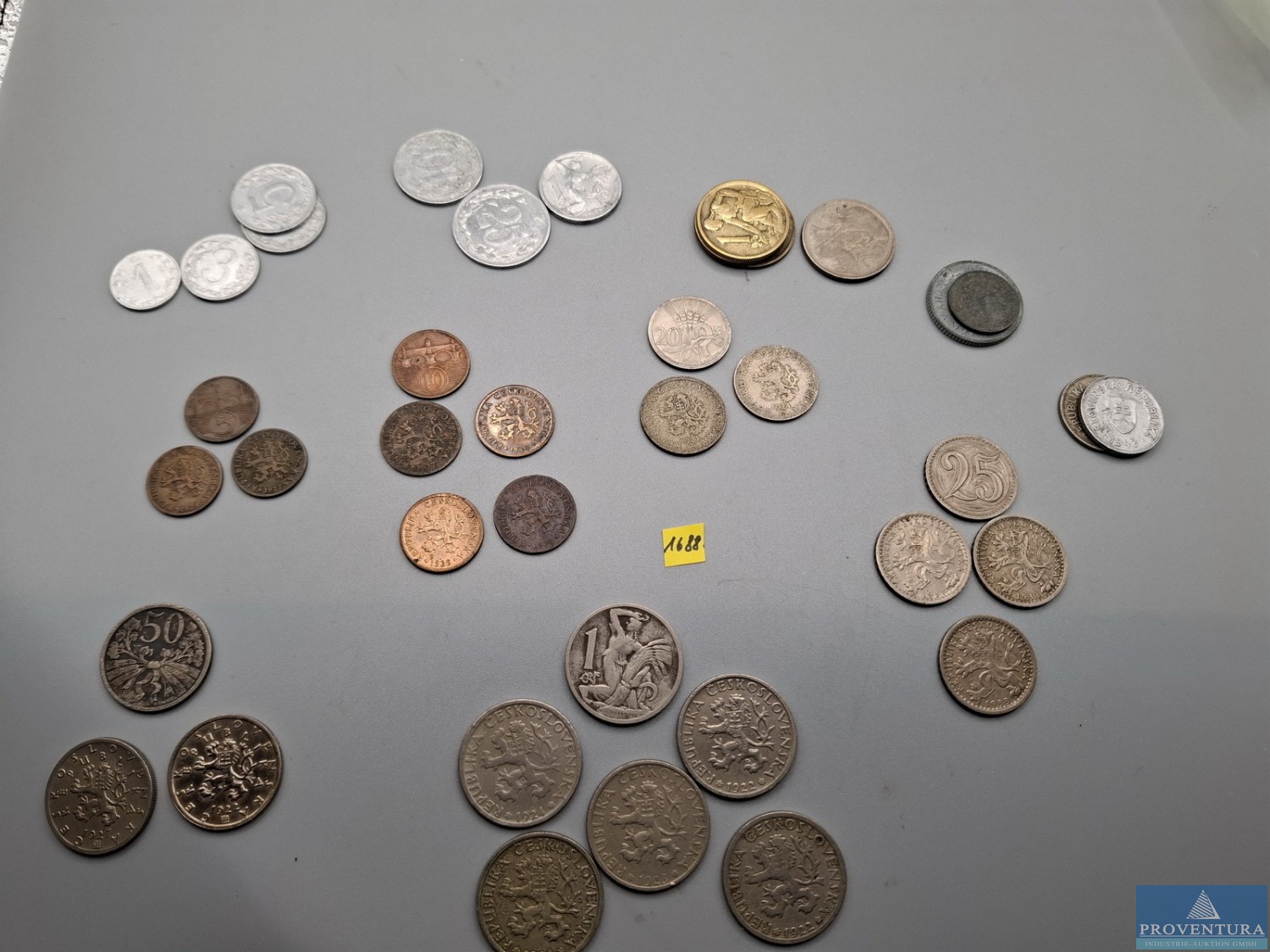 Оборотные монеты: Чехословакия с 1921 года: 3x5 Хеллер 1927-1938, 5x 10 Хеллер 1927-1938, 3x 20 Хеллер 1921-1924, 4x 25 Хеллер 1933, 3x 50 Хеллер 1922-1927, 6x1 крона 1922-1924, 1 H - 1 крона 1953, 3x 1 крона 1957-1959, 1x2 кроны 1948, Богемия и Моравия и Чехия-Морава 1 крона 1933, 10 Хеллер, Словакия 2x50 Хеллер 1941 1943, всего примерно 38 экземпляро