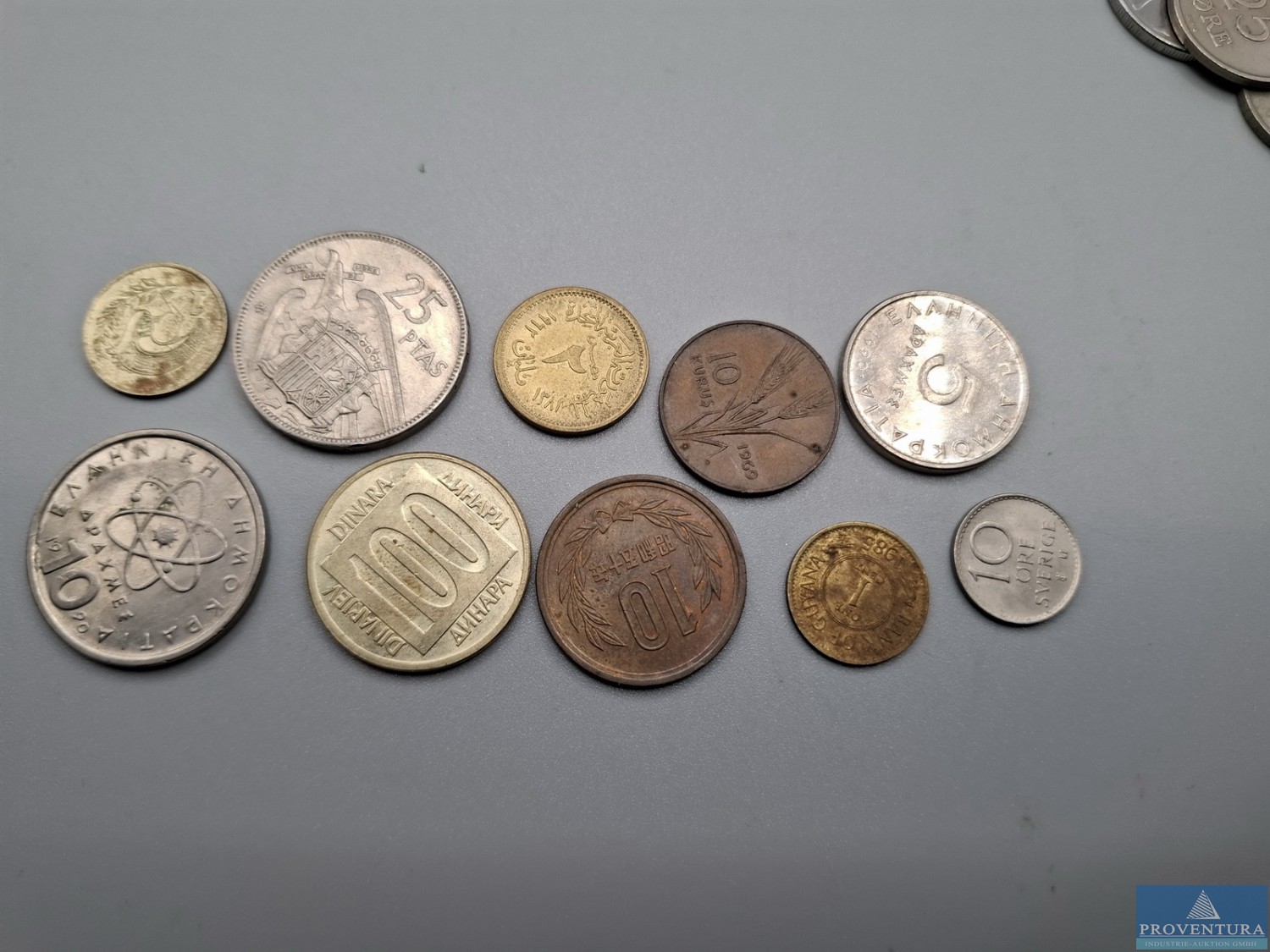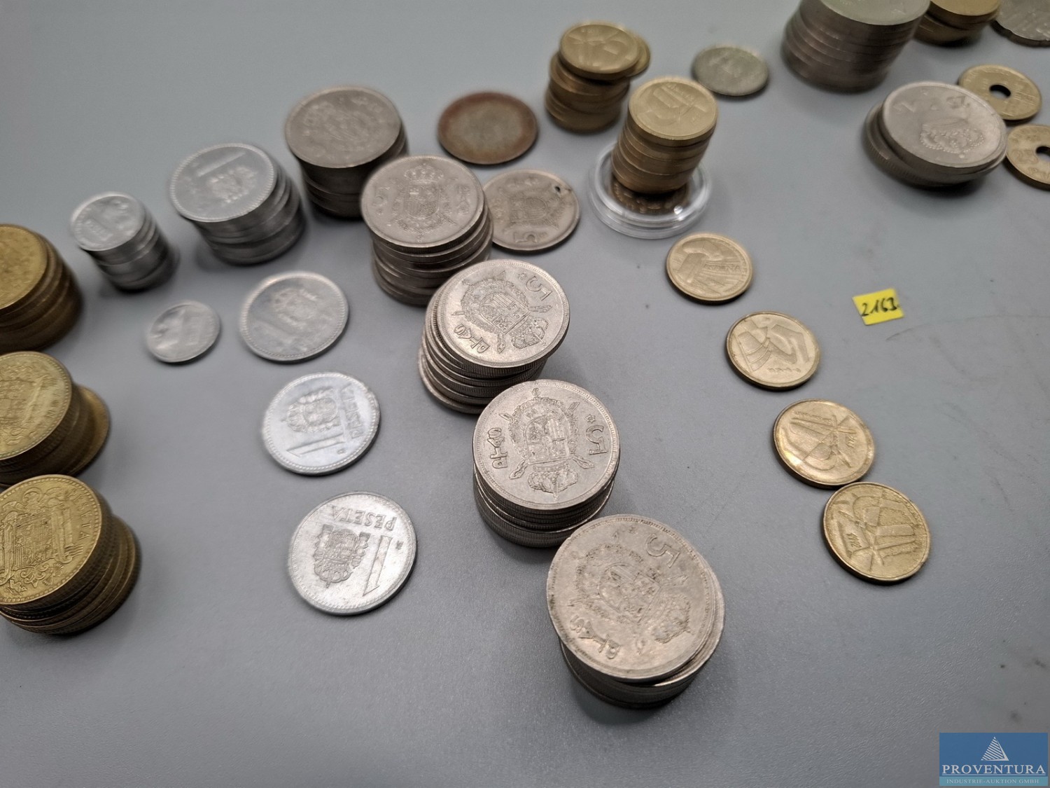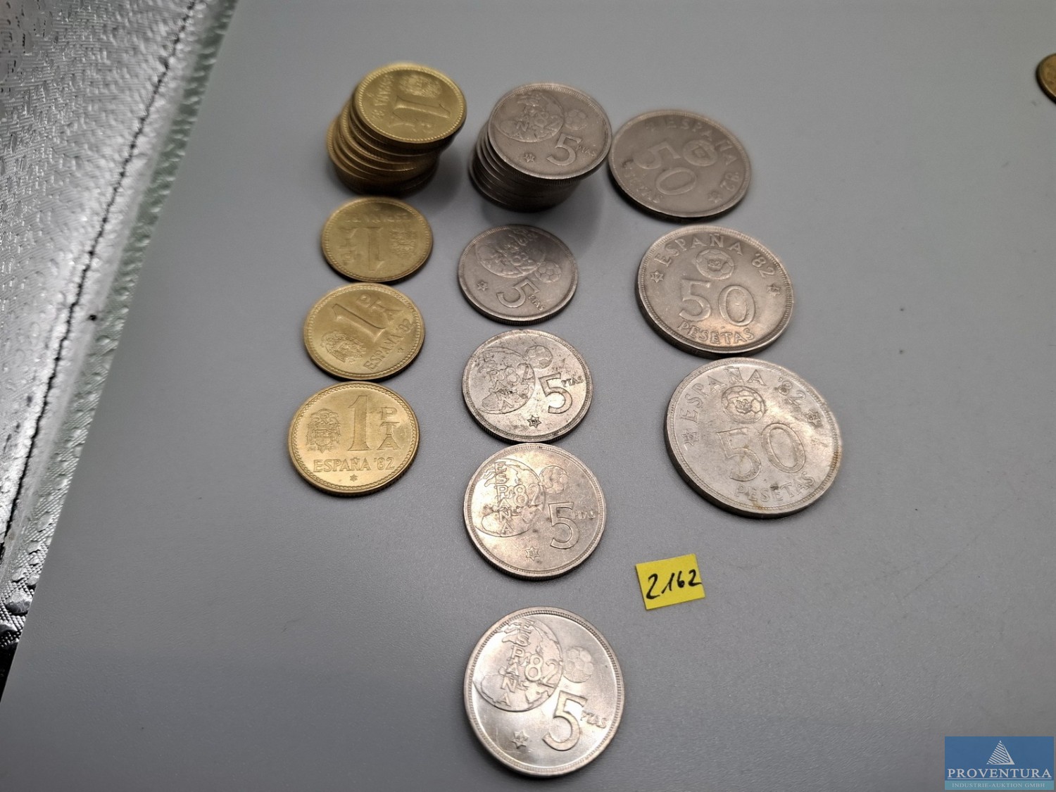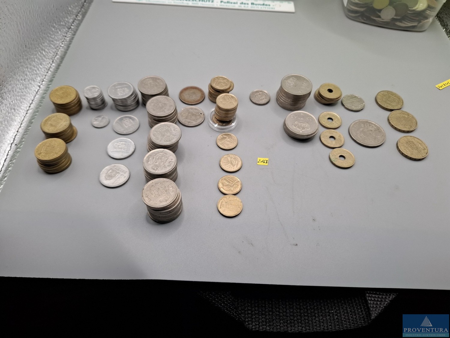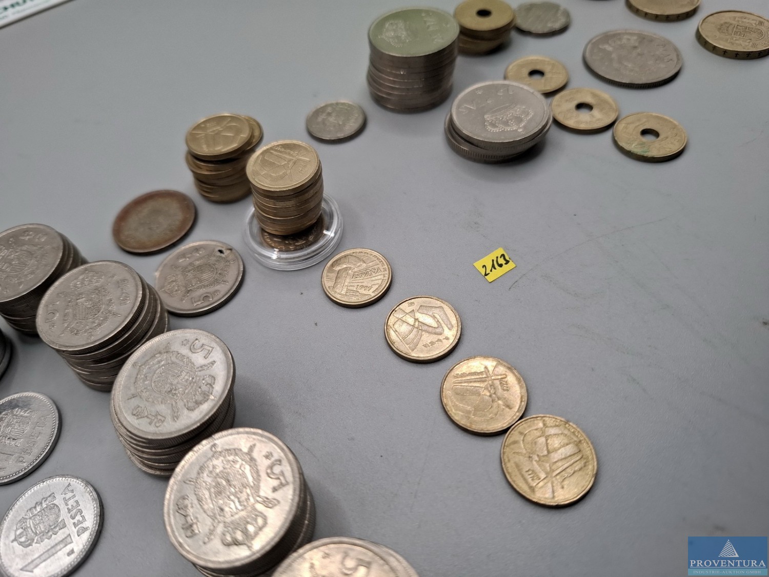 Обращение монет: Испания: Хуан Карлос с 1975 года — 39x 1 песета, 76x 5 песет, 1x 10 песет, 23x 25 песет, 2x 50 песет, 3x 100 песет, PTA 1 404,-, всего около 144 моне