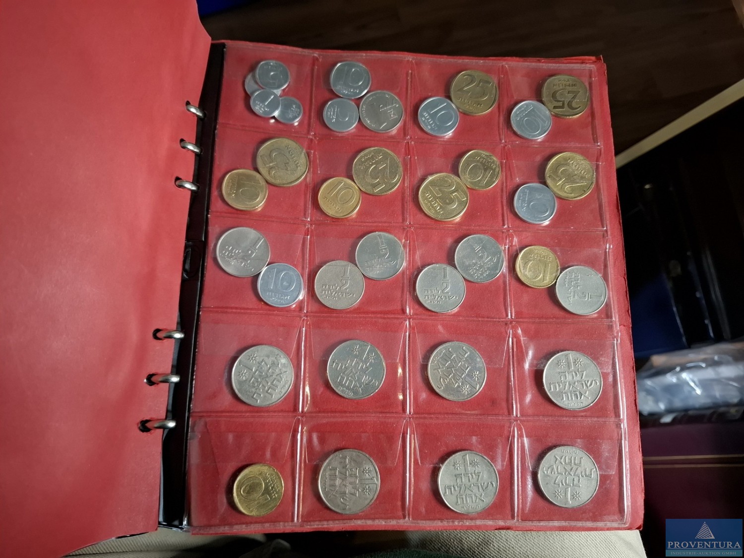 Обращение монет: 136x Израиль 1948 года, 1x Палестина, 1x Афганистан, 17x Египет, 16x Исландия 4x Багамы, 5x Османская империя, 3x Сирия, 69x Тунис, 6x Алжир, 31x Марокко, 3x Пакистан, Катар и Дубай, 12x Ливан, Маскат и Оман, 10x Ирак, примерно 372 монеты, альбом.