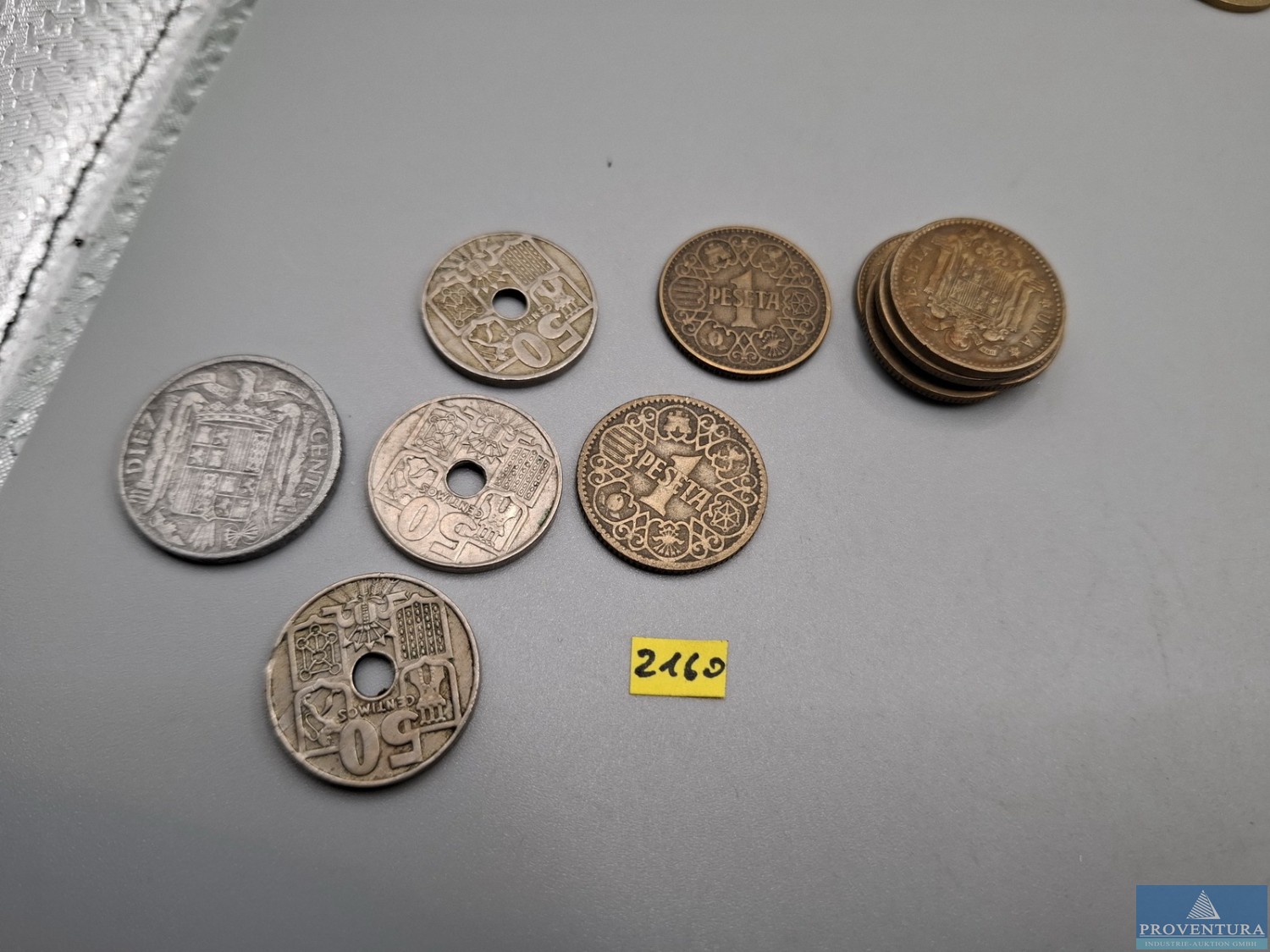Обращение: Испания 1944-1957, 10 сентимос 1945, 3x 50 сентимос 1949, 2x1 песета 1944, 5x1 песета, всего около 11 моне