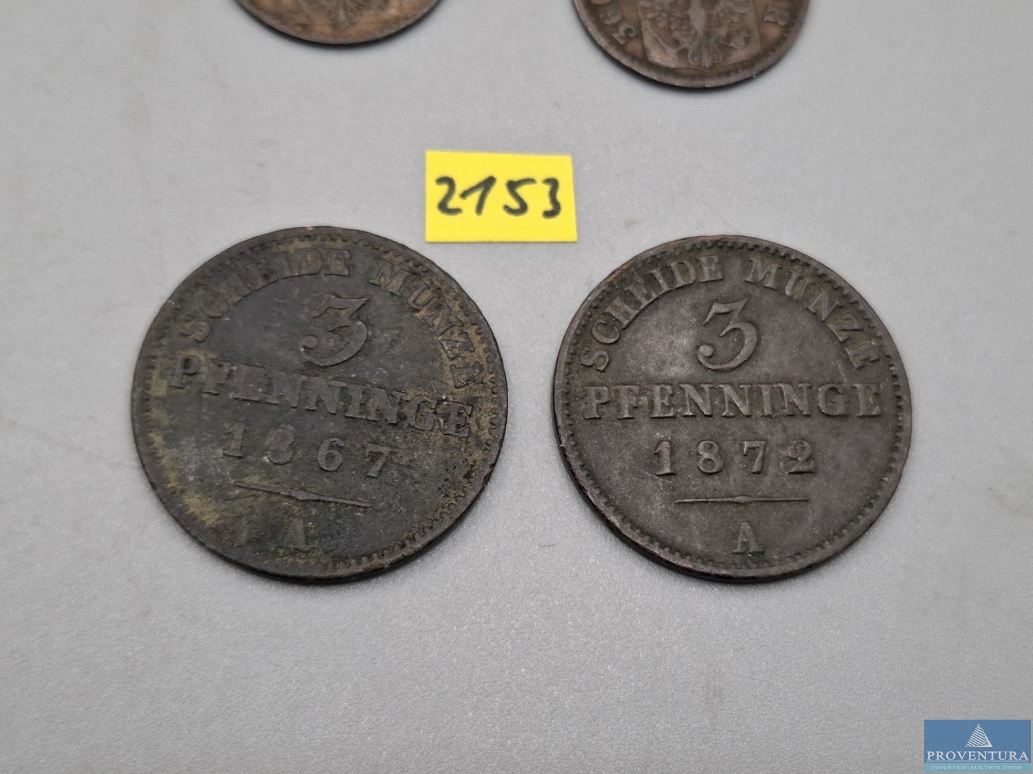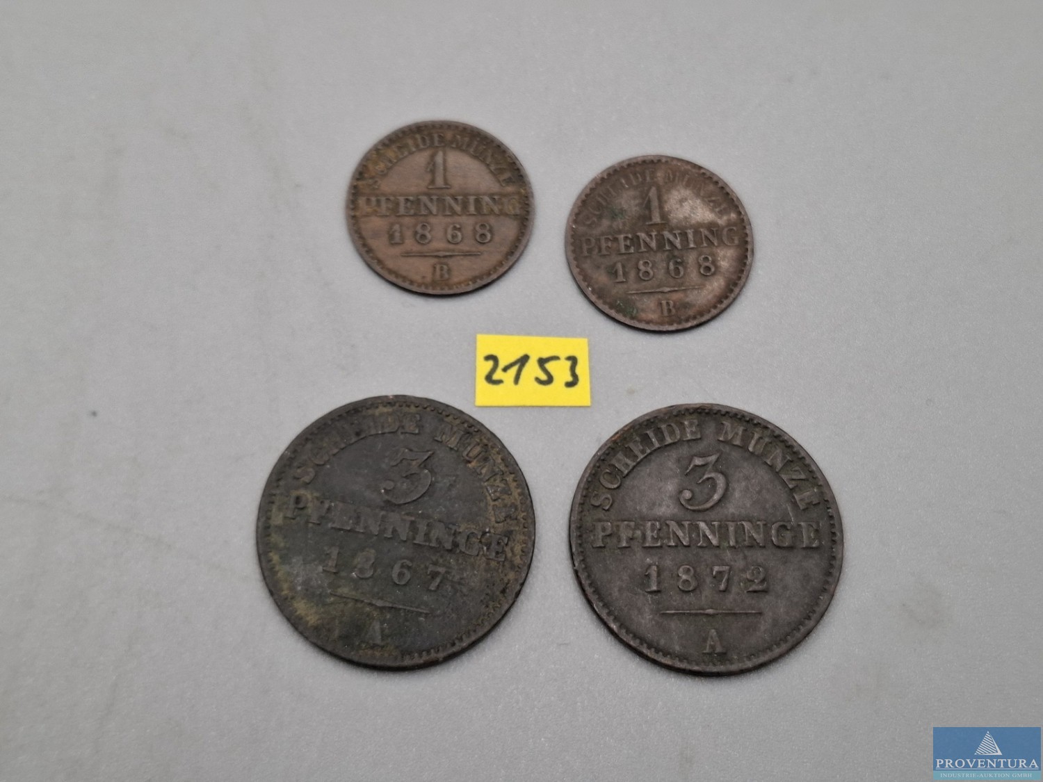 Оборот монет Пруссия 2x1 Пфенниг 1868 B, 3 Пфеннинге 1867A 1872A, всего 4 монет