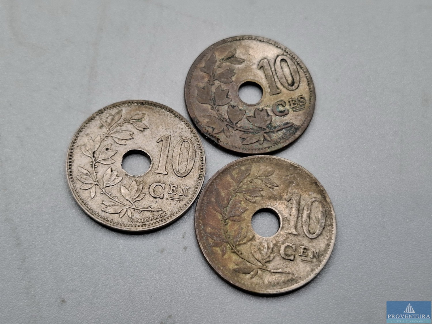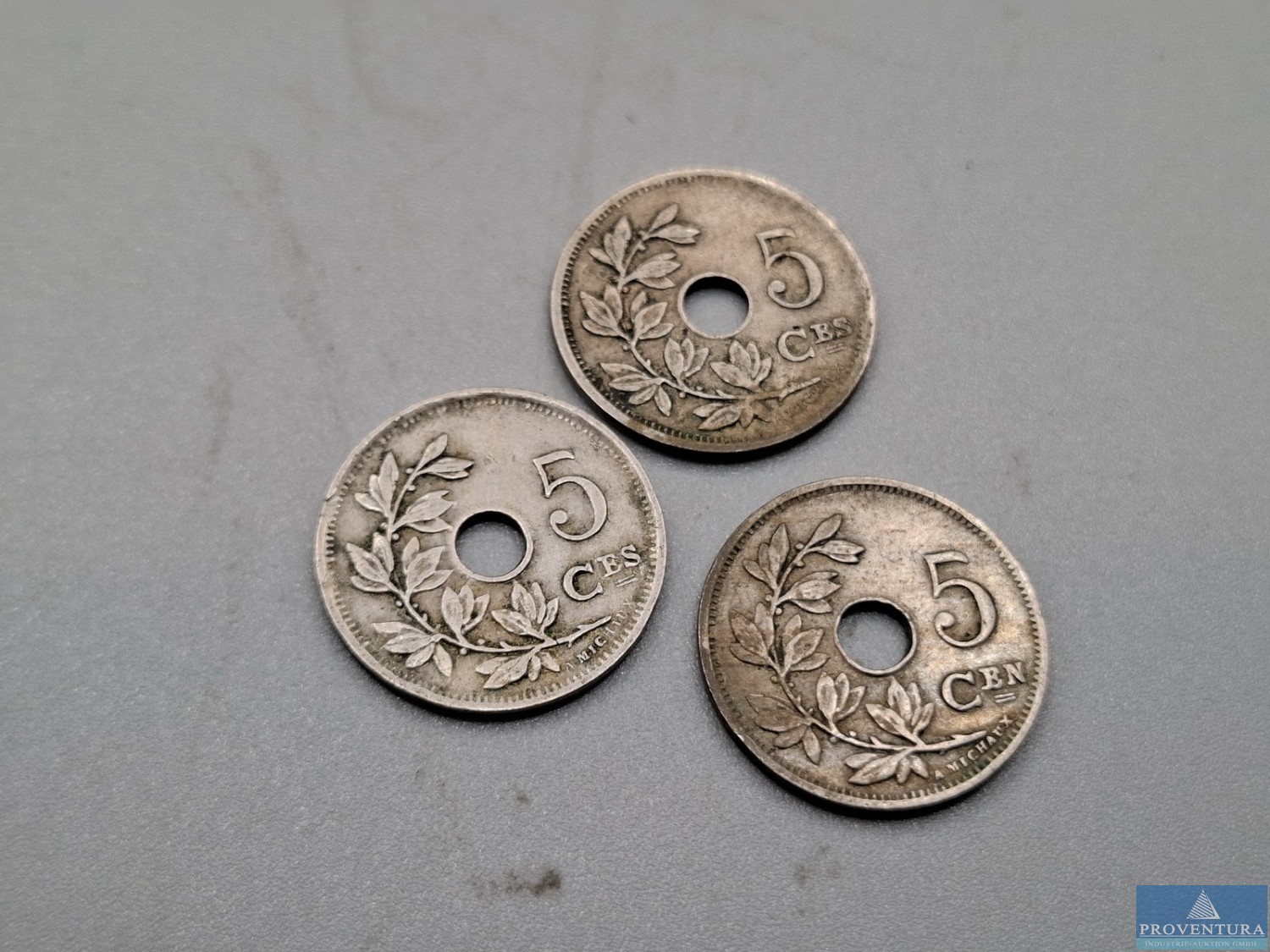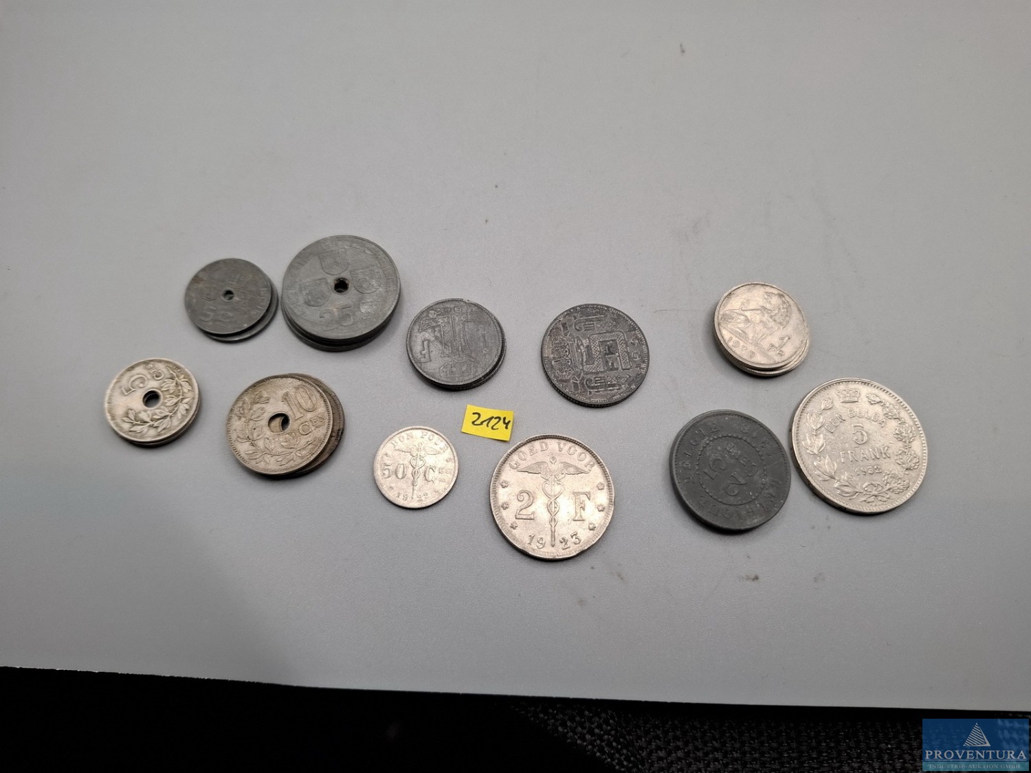 Обращение монет в Бельгии до 1943 года: 5 сантимов 3x 1925, 1941, 1943, 10 сантимов 1904, 1921, 1927, 25 сантимов 1916, 1918, 1942, 2x1943, 50 сантимов 1922, 1 франк 3x 1939, 2x 1943, 2x 1923, 5 франков 1932, всего около 23 моне
