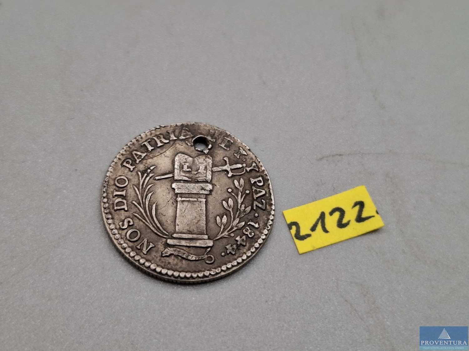 Серебряная медаль Потоси, Боливия 1844, 20 мм 3,3 гр, грубый вес, Fonrobert-9536, Burnett-26