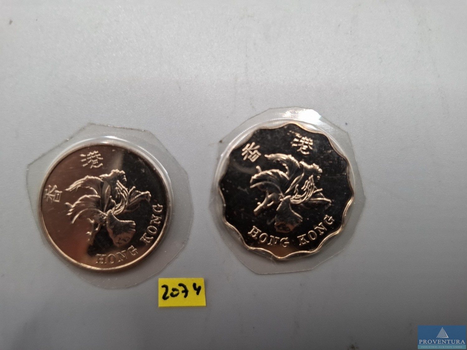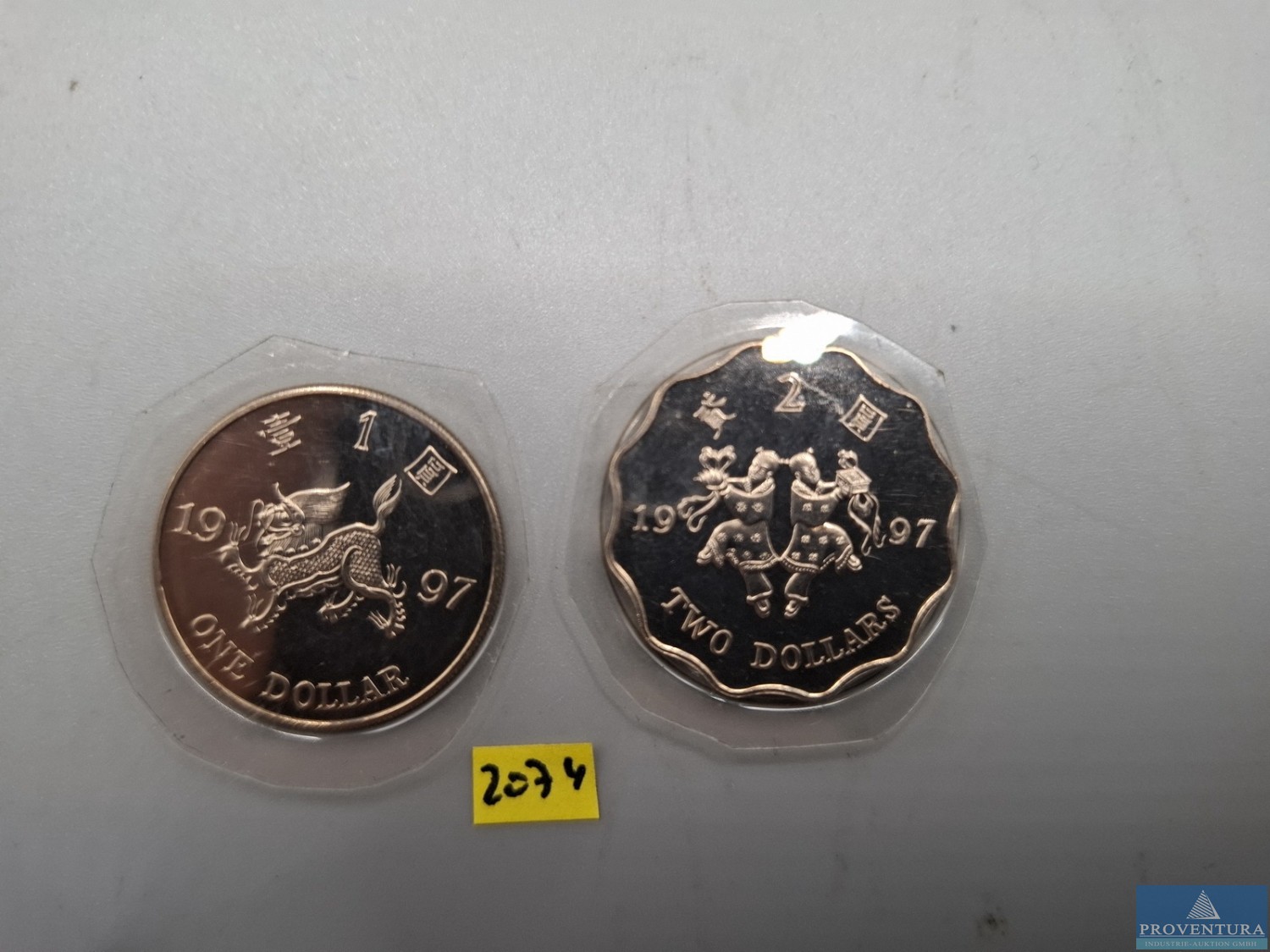 Монеты в обращении: гонконгская 1 доллар, 1997, 2 доллара, 1997, в термоусадочной упаковке, KM75/76