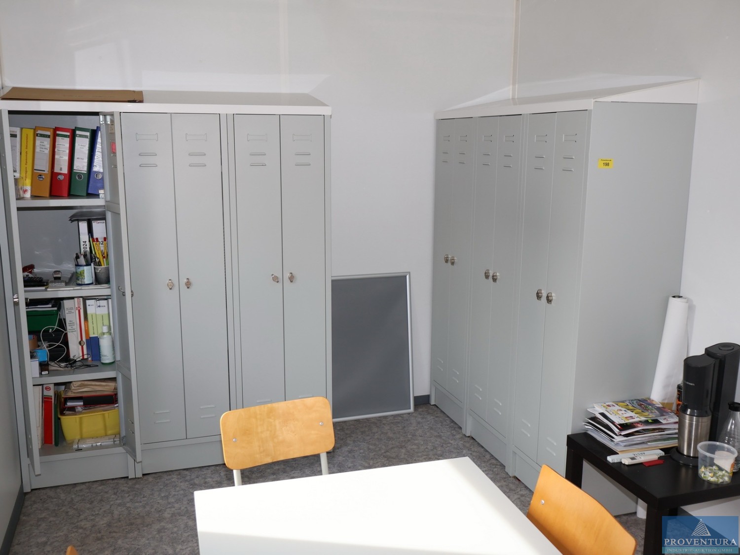Листовые металлические шкафчики BURG каждый, по 3 штуки с вытяжкой, всего 2x3 = 6 штук.