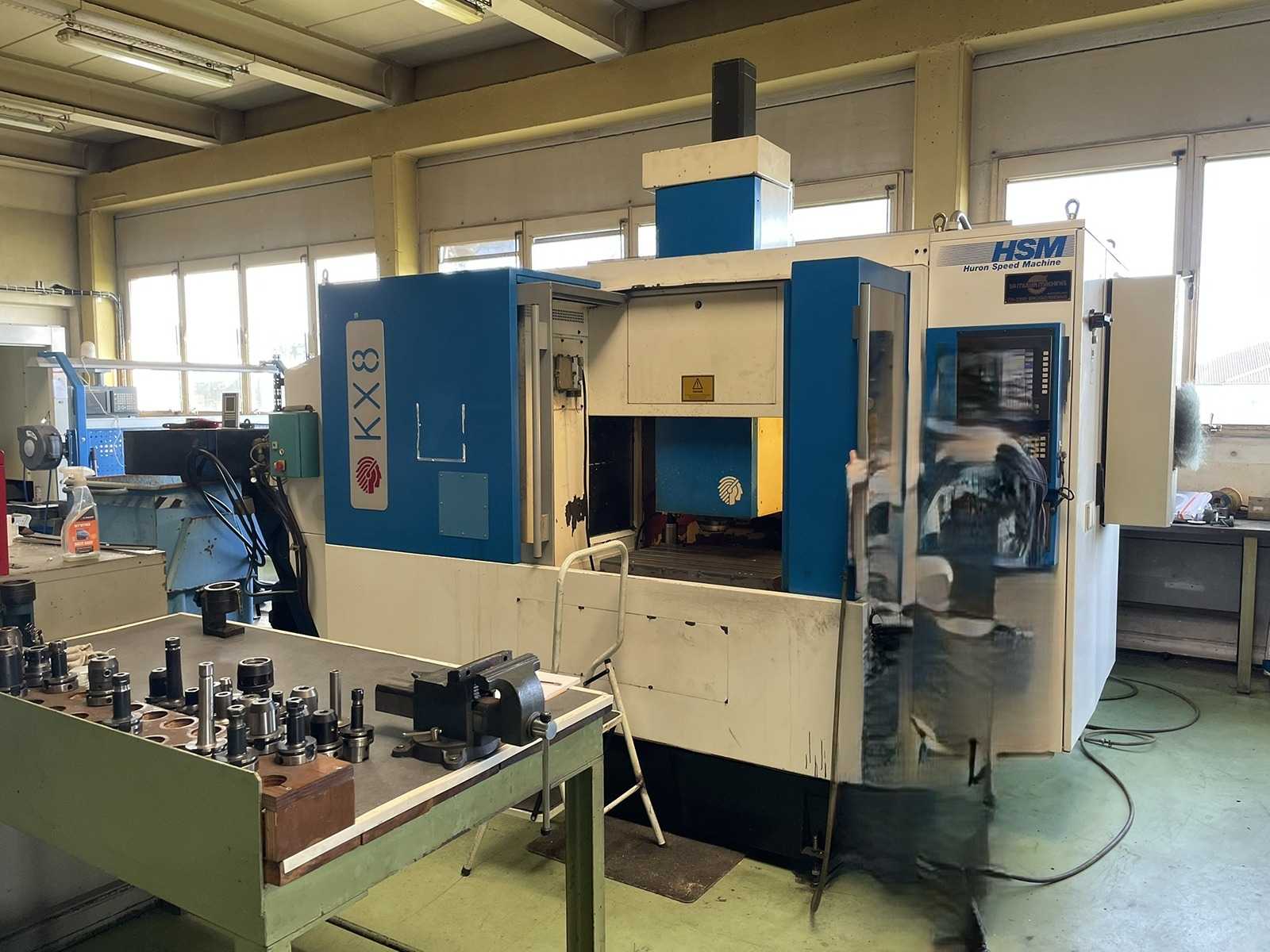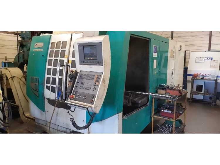 Manufacturer: HURONYear: 2001Type: 4-axis CNC vertical machining centerNumerical control: Siemens Sinumerik 840DStrokes: X 700 mm / Y 600 mm / Z 450 mmTable: 800 × 600 mm – max. load 500 kg4th axis: Integrated rotary tableSpindle: HSK63-A – SKF – 24,000 rpm – 18 kW (spindle overhauled in 2024, approx. 1,000 h)Tool magazine: 20 stationsDimensions (mm): 3000 × 2100 × 3300Weight (kg): 8000Remarks: High-speed machining center with 4th axis. Machine used, functional. Auction-ID: A1-44765-215