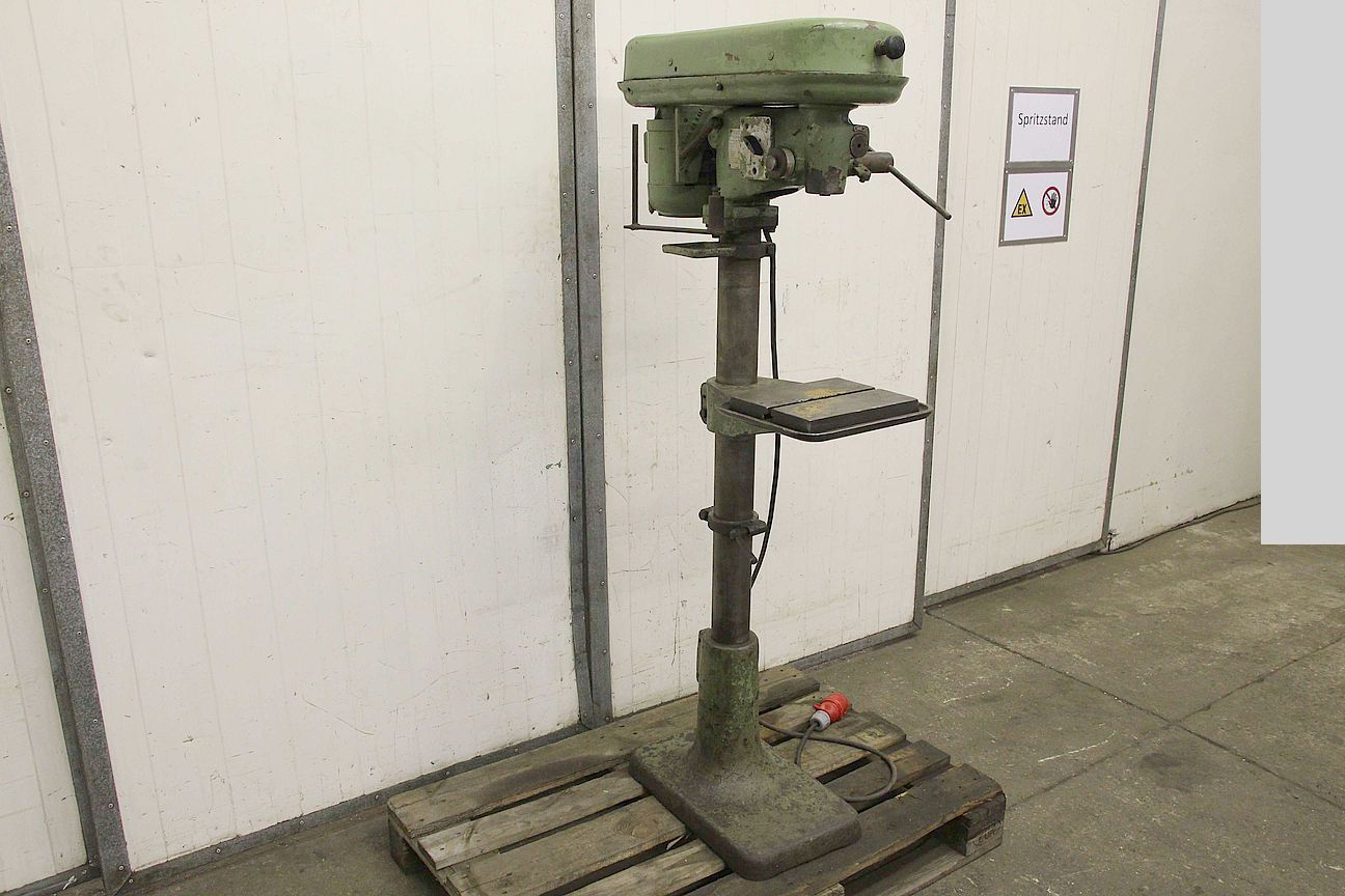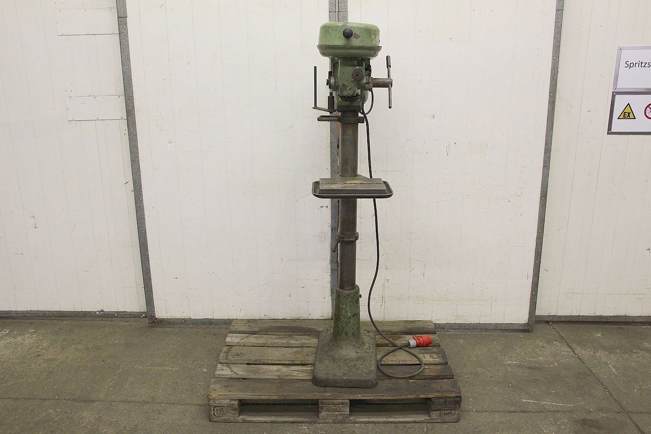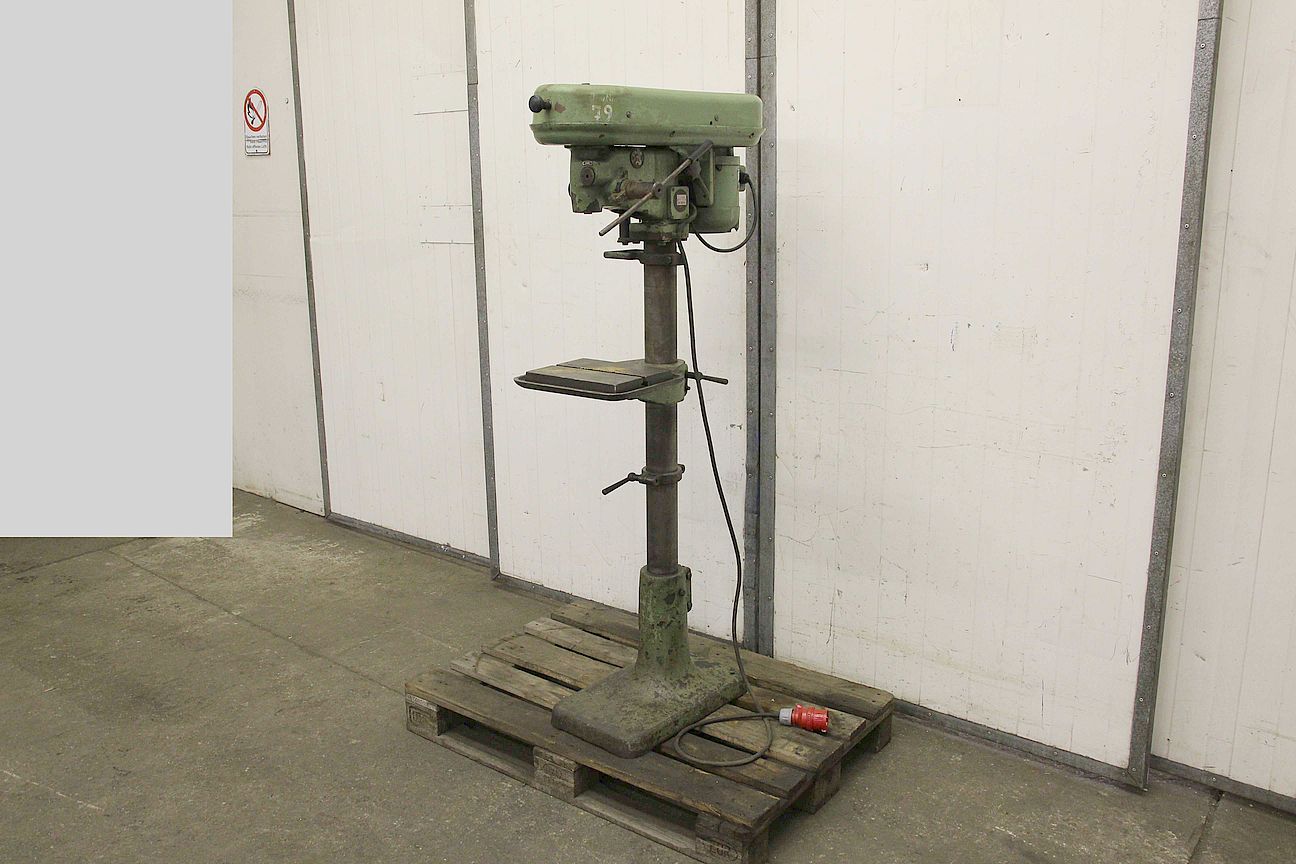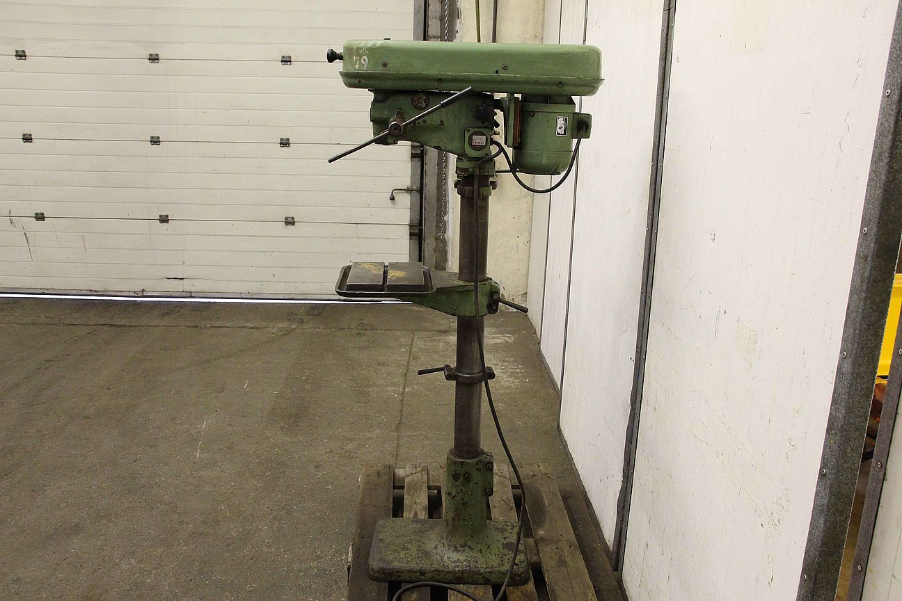 Drill press, drill press, stand drill, pillar drill -Manufacturer: WMW, column drilling machine type CM 10S/55 -Motor: 630 W -Speeds: 460 - 2190 rpm -Translation: via V-belt -Table size: 220 x 280 mm -spindle taper: MK1 -Spindle stroke: 70 mm -Projection: 200 mm -Pillar Ø: 85 mm -Dimensions: 400/800/H1670 mm -Weight 206 kg