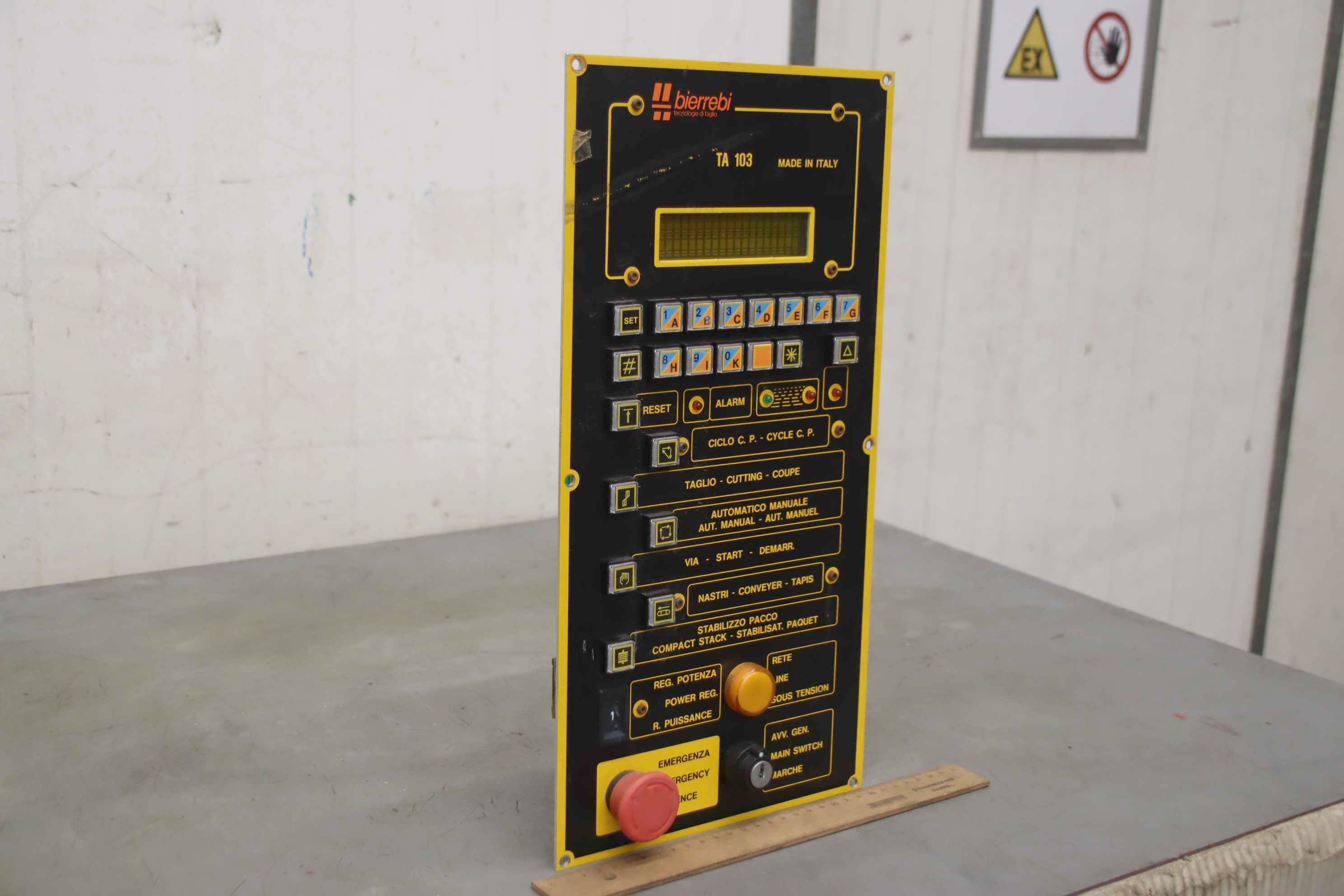 Operating unit, control panel, control panel, operating unit, keyboard, screen, control, handheld terminal, operating element -Manufacturer: Bierrebi, control unit from Bierrebi TA 103 automatic cutting machine -Dimensions: 435/220/H90 mm -Weight: 1.6 kg