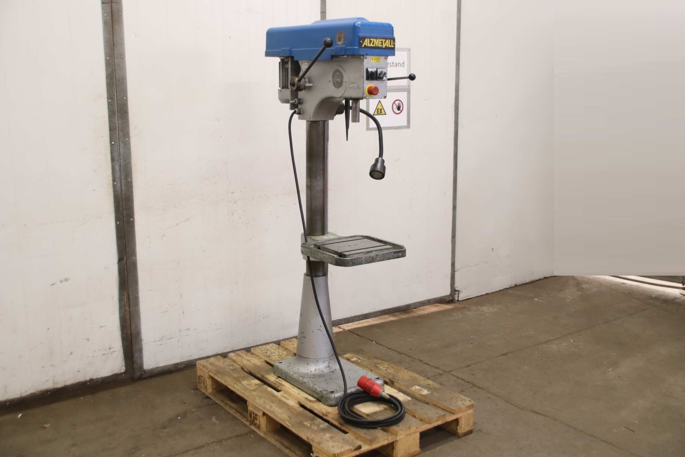 Drilling machine, bench drill, pillar drill, column drill -Manufacturer: Alzmetall, Pillar drilling machine type AX2 S -Spindle mount: MK2 -Motor: 0.37 / 0.55 kW -Speed adjustment: stepless -Speeds: 450 - 4300 rpm -Table size: 250 x 250 mm -Travel distance: 560 mm -Spindle stroke: 90 mm -Protrusion: 250 mm -Column Ø: 90 mm -Dimensions: 720/540/H1650 mm -Weight: 145 kg