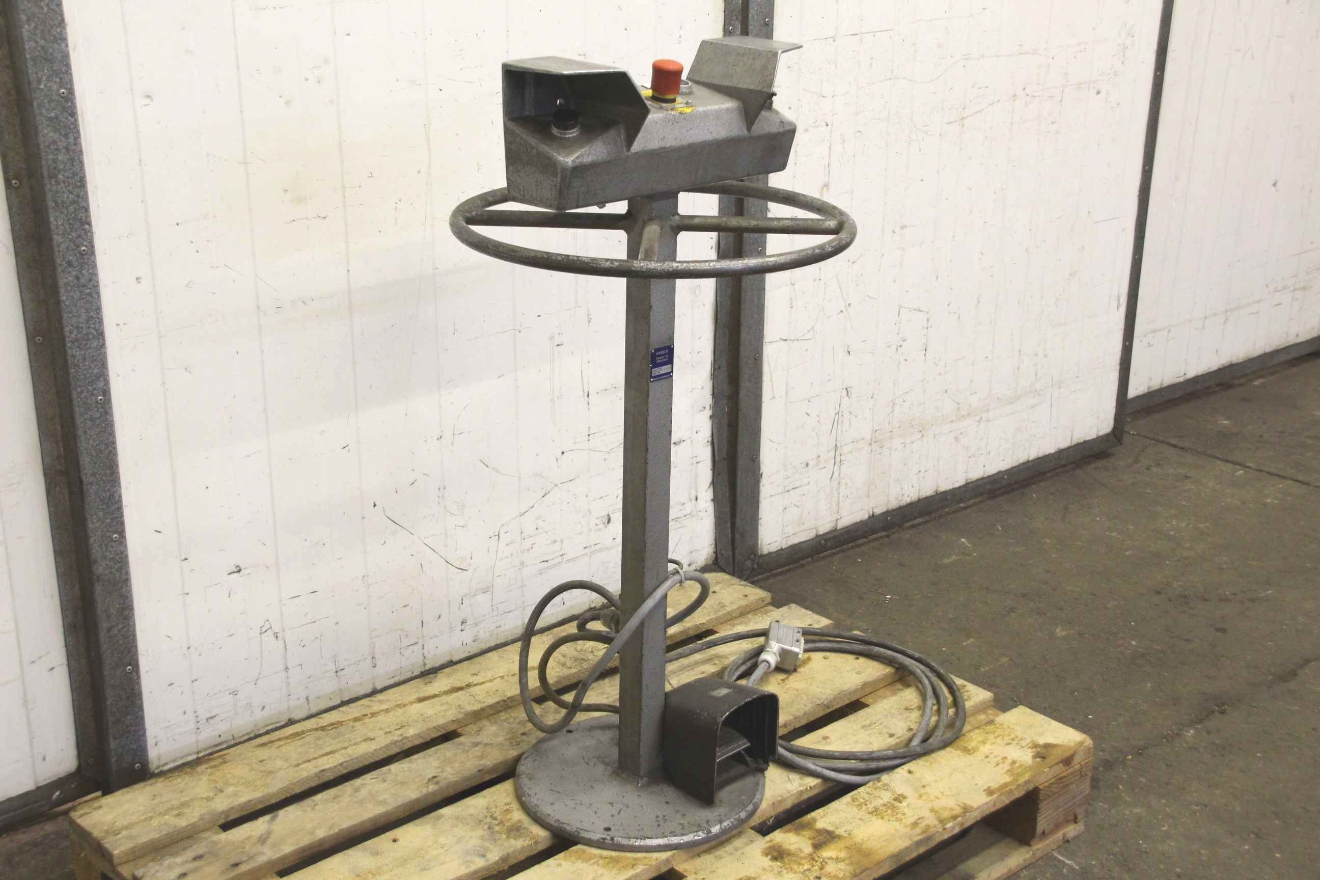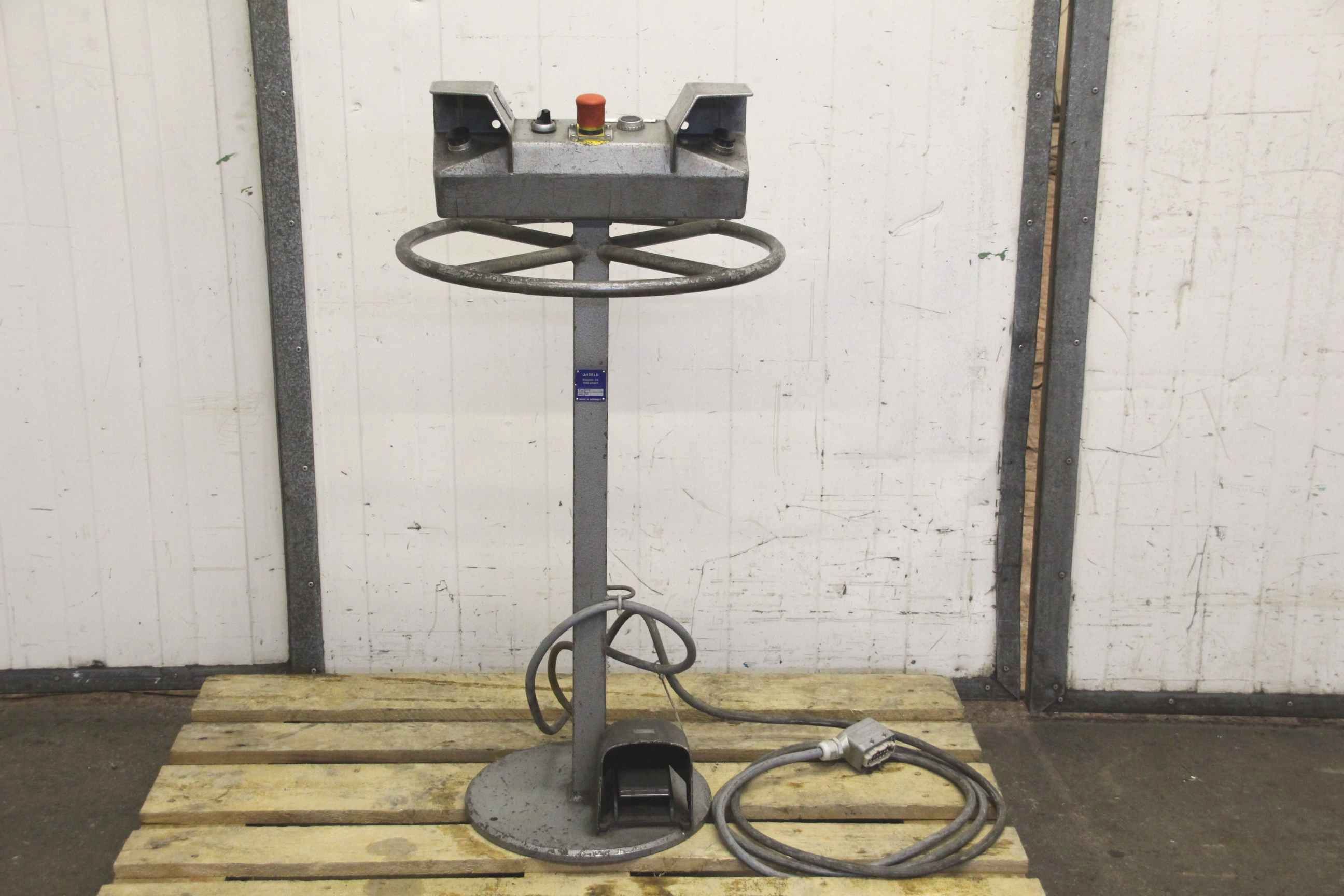 Control unit, control panel, control panel, control unit, keyboard, screen, control, two-hand control panel-Manufacturer: Unseld, two-hand control panel from Dorstener APE80-3050 press brake-Type: SEP03.0.L1/stand STP 01.4.1-Accessories: including foot switch-Dimensions: Ø 500 x 1000 mm-Weight: 23 kg