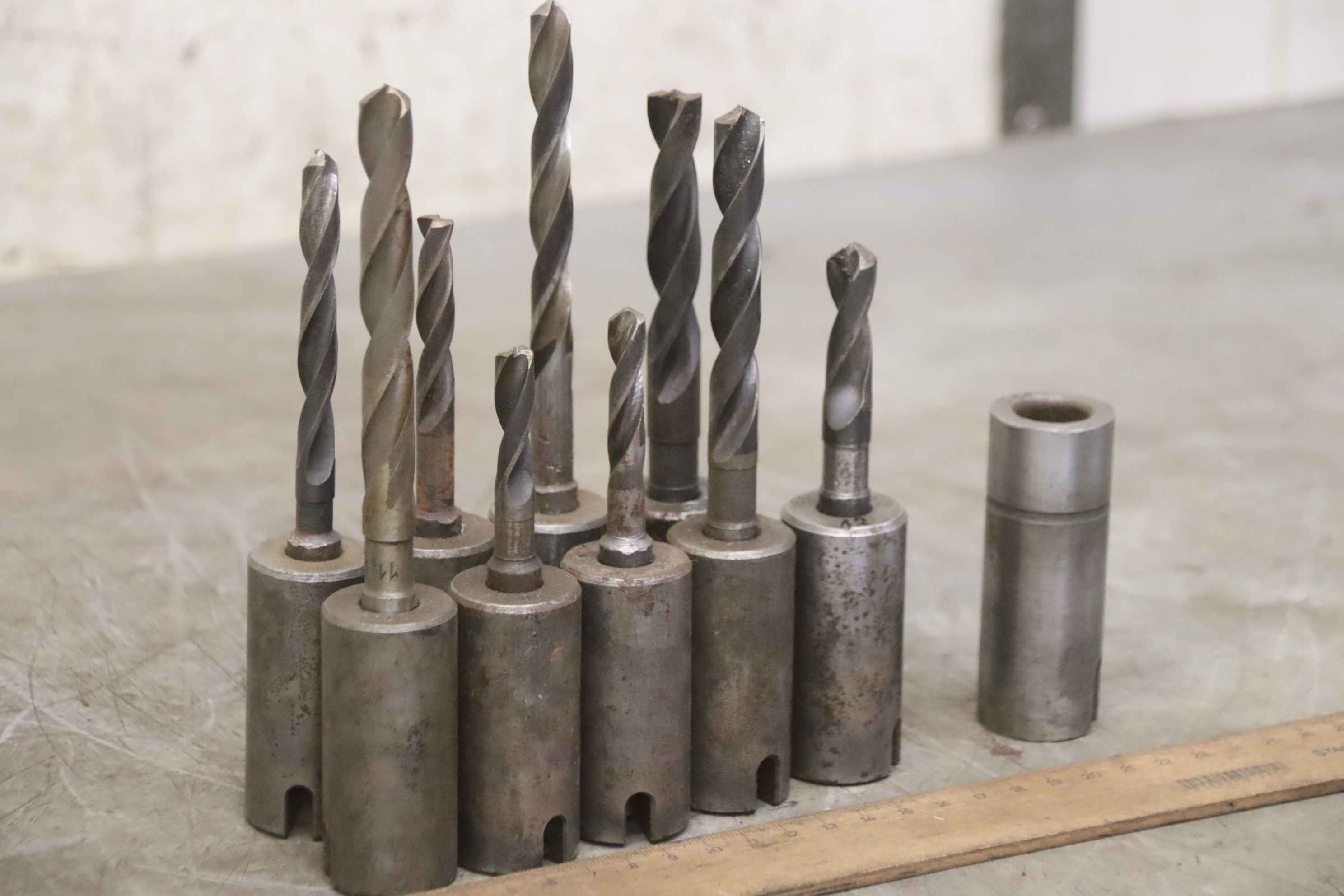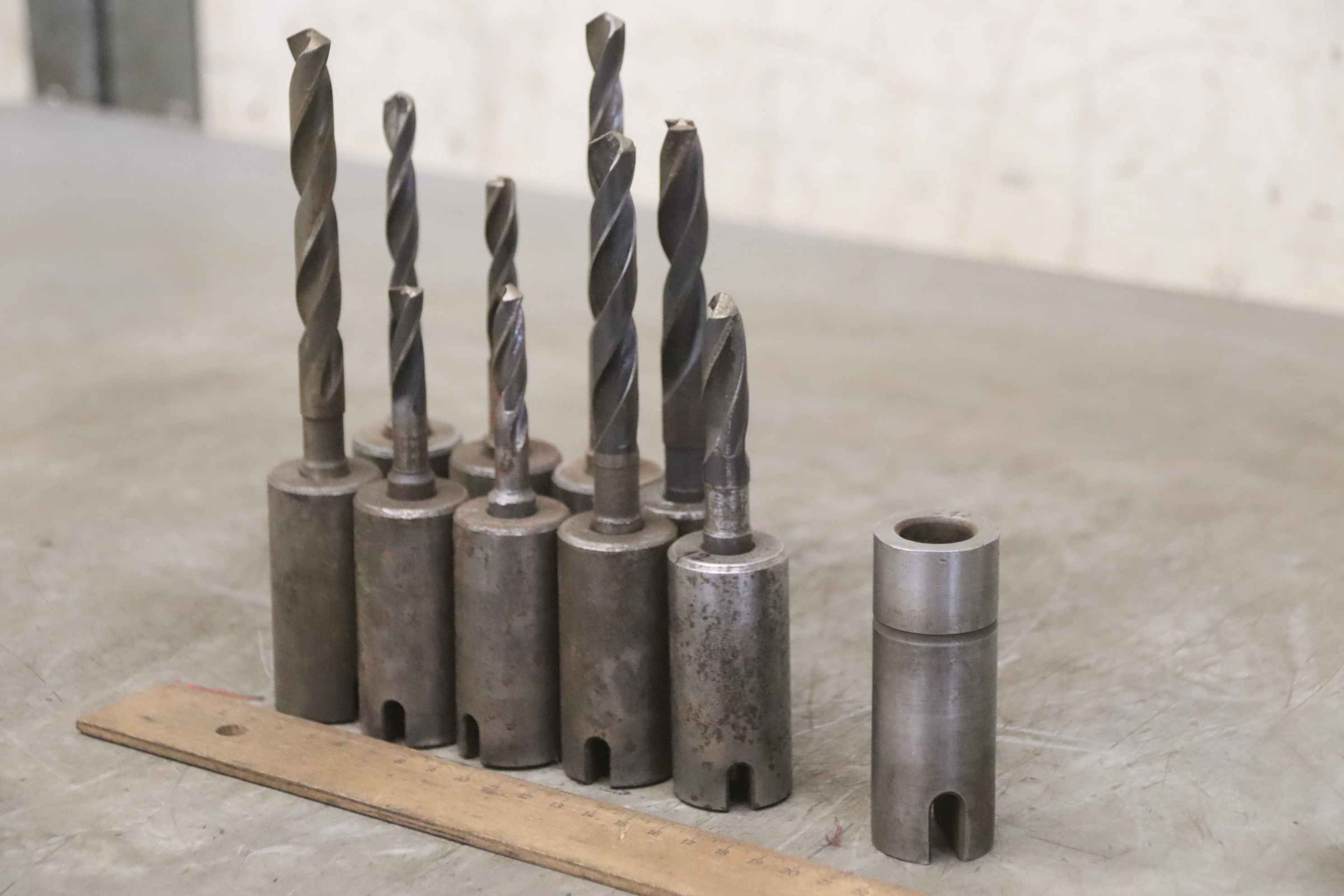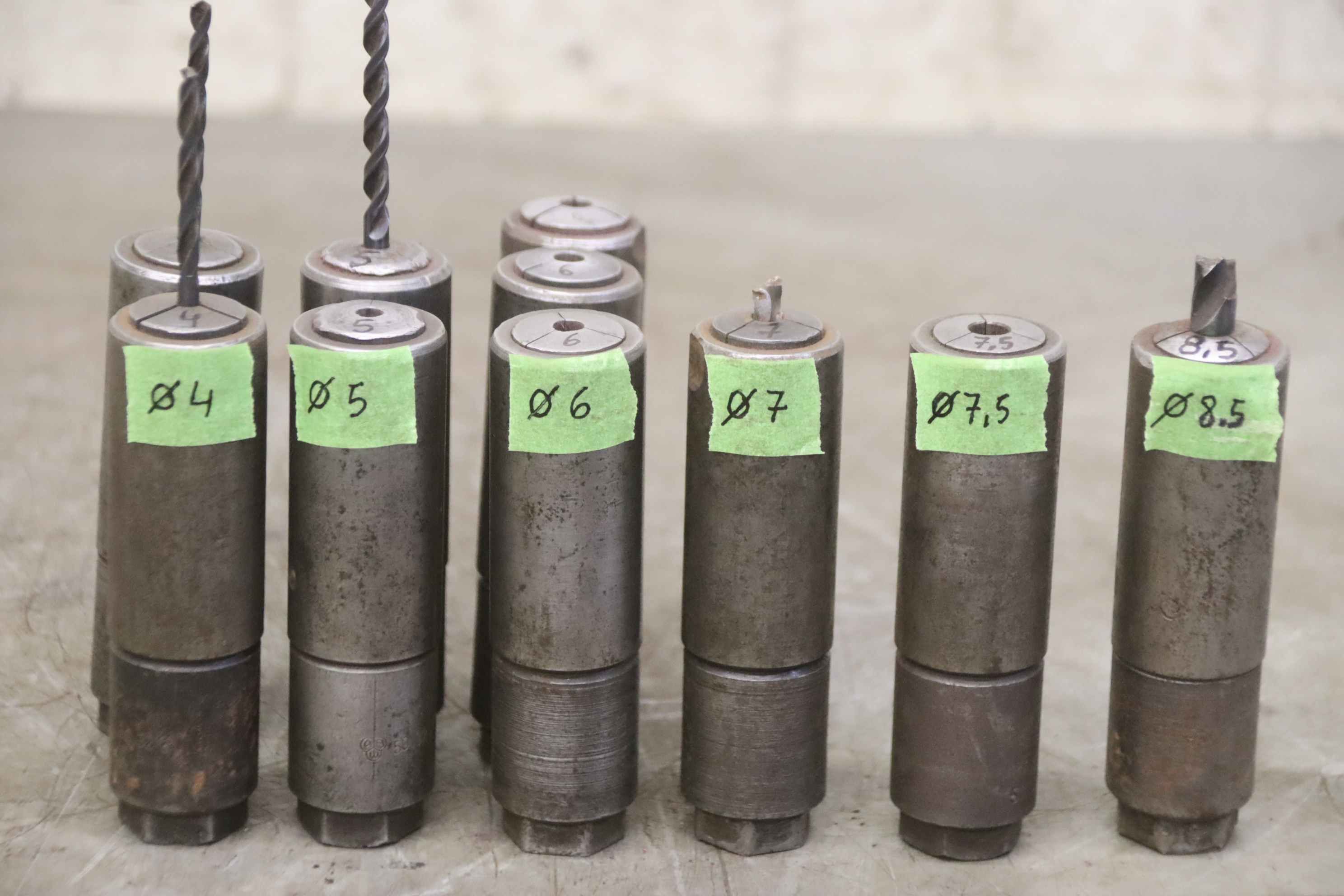 Quick-change chuck, quick-change mount, quick-change head, quick-action drill mount, quick-change insert-Quick change sleeves: 10 pieces-Intake: Inside Ø 4 to 8.5 mm, see photos-Version/Size: Ø 30 x 105 mm-Price/delivery: complete-Transport dimension.: 260/170/H50 mm-Weight: 5 kg