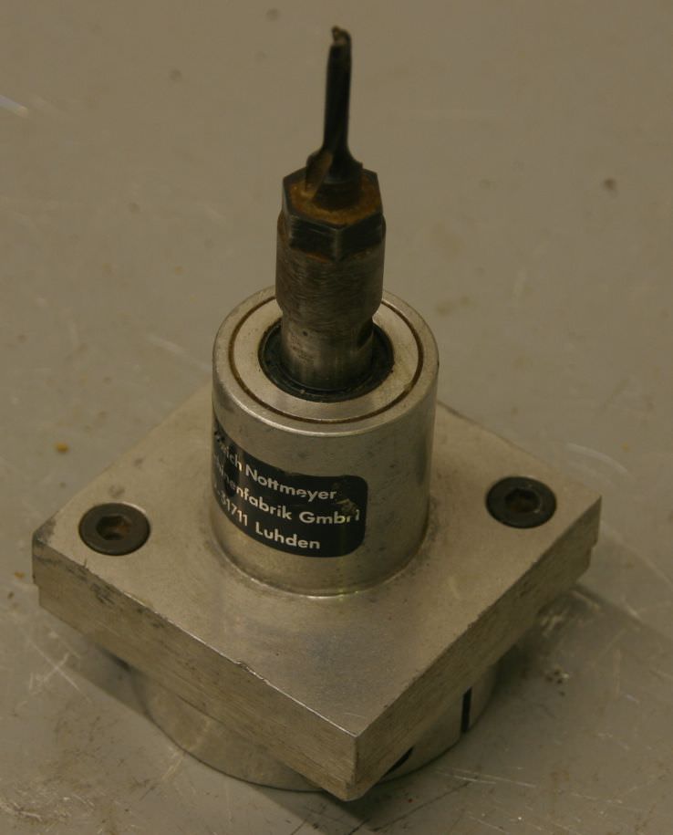 Multi-spindle head, drill beam, multi-spindle drill head, articulated multi-spindle head, row drilling machine, dowel drill head, dowel drilling machine, drilling gearbox -Quantity: max. 1x drill bit -Recording: M8 -Dimensions: 80/80/H150 mm -Weight: 0.8 kg